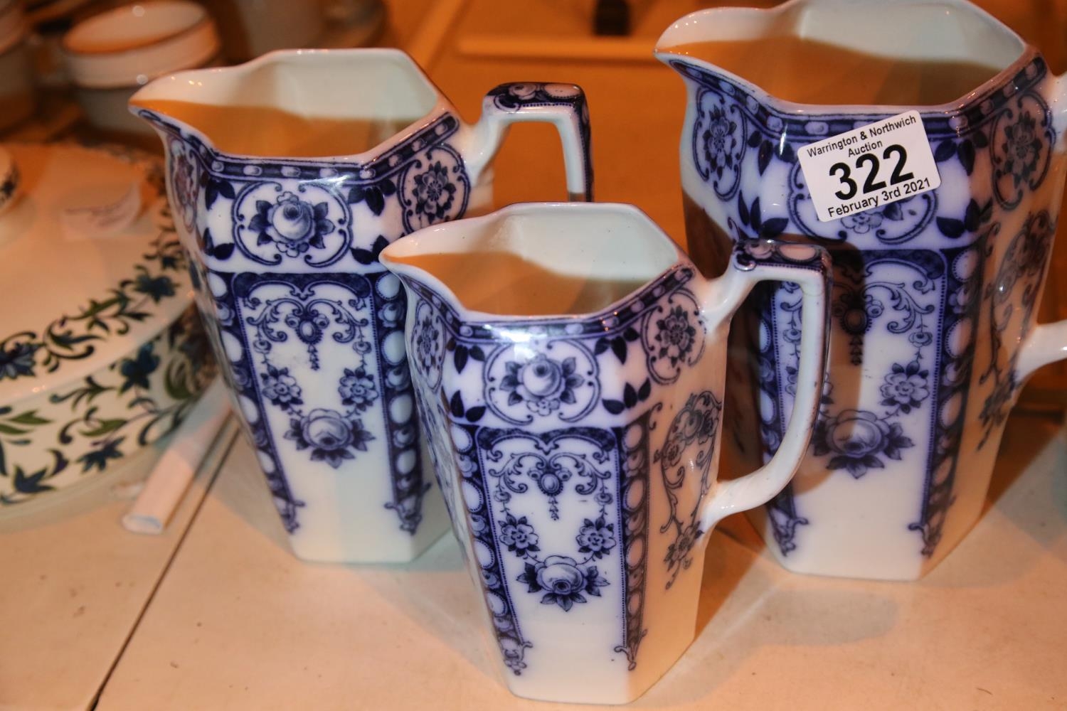 Set of three Burslem graduated jugs. Not available for in-house P&P, contact Paul O'Hea at Mailboxes on 01925 659133