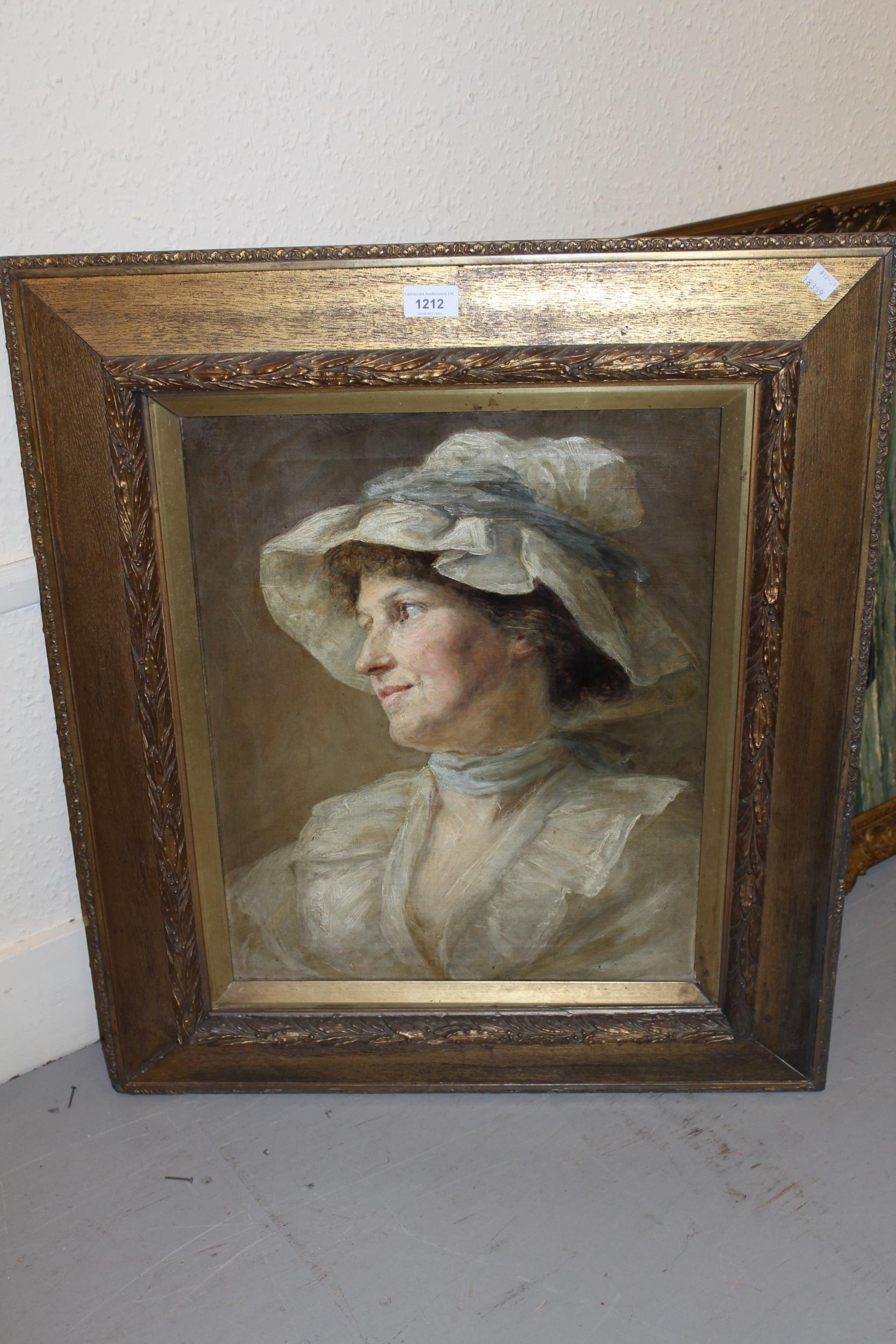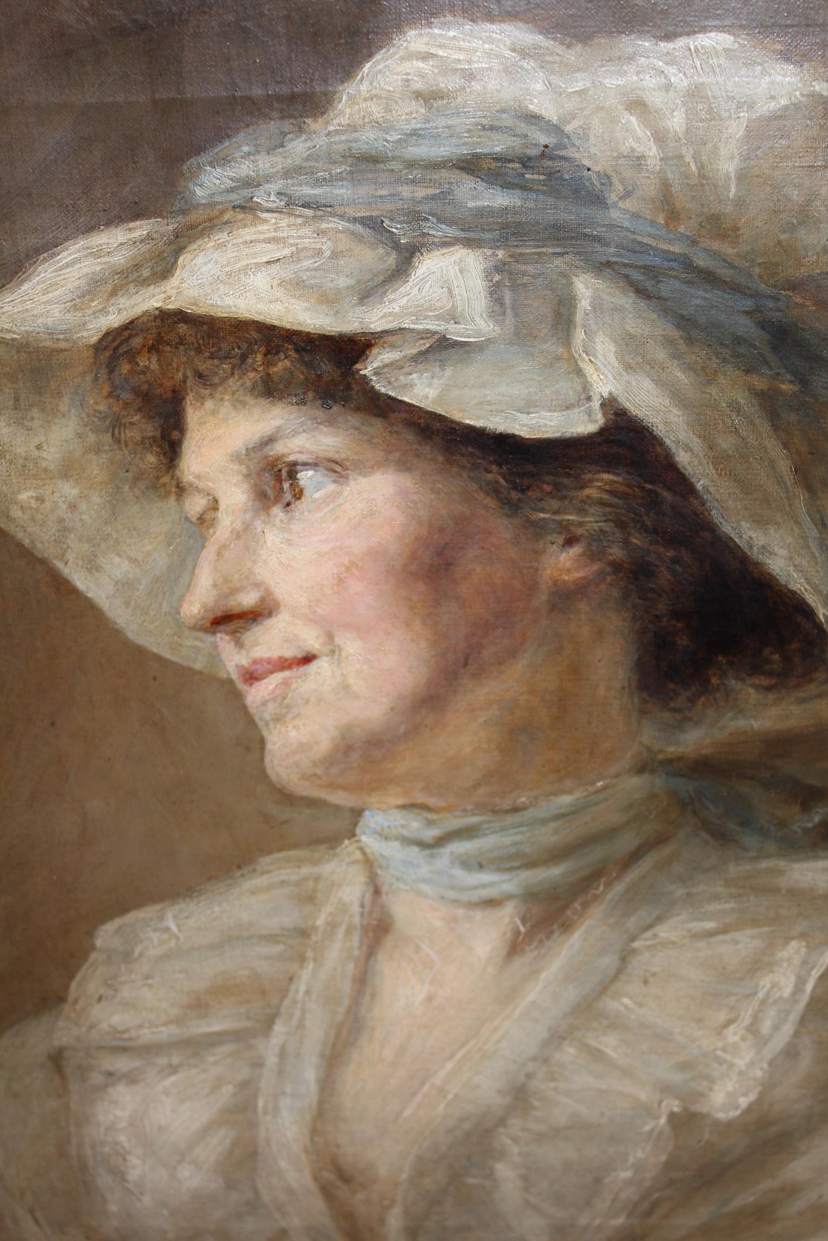 Attributed to Sir James Jebusa Shannon, oil on canvas, portrait of a lady wearing a white bonnet and dress, indistinctly signed and dated, 20ins x 16ins, gilt framed