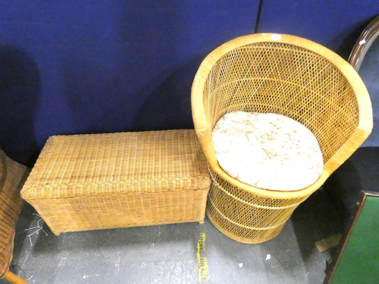 Wicker bedding box and wicker tub chair. (2)