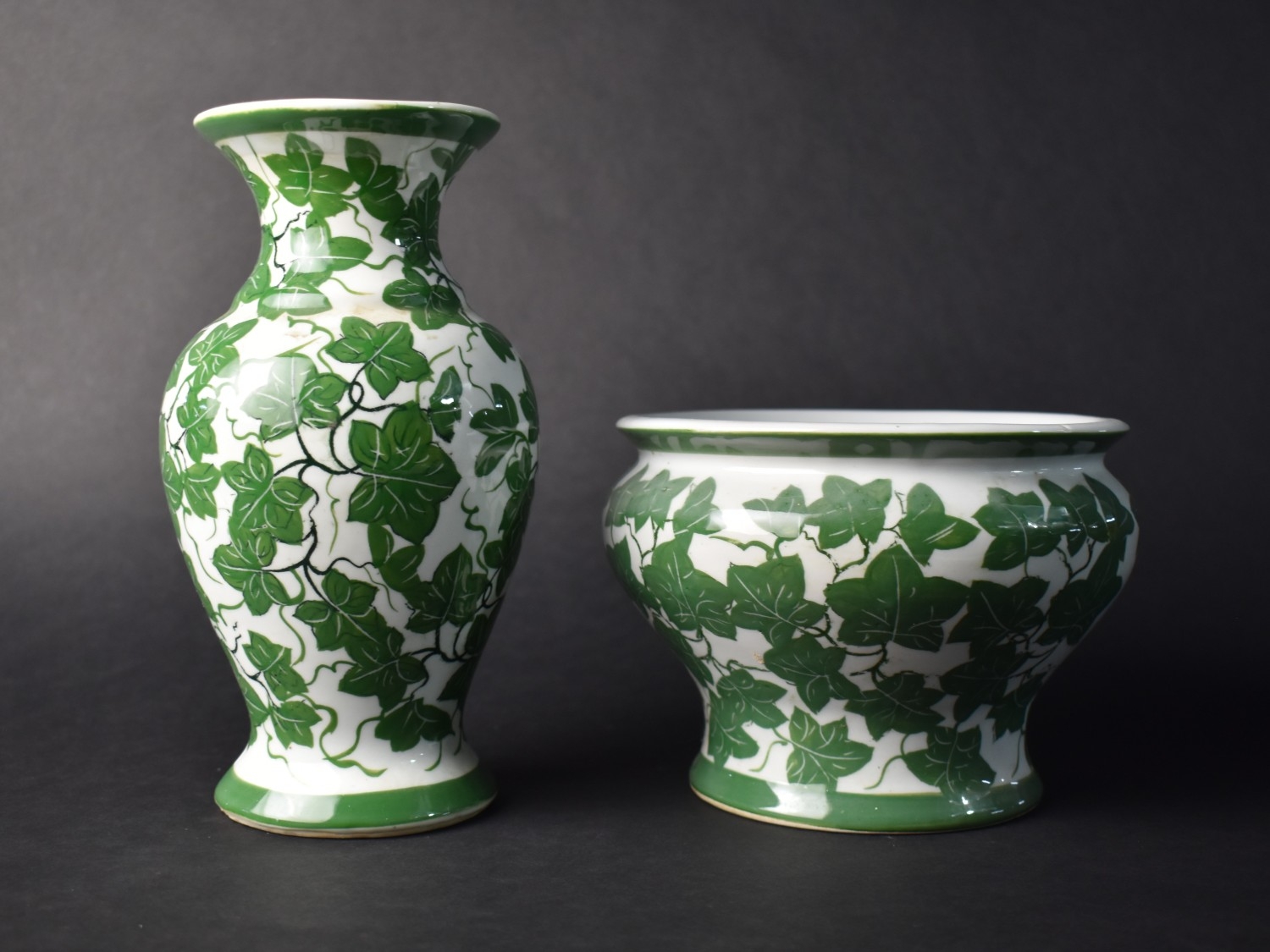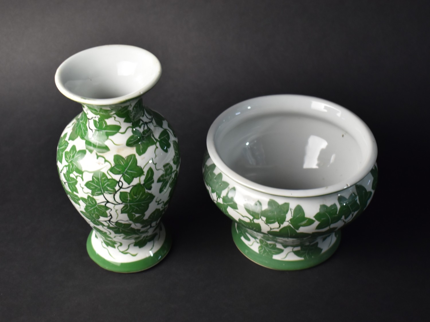 A Porcelain Ivy Pattern Vase, 21.5cm High Together with Matching Jardinière, 12cm high