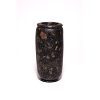 A Luristan bronze figure modelled as a stylised stag standing in profile, the elongated body supported on slender legs with a slightly raised foreleg. The head is rendered with a simplified snout and prominent ears, surmounted by an elaborate set of branching antlers forming an openwork silhouette. The piece is presented on a modern black rectangular display stand.