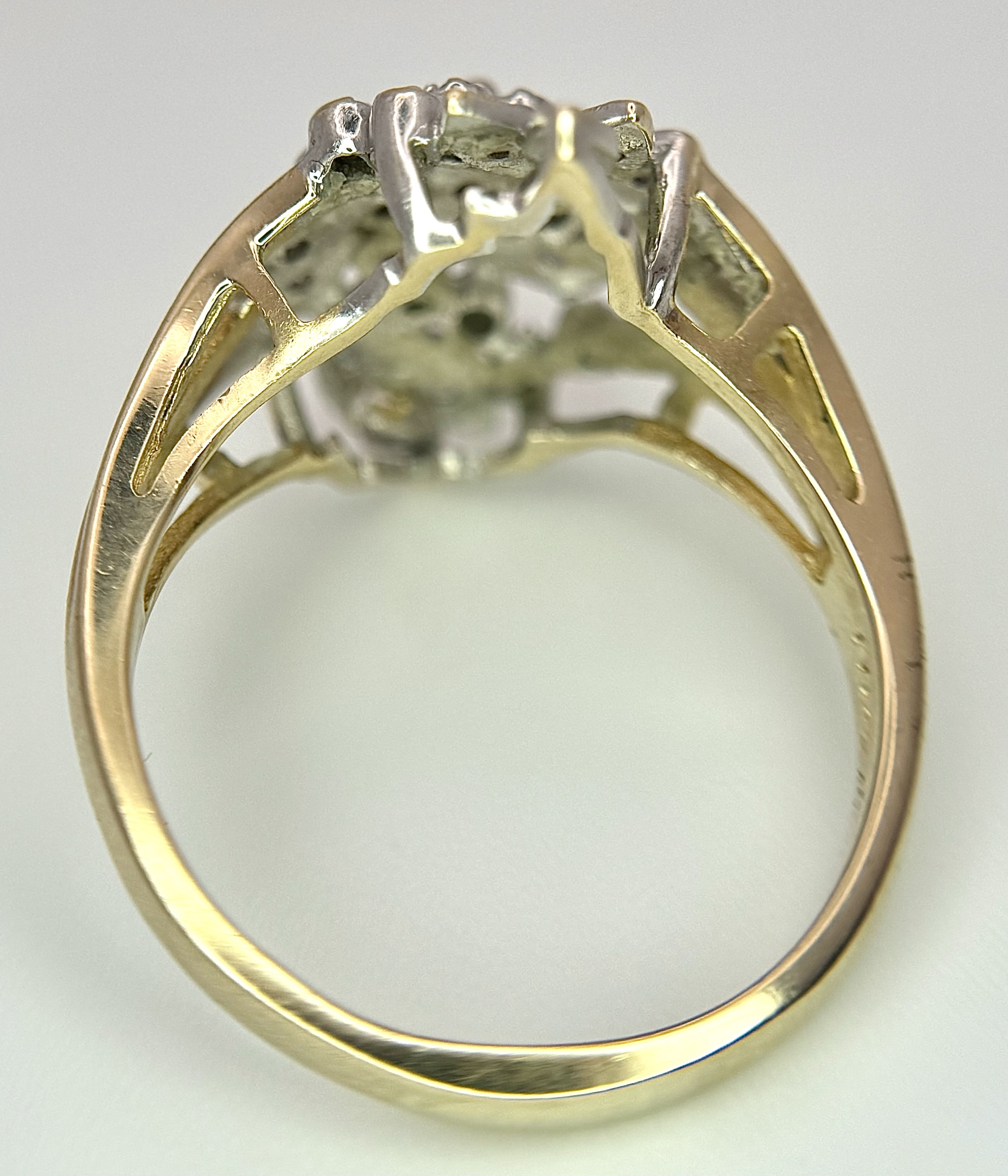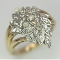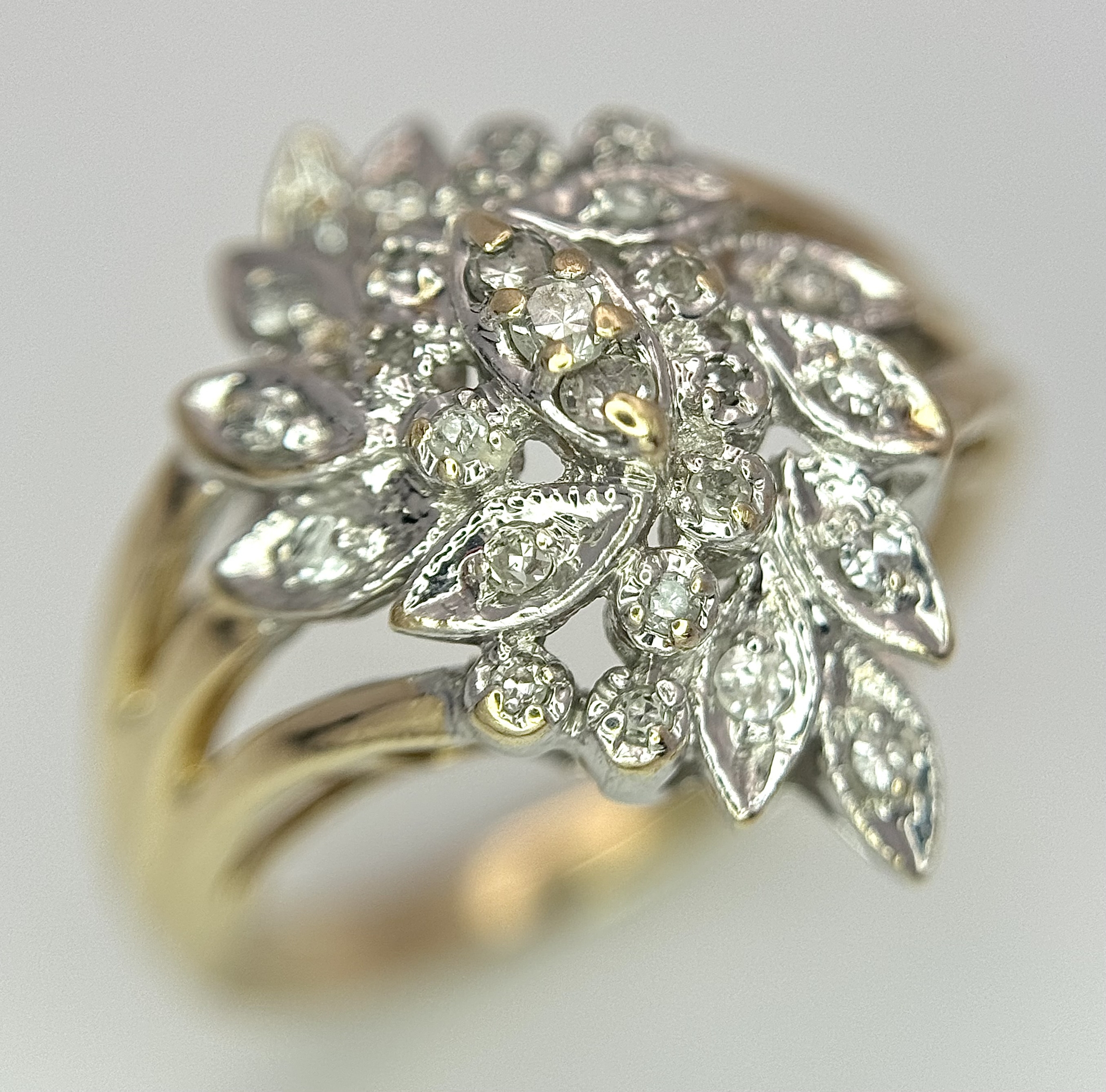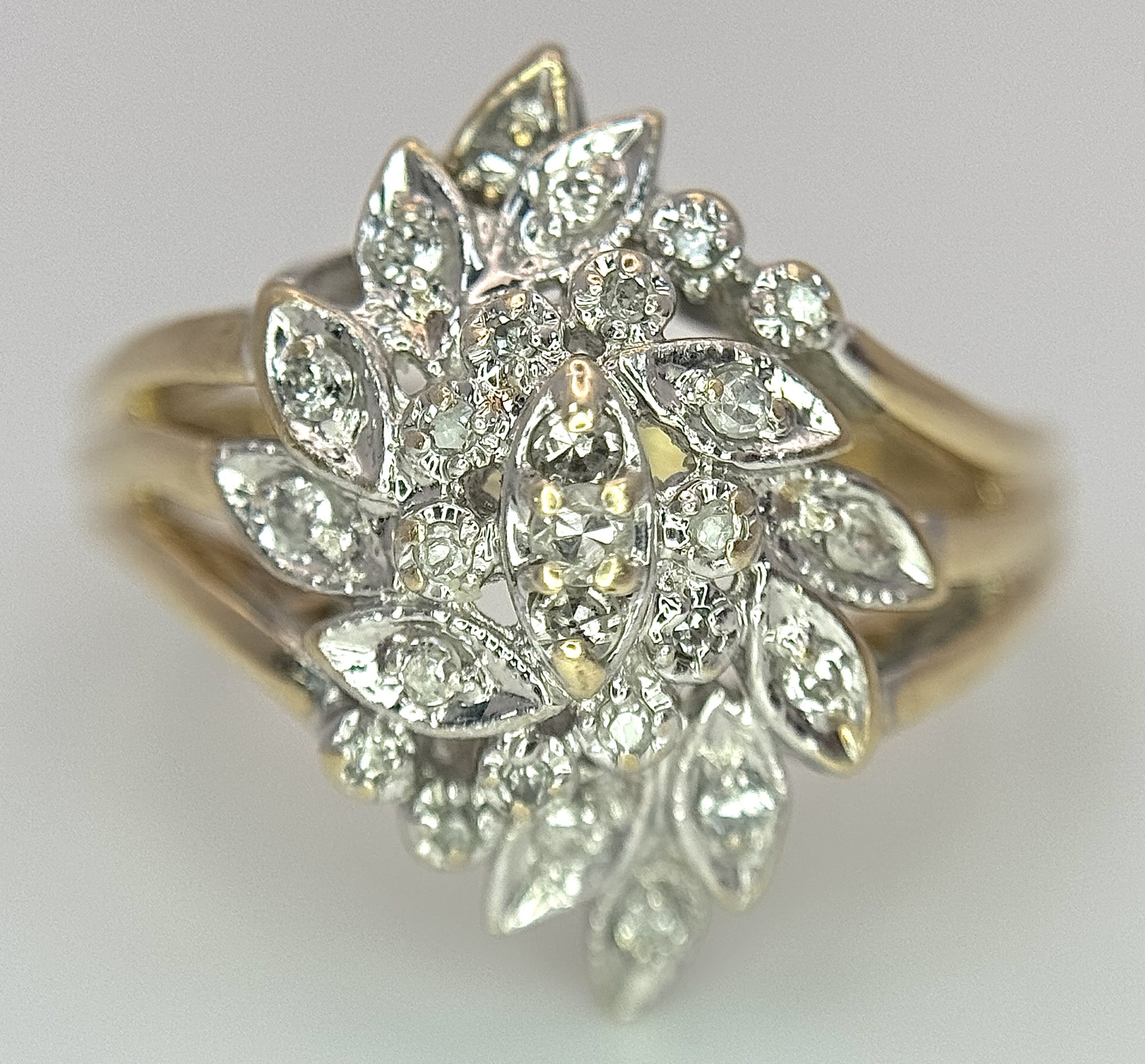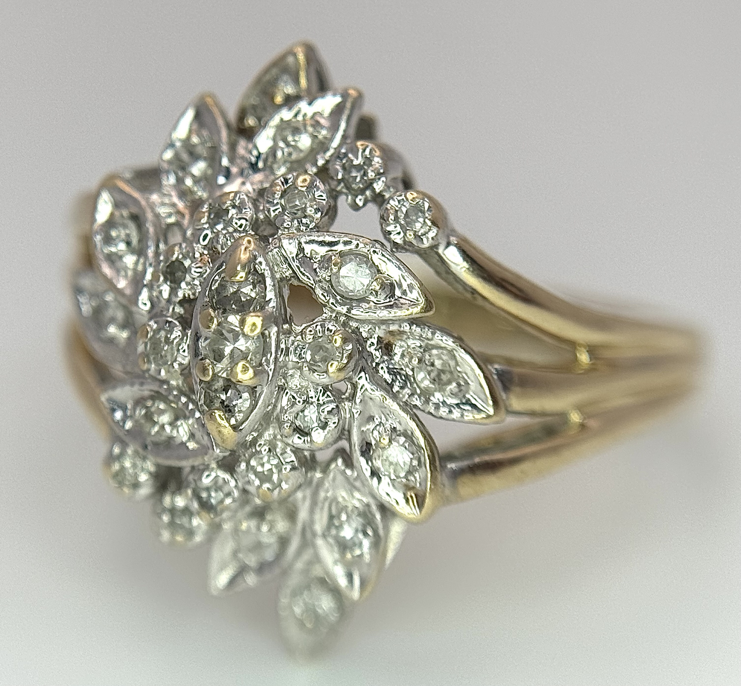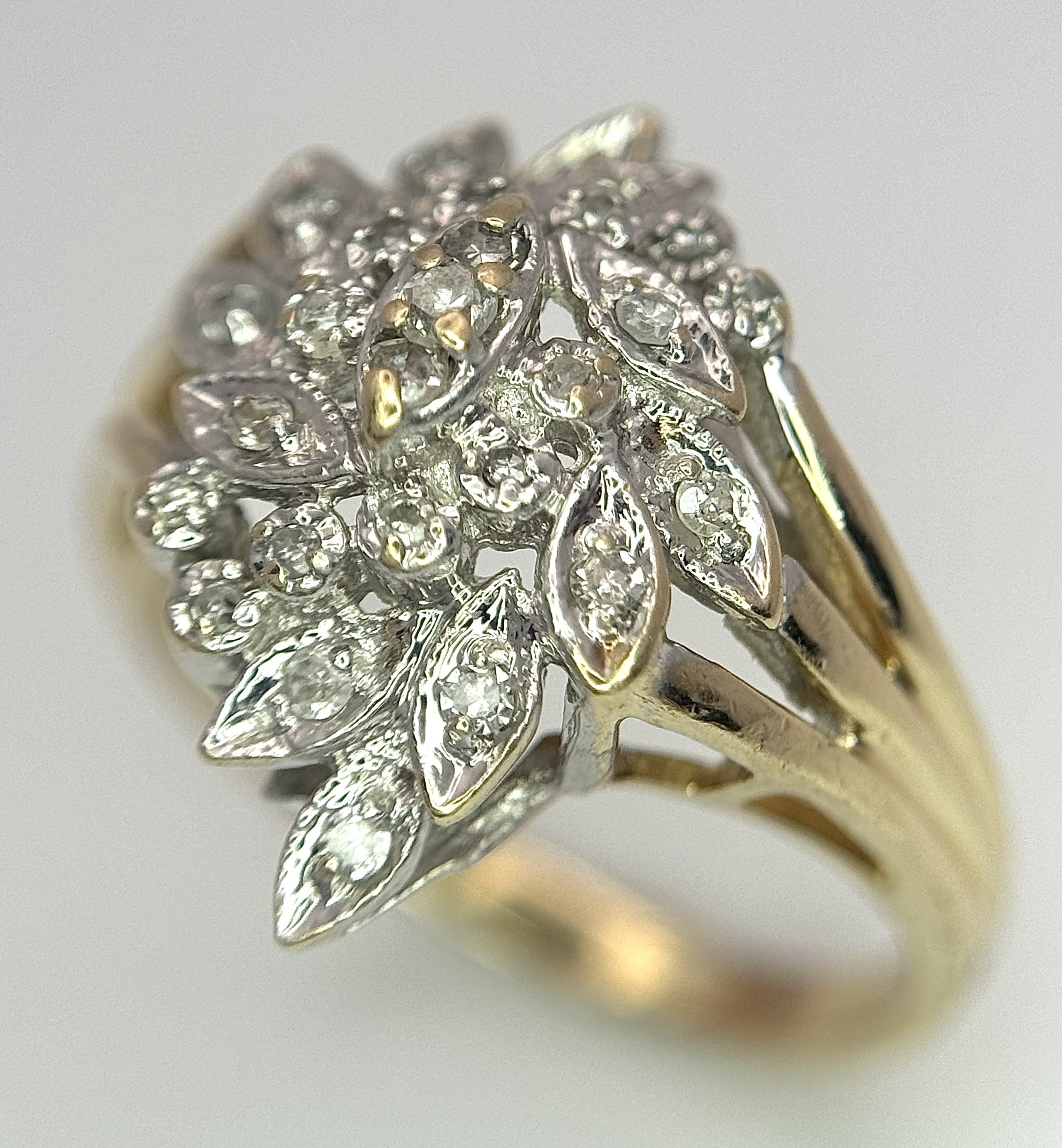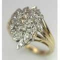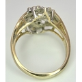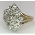 A 10K YELLOW GOLD DIAMOND SET FLORAL CLUSTER RING. 4.3G TOTAL WEIGHT, SIZE P. Ref: SC 2022