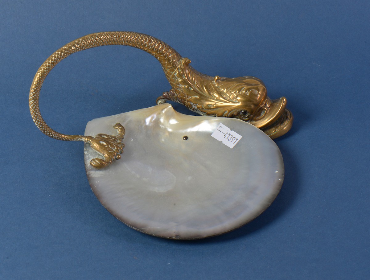 A Dutch design Fish Vide Poche with a Mother of Pearl Shell. Measuring: 18cms across x 8cms High.