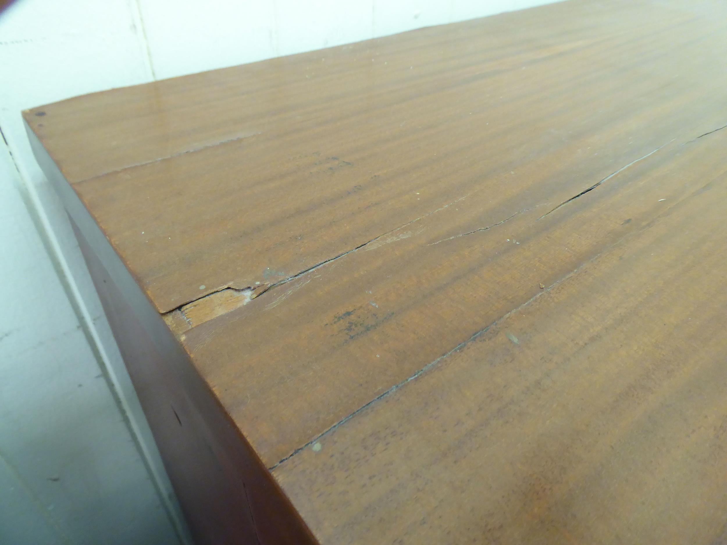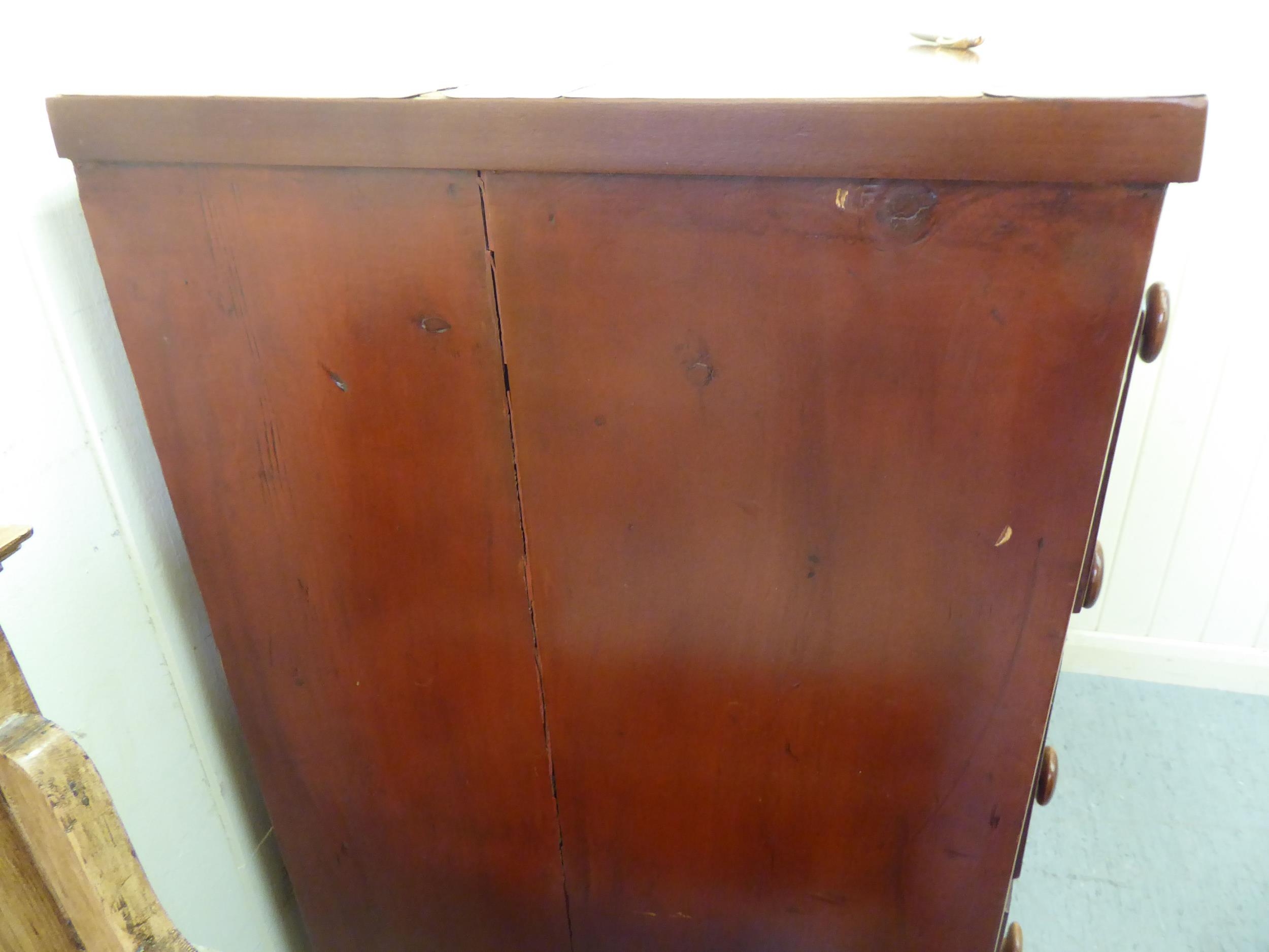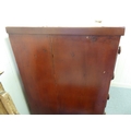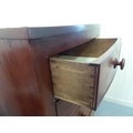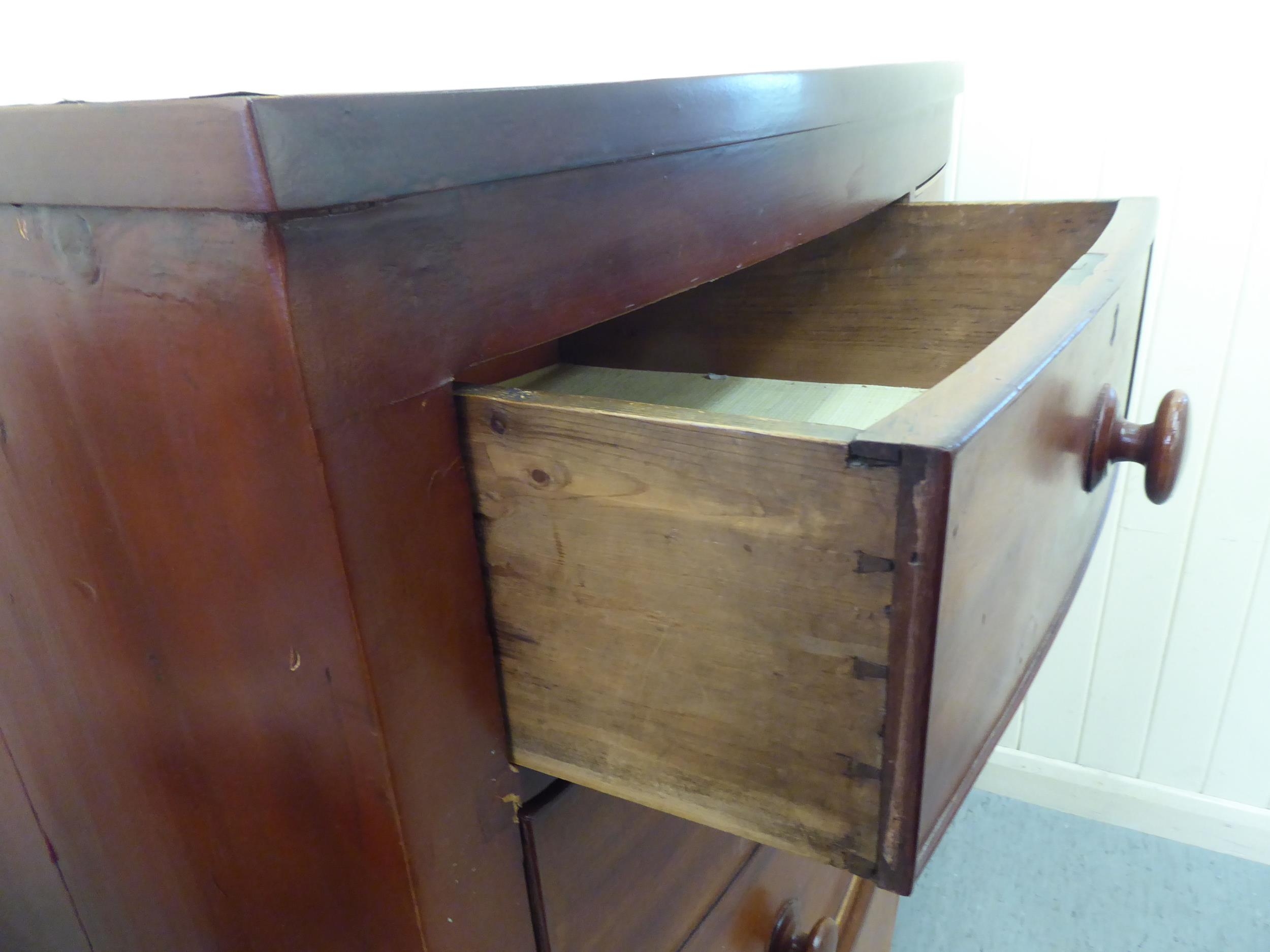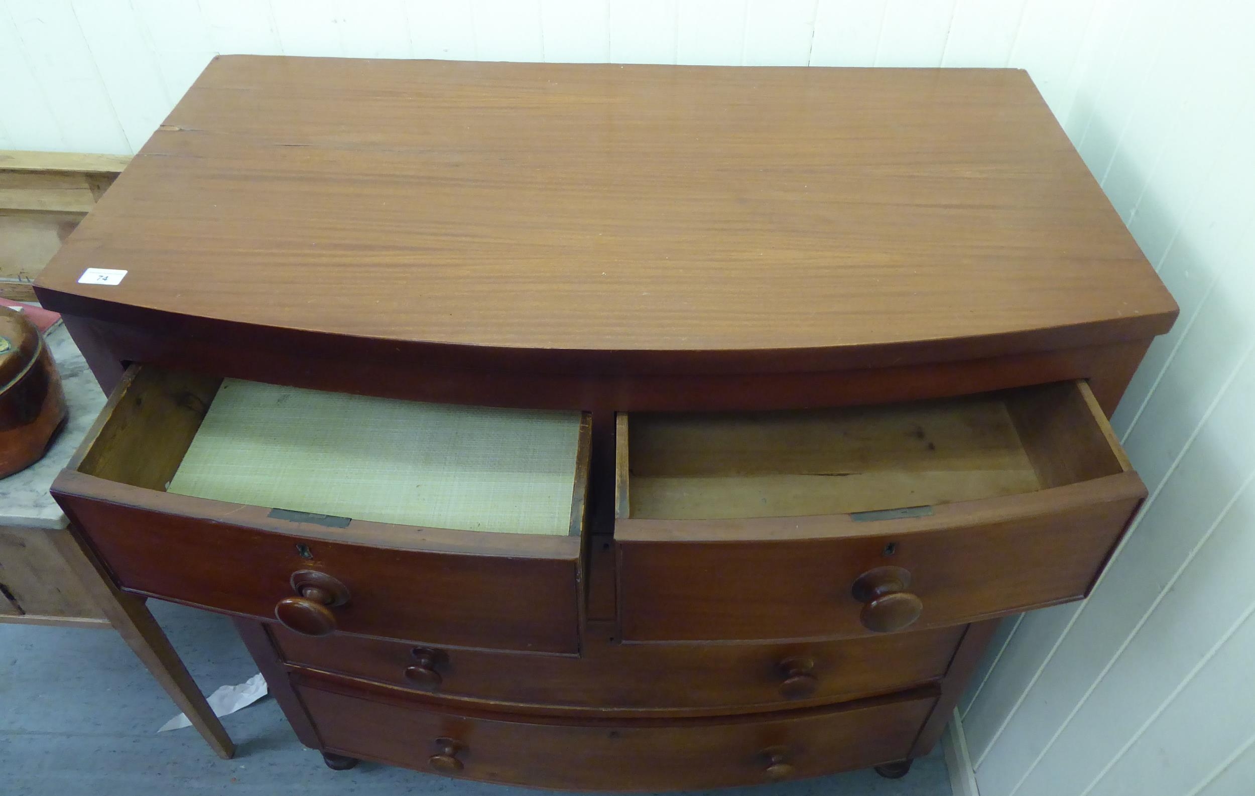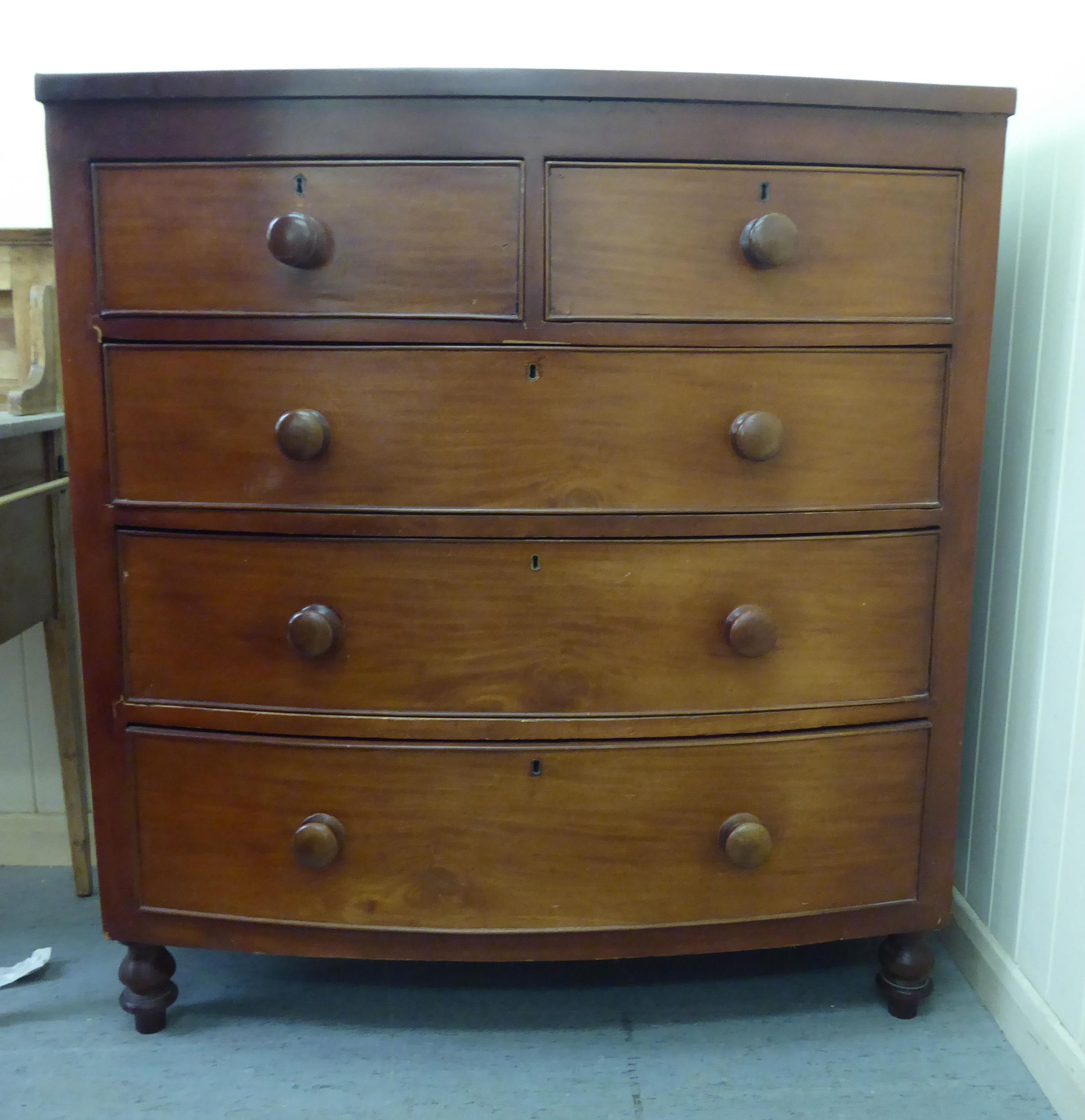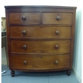 A late Victorian mahogany bow front dressing chest with two short/three long drawers and bun handles, raised on turned feet 46"h 42"w