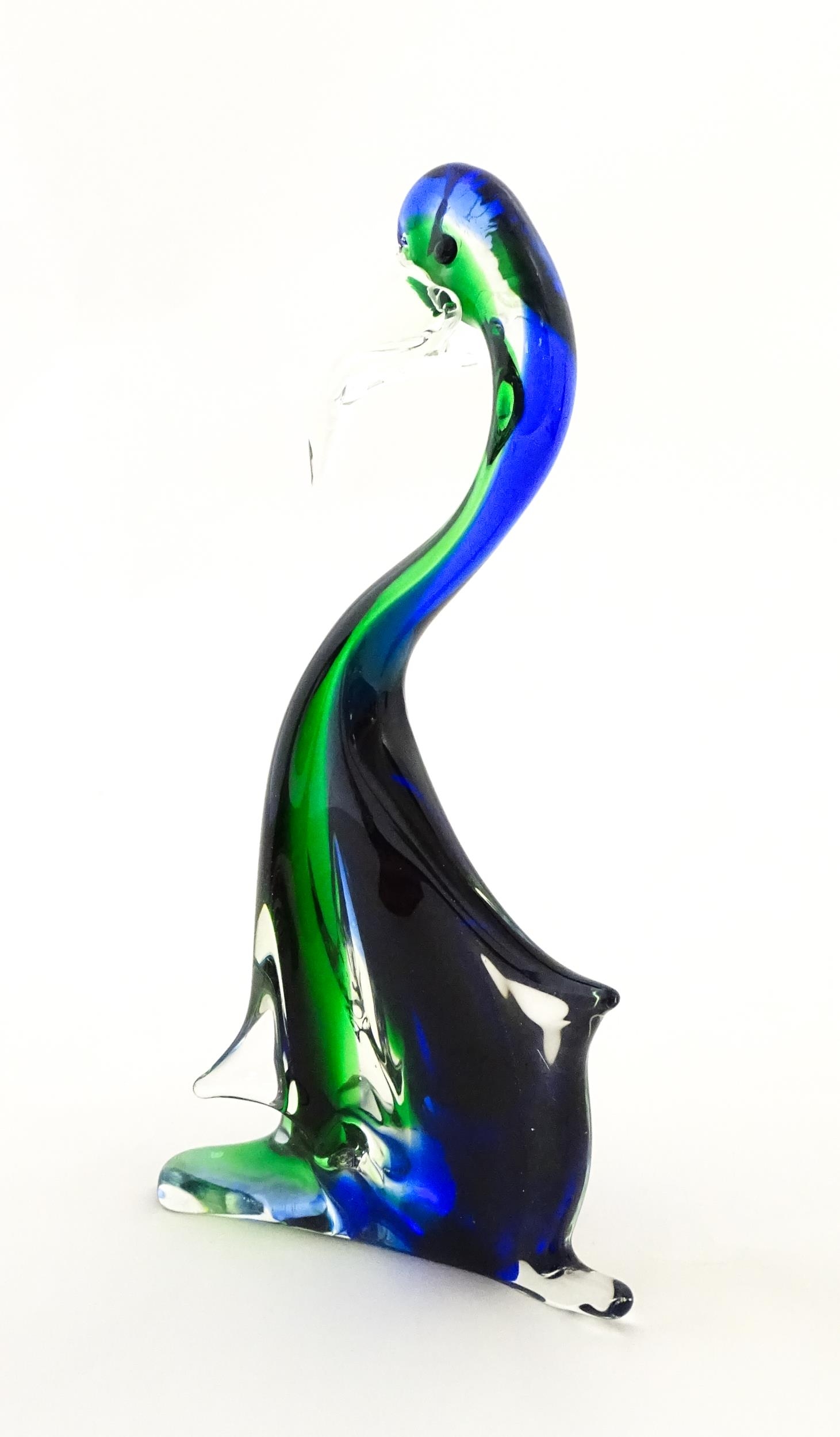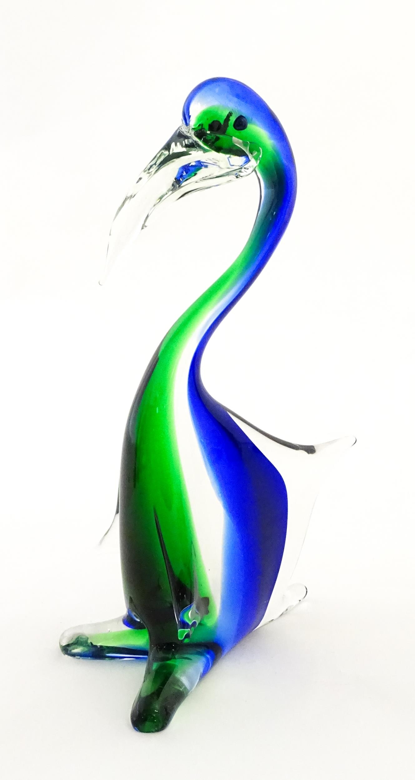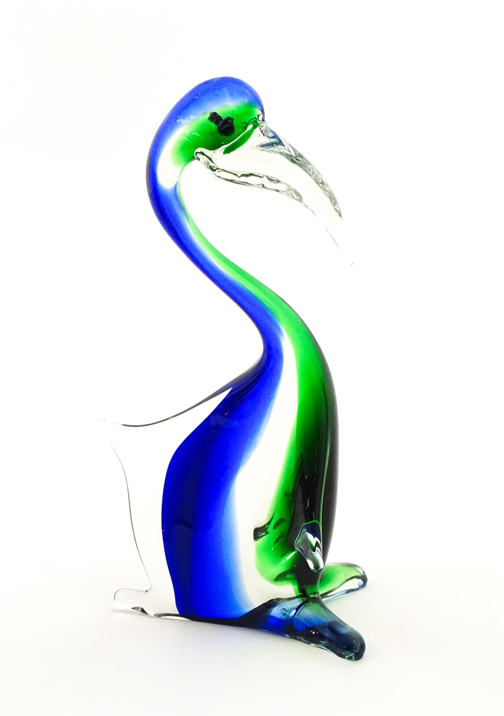 A Murano style art glass bird sculpture with sommerso detail. Approx. 13 1/2" high