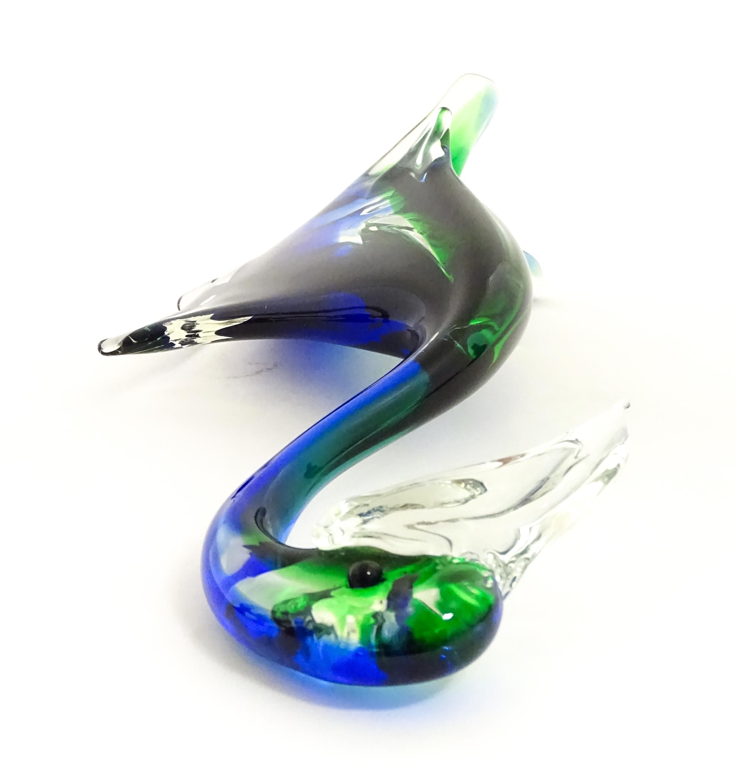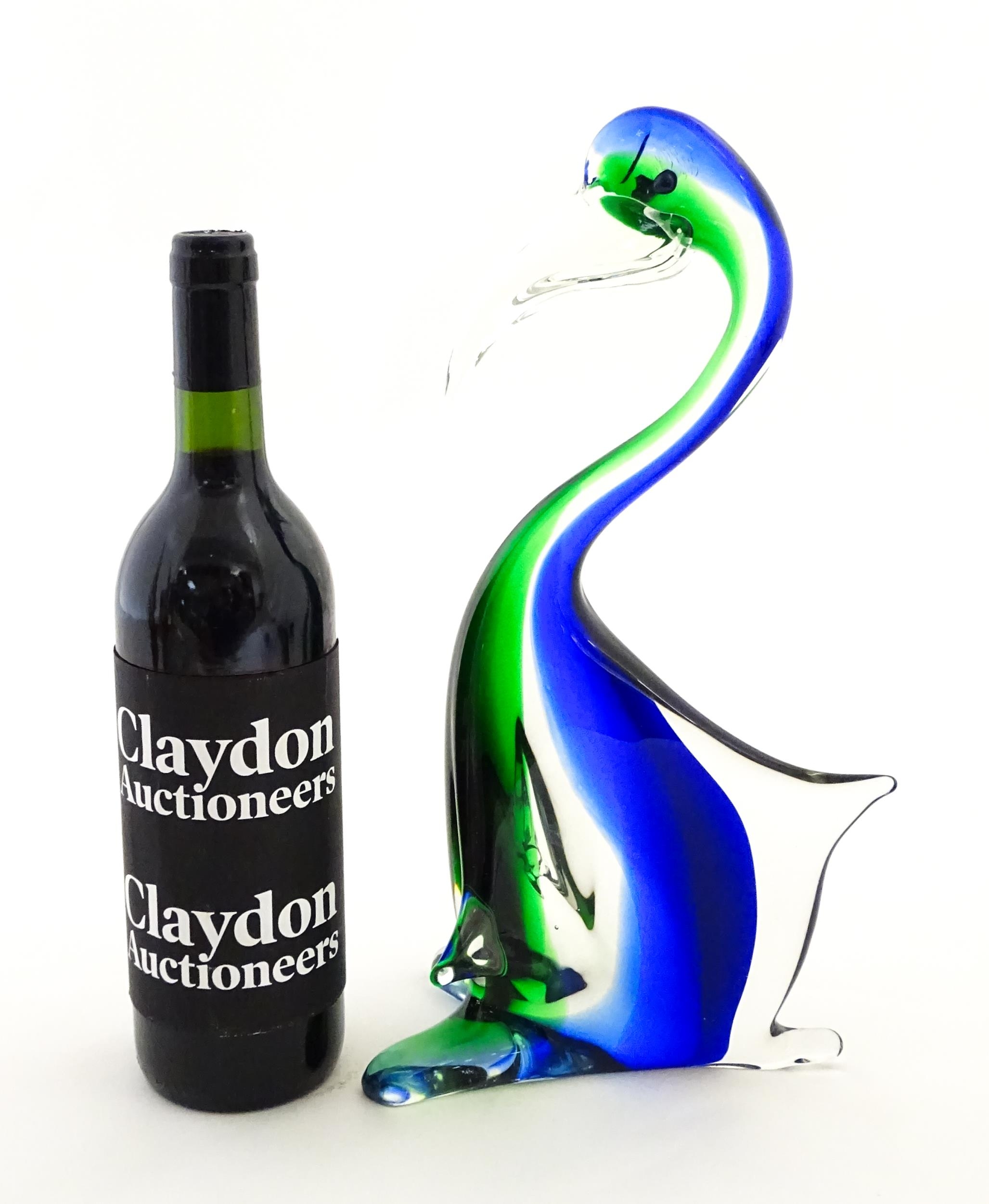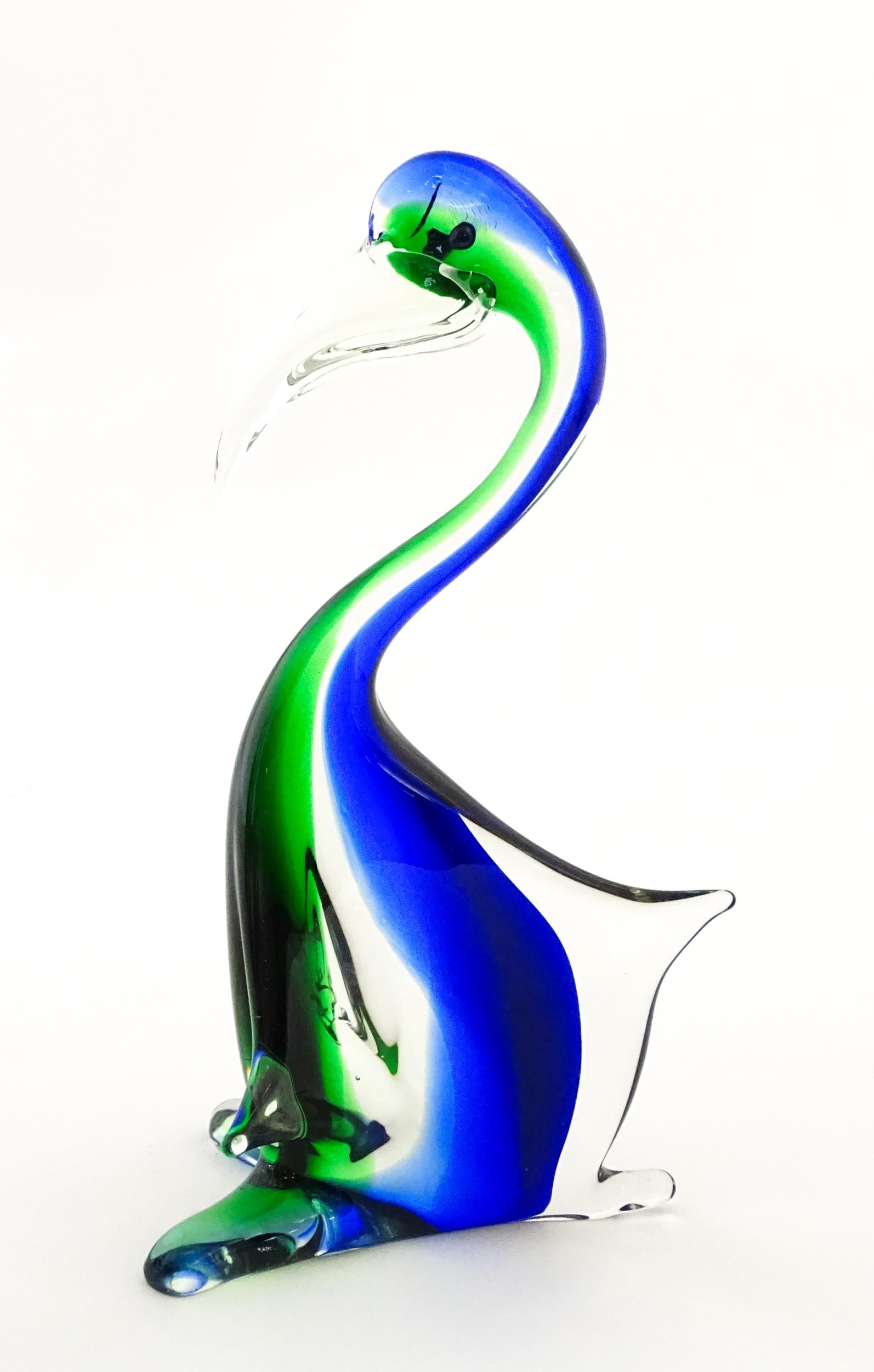 A Murano style art glass bird sculpture with sommerso detail. Approx. 13 1/2" high