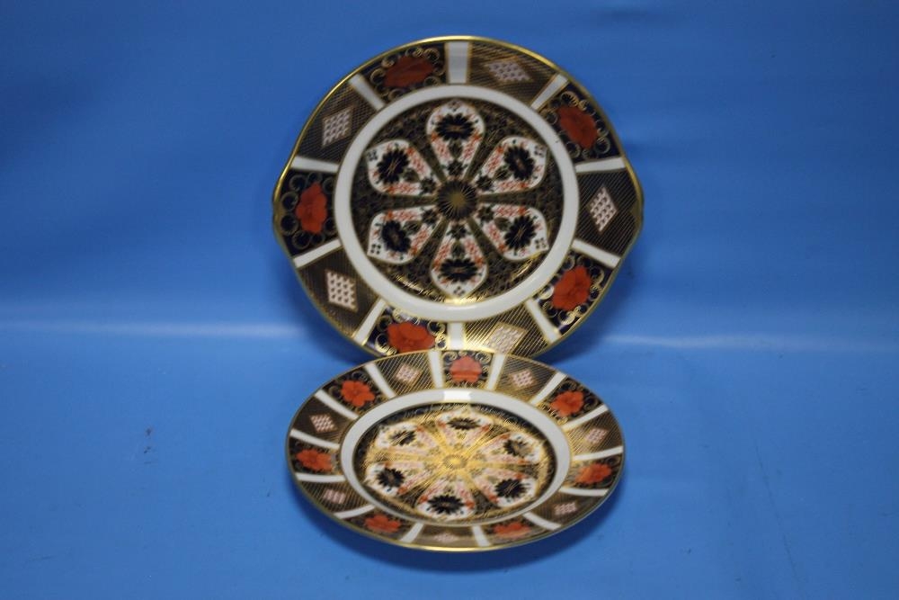 TWO ROYAL CROWN DERBY 'IMARI' PATTERN PLATES, ONE APPROX. 26 X 24 CM, THE OTHER 22 X 22CM (2)
