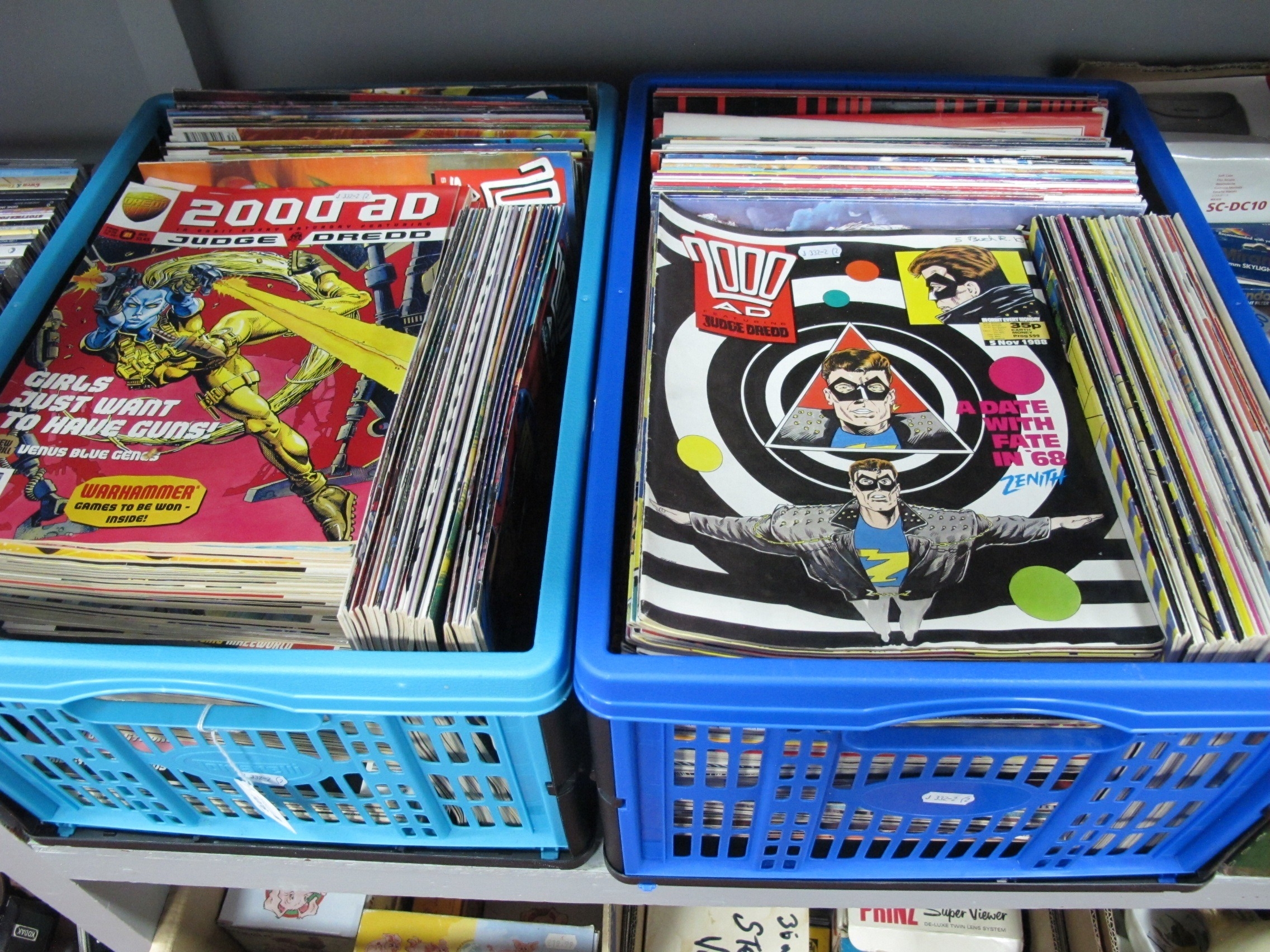 Large quantity of vintage "2000AD" comics from 1989 to 1995. Two boxes.