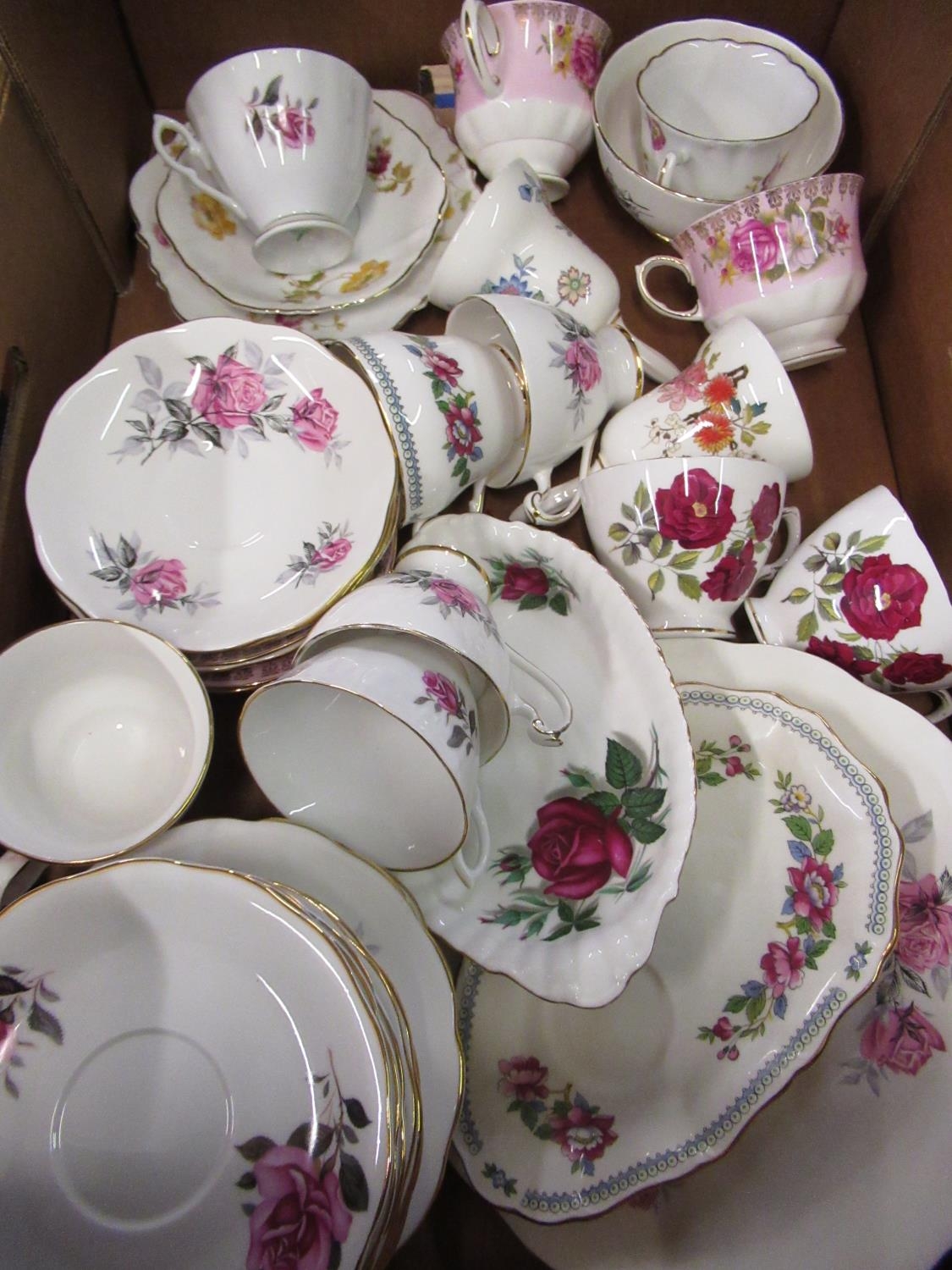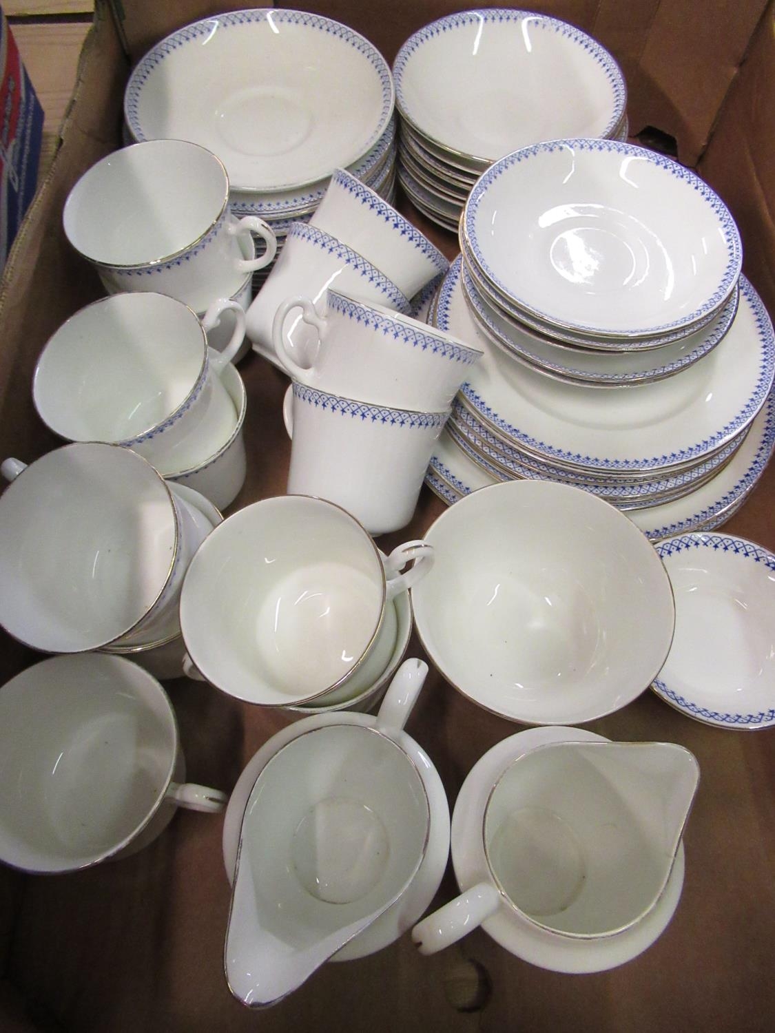 Rostyn china tea ware, a blue & white English bone china tea service and a selection of various other tea wares (2 boxes)