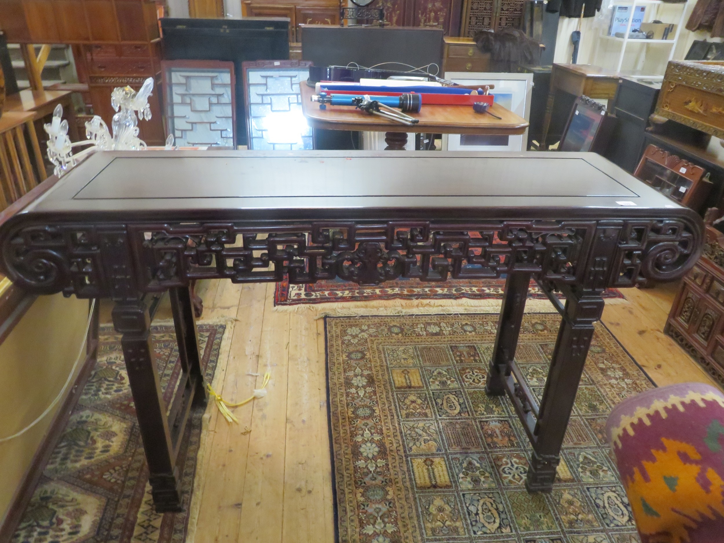 Chinese hardwood console table, 145cm wide by 70cm tall
