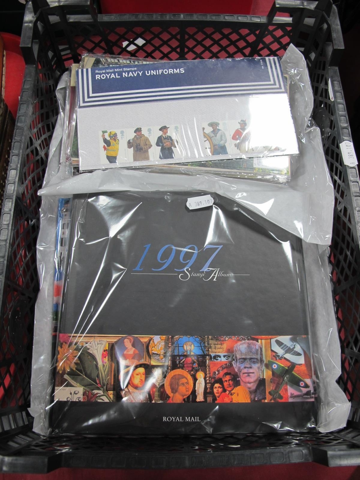 Stamps; A Selection of Great Britain Presentation Packs, containing £180 face value in mint decimal commemorative stamps, also includes four Royal Mail stamp album year books 1997/1998 (blank).