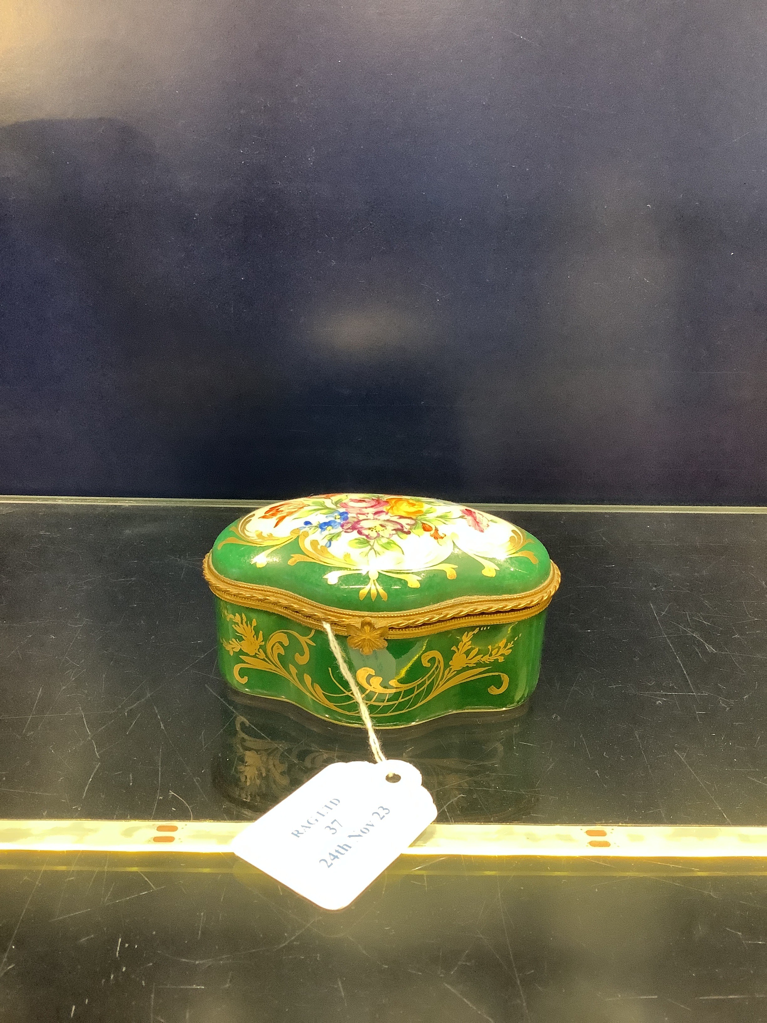 A French porcelain box with hand-painted flowers and gilt decoration