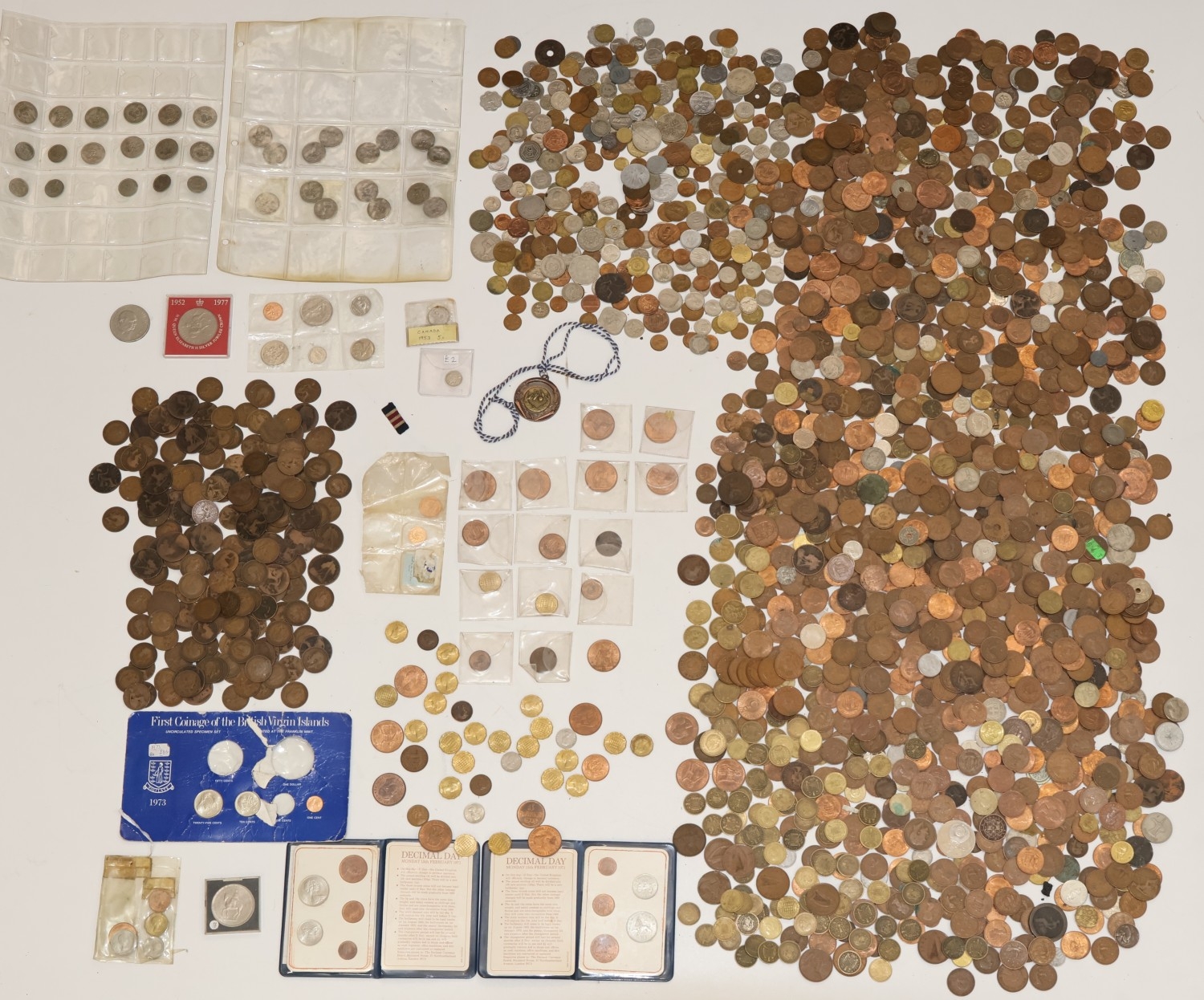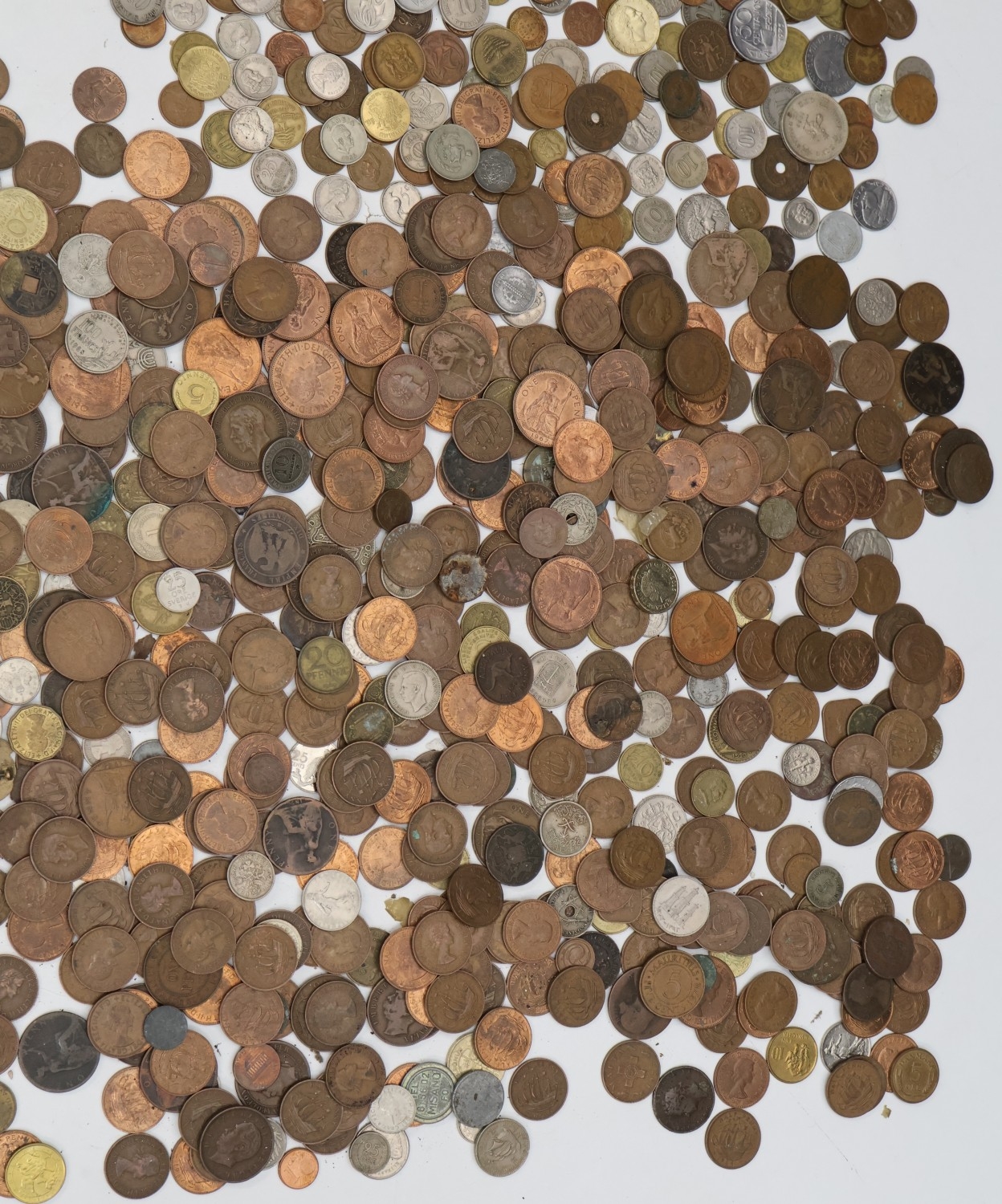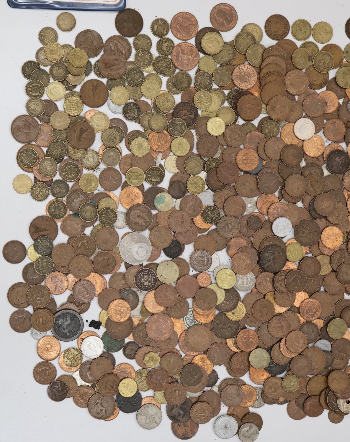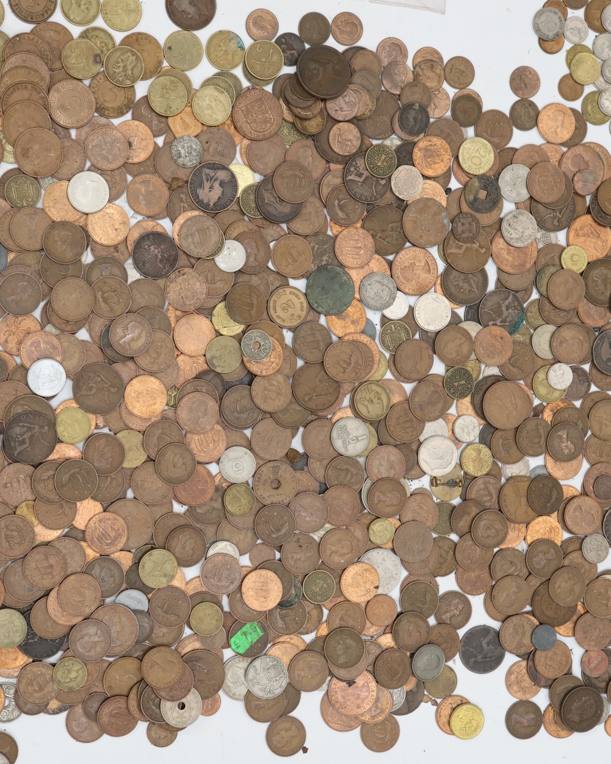 A large quantity of various coins including copper Pennies, Half Pennies, Churchill Crowns etc.
