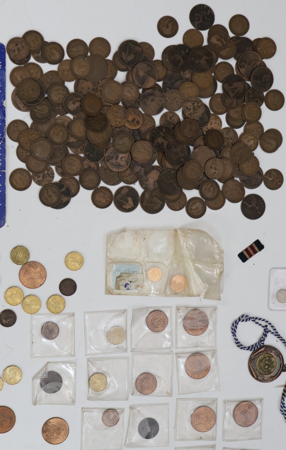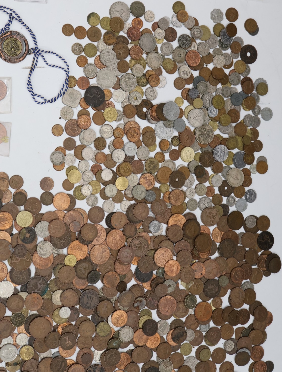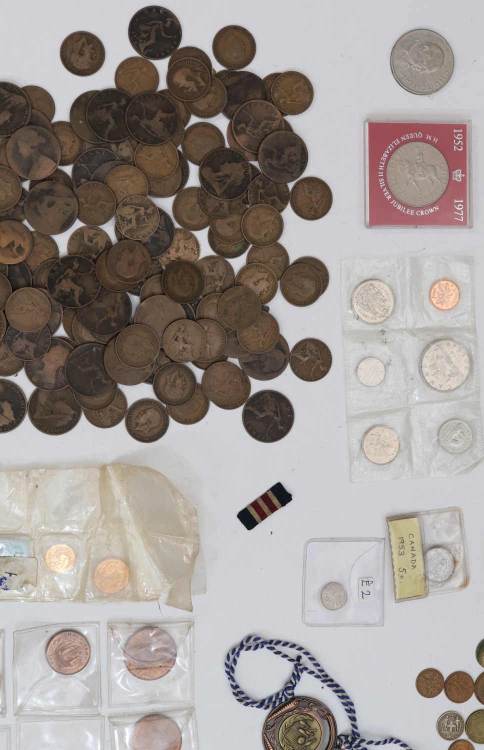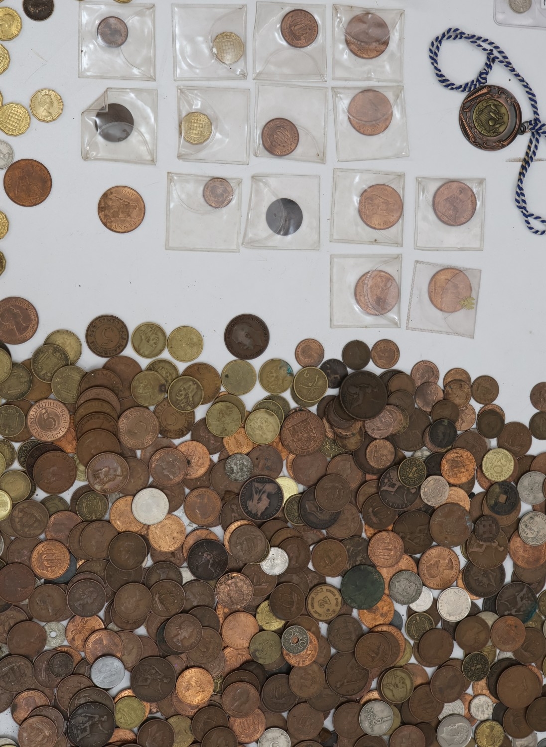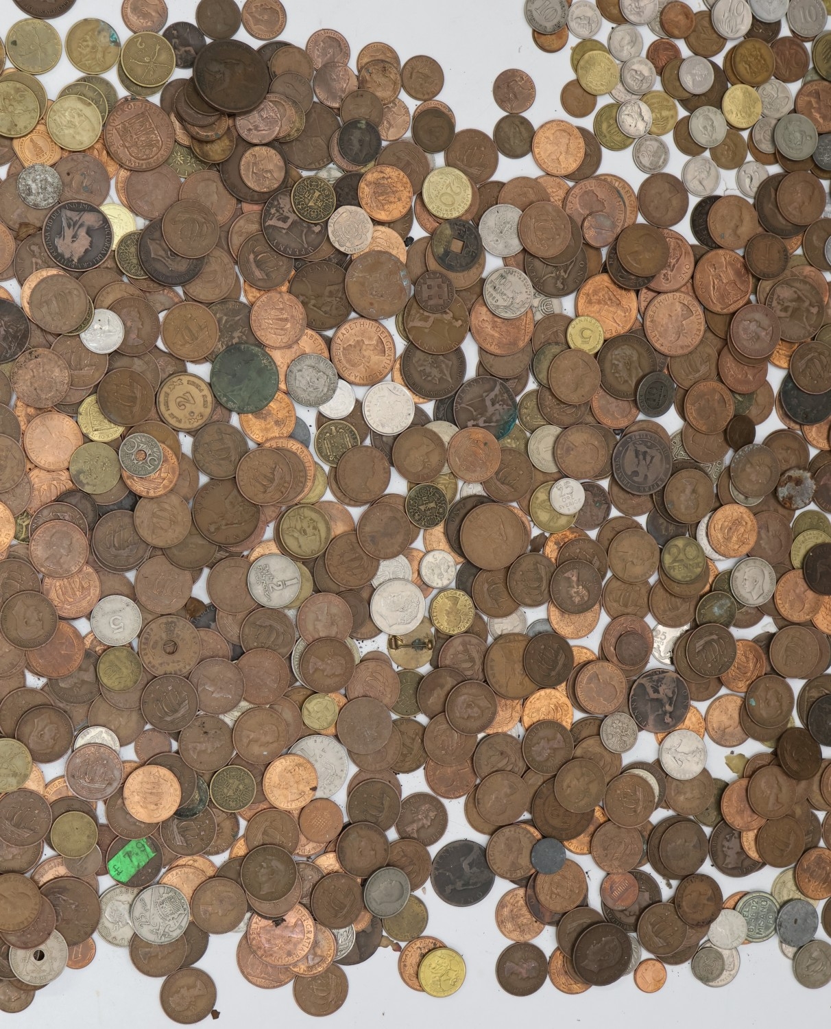A large quantity of various coins including copper Pennies, Half Pennies, Churchill Crowns etc.
