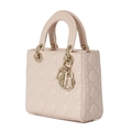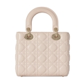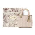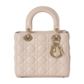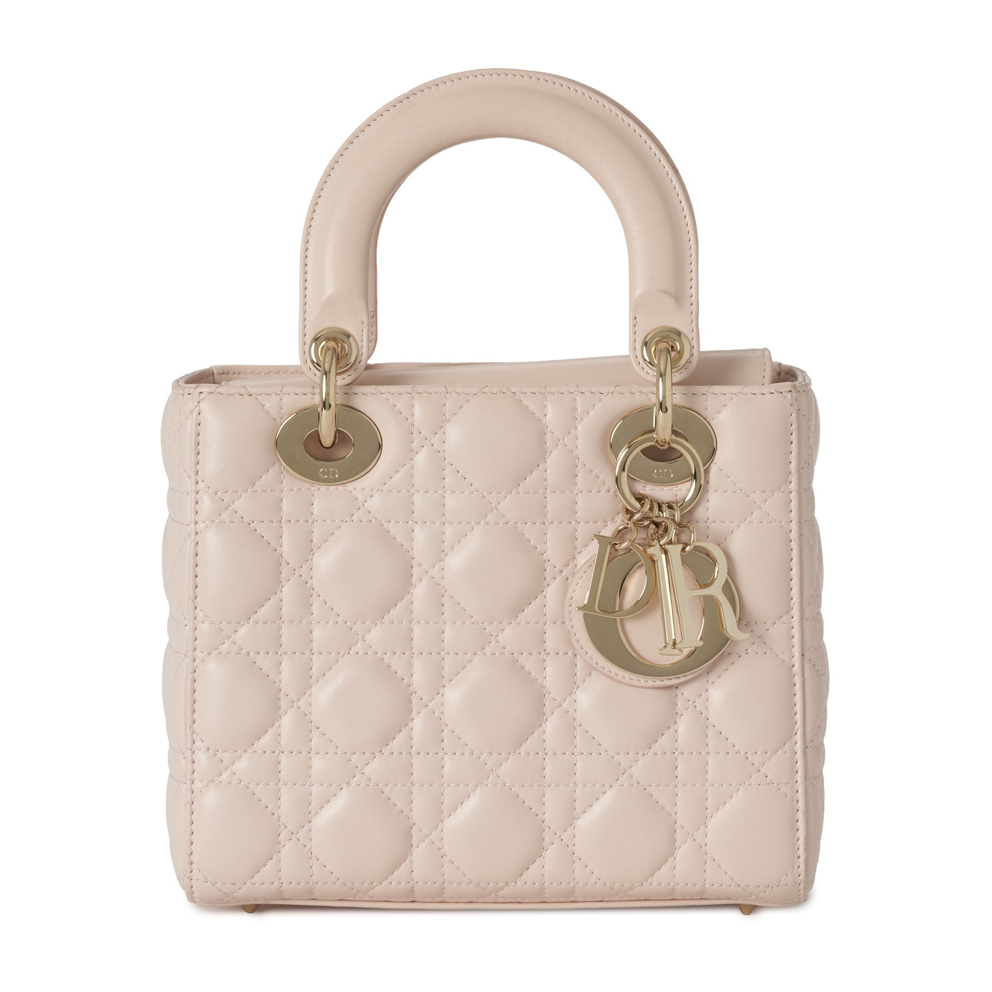 Christian Dior, a small Cannage Lady Dior handbag, designed with a quilted pale pink lambskin leather exterior, with rigid looping leather top handles, a detachable leather shoulder strap, polished gold-tone hardware, hanging logo letter charms, top flap closure and cannage patterned interior lining, measuring 8 by 17 by 20cm, with maker's dust bag, box, authenticity card, care guides and receipt