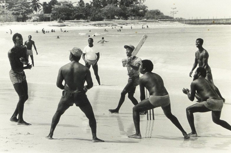 Six Mark Power photographic prints - West Indian Life including cricketers on a beach, young cricketers, etc, 40cm x 30cm
