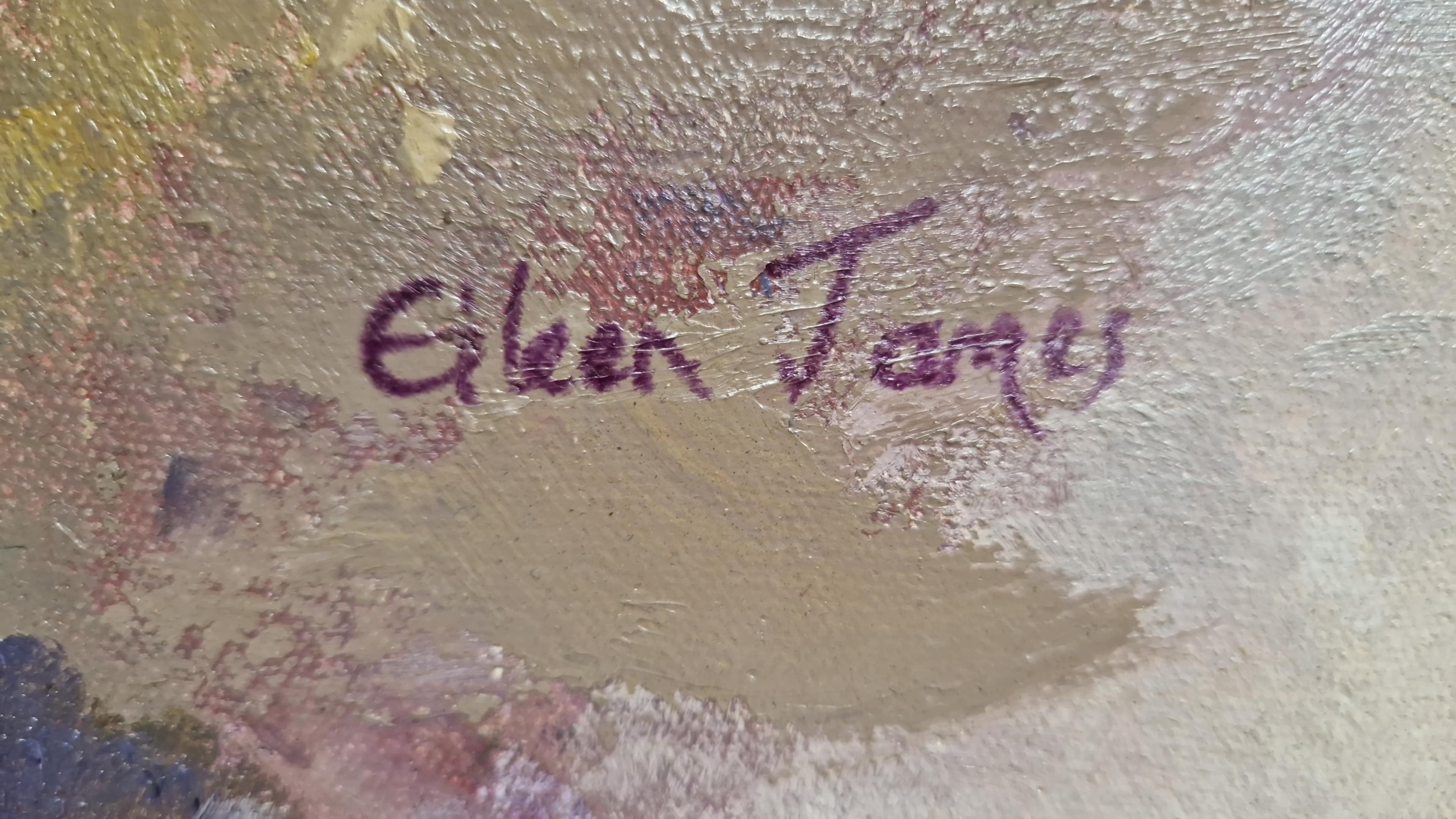 LARGE FRAMED ORIGINAL OIL ON CANVAS SIGNED EILEEN JAMES - 87CMS X 62CMS - COLLECTION ONLY OR ARRANGE OWN COURIER