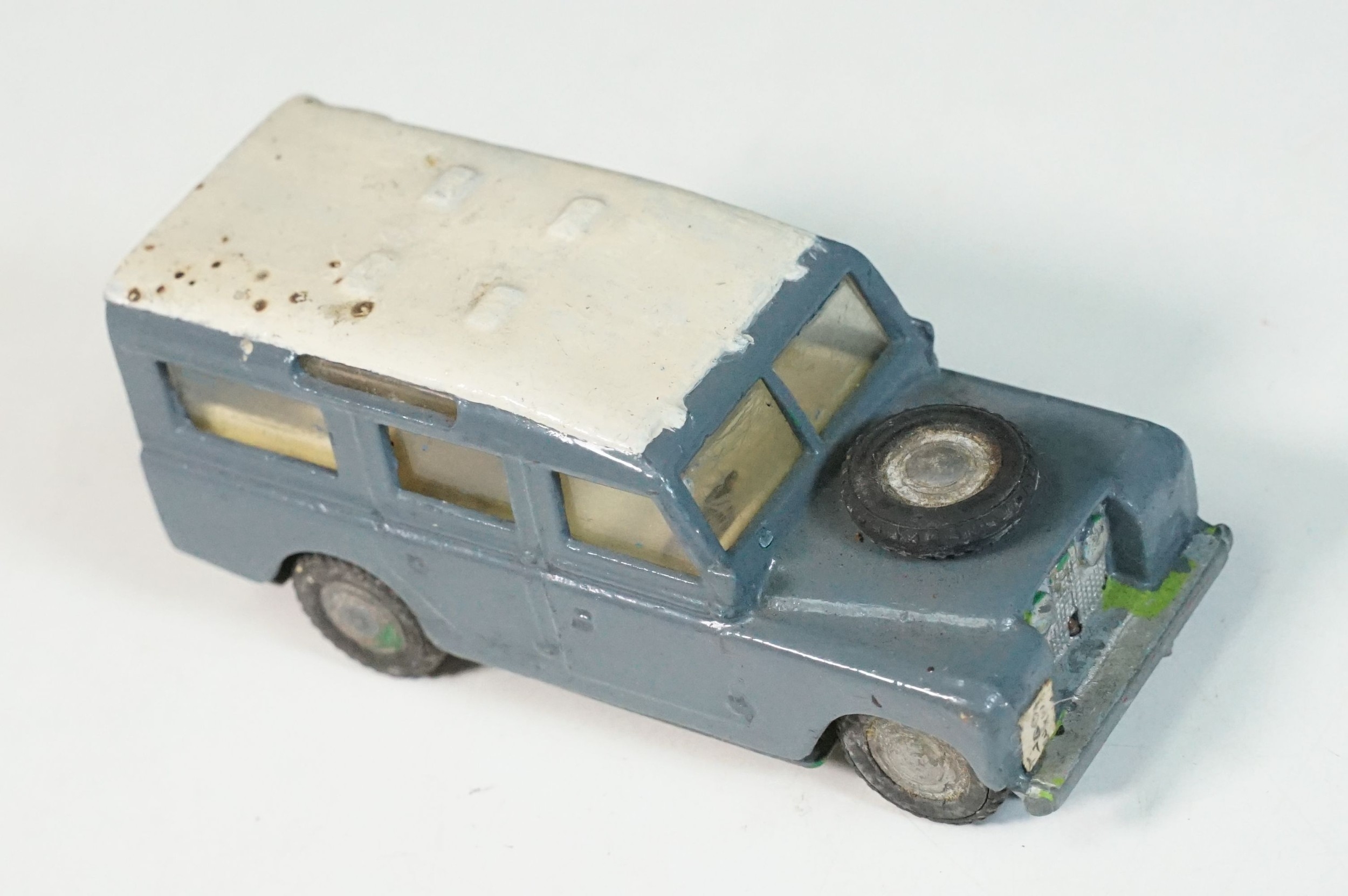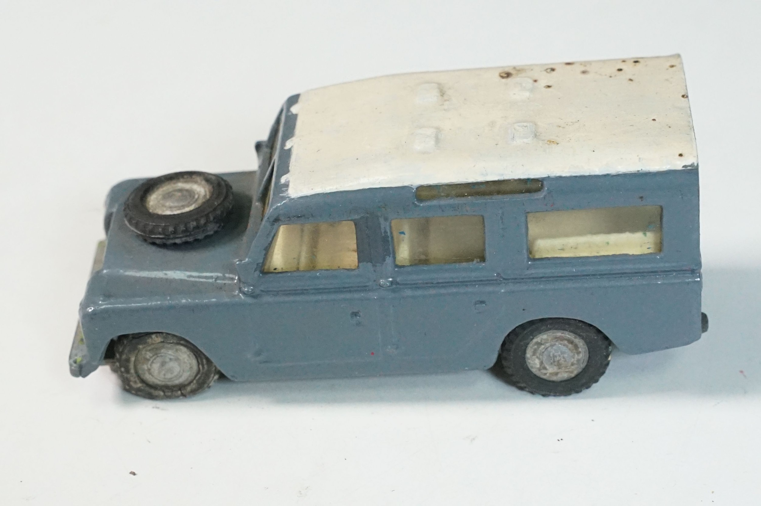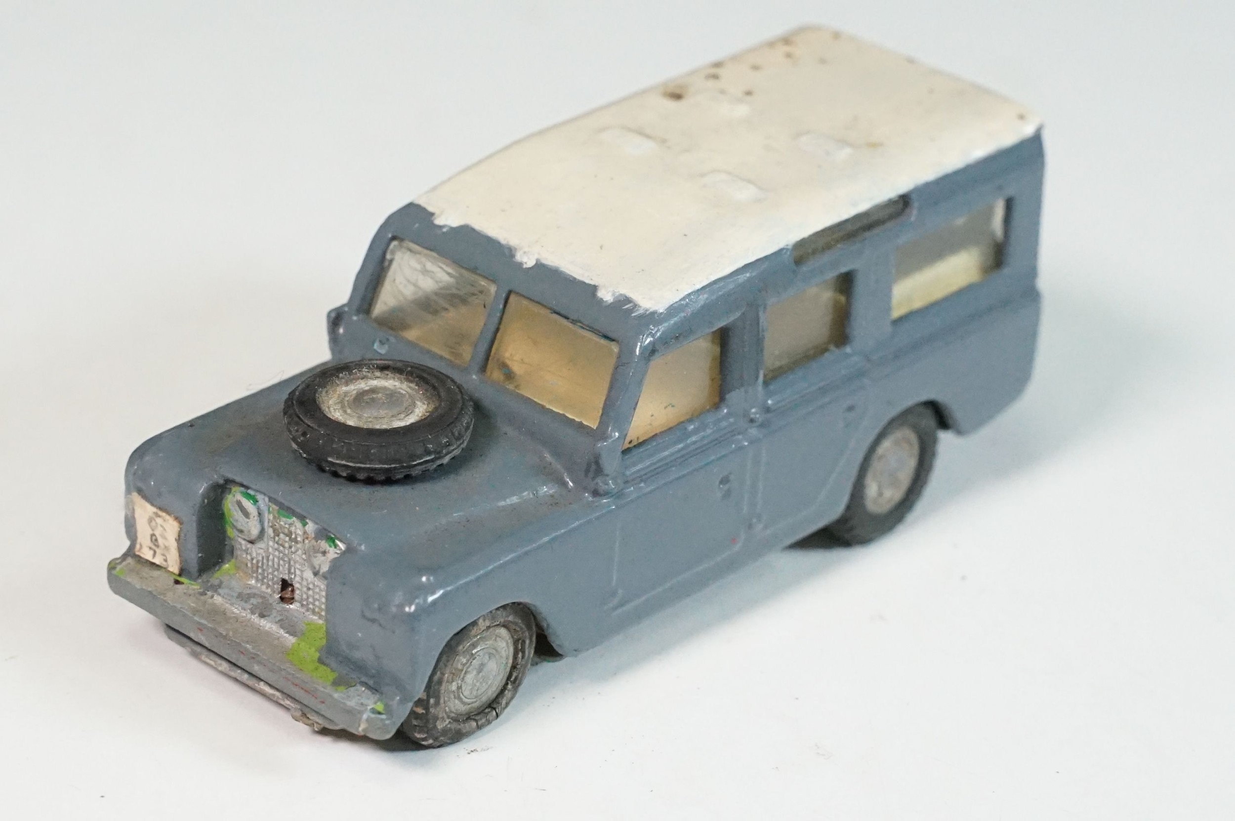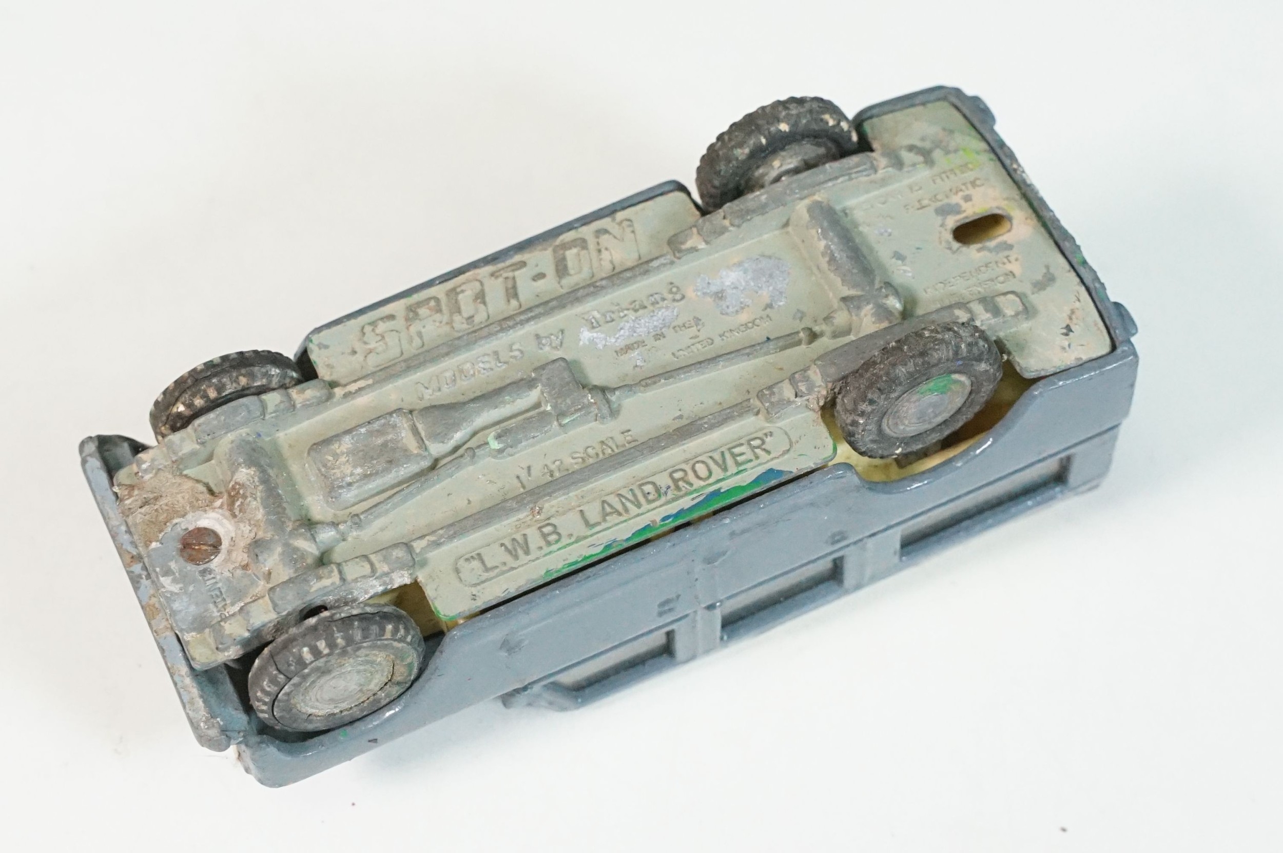 Five play worn Triang Spot On diecast models to include Zodiac, Morris Mini Van, LWB and Rover, Austin Taxi FX4 and Volvo 122, shows reconditioning and painting