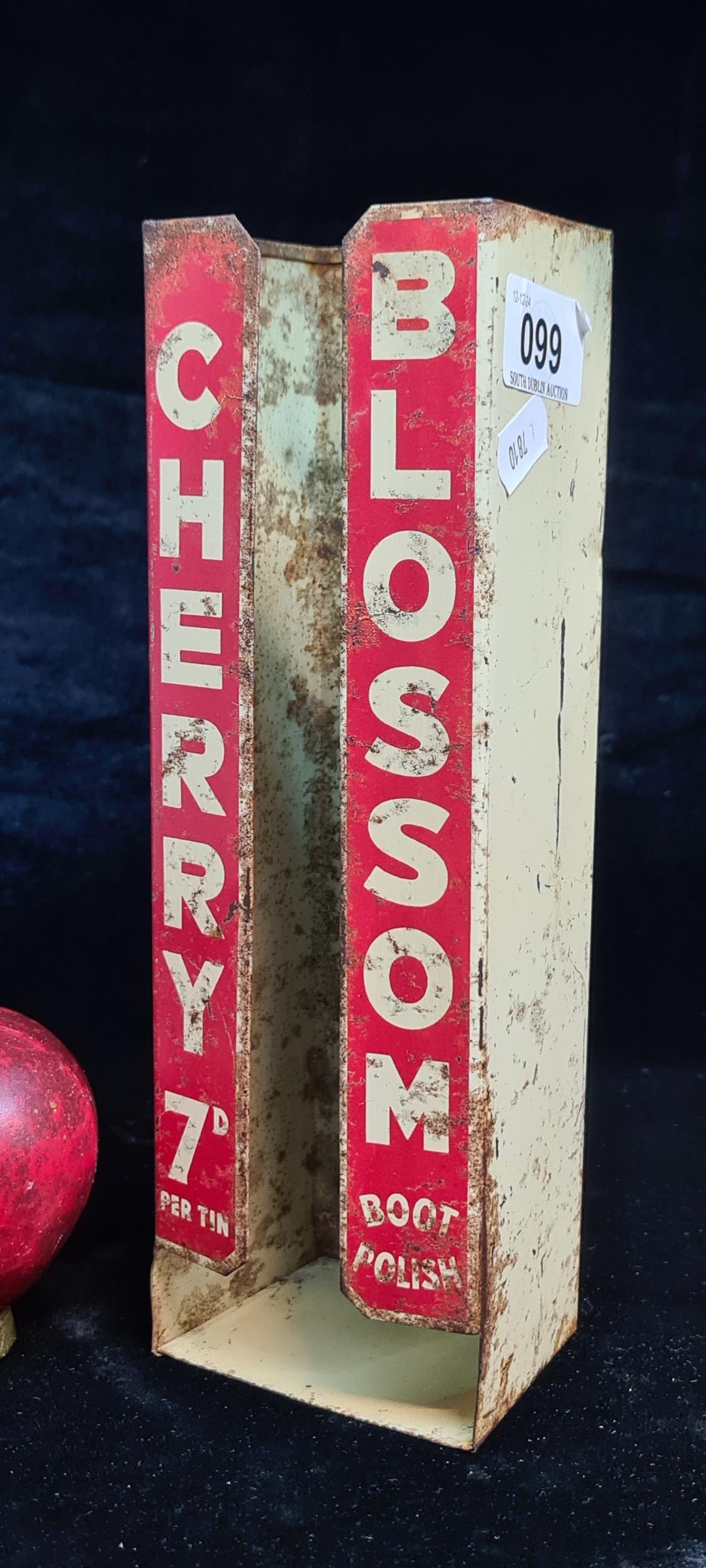 A fabulous rare tin plate Cherry Blossom boot polish dispens...