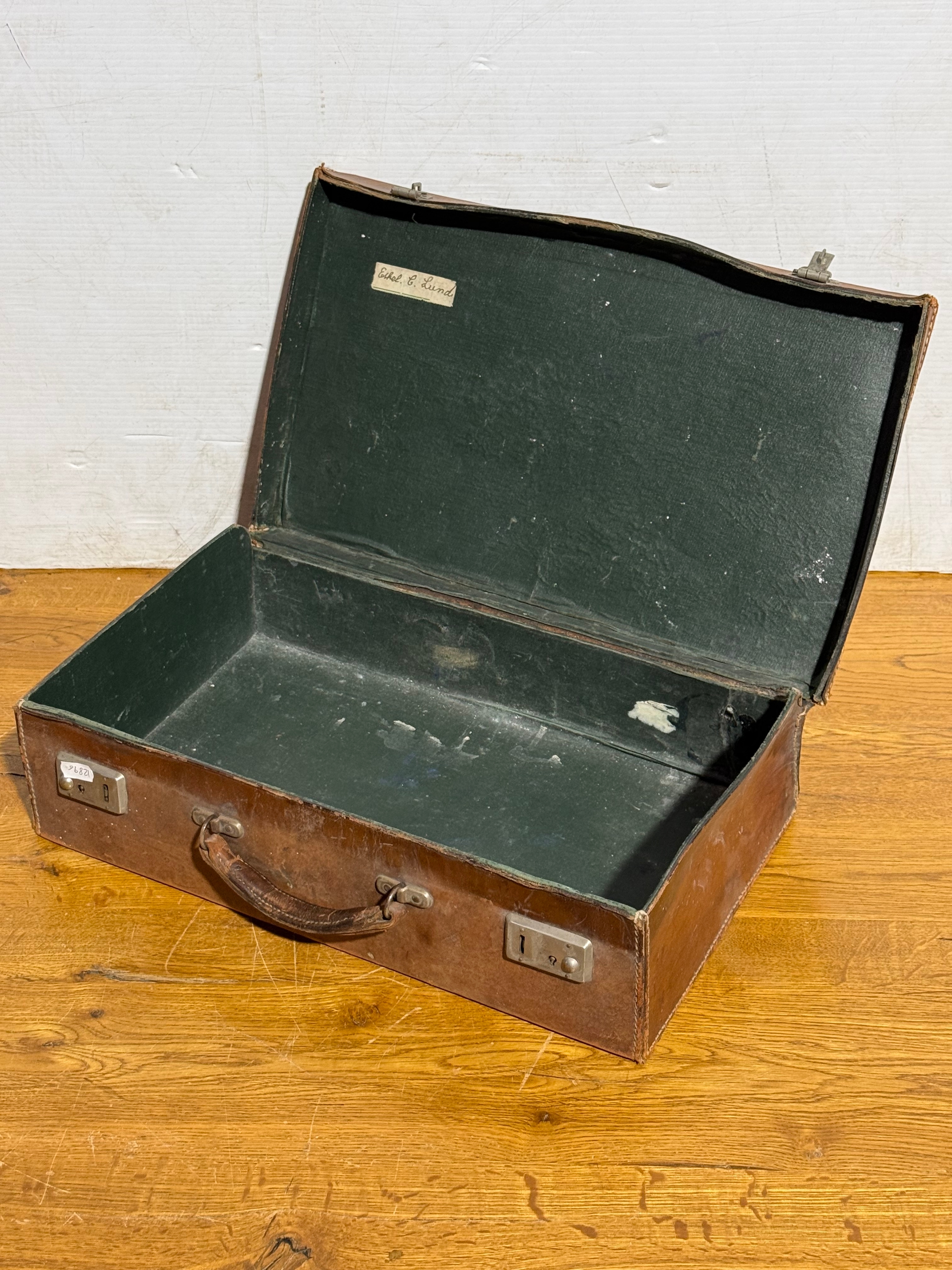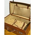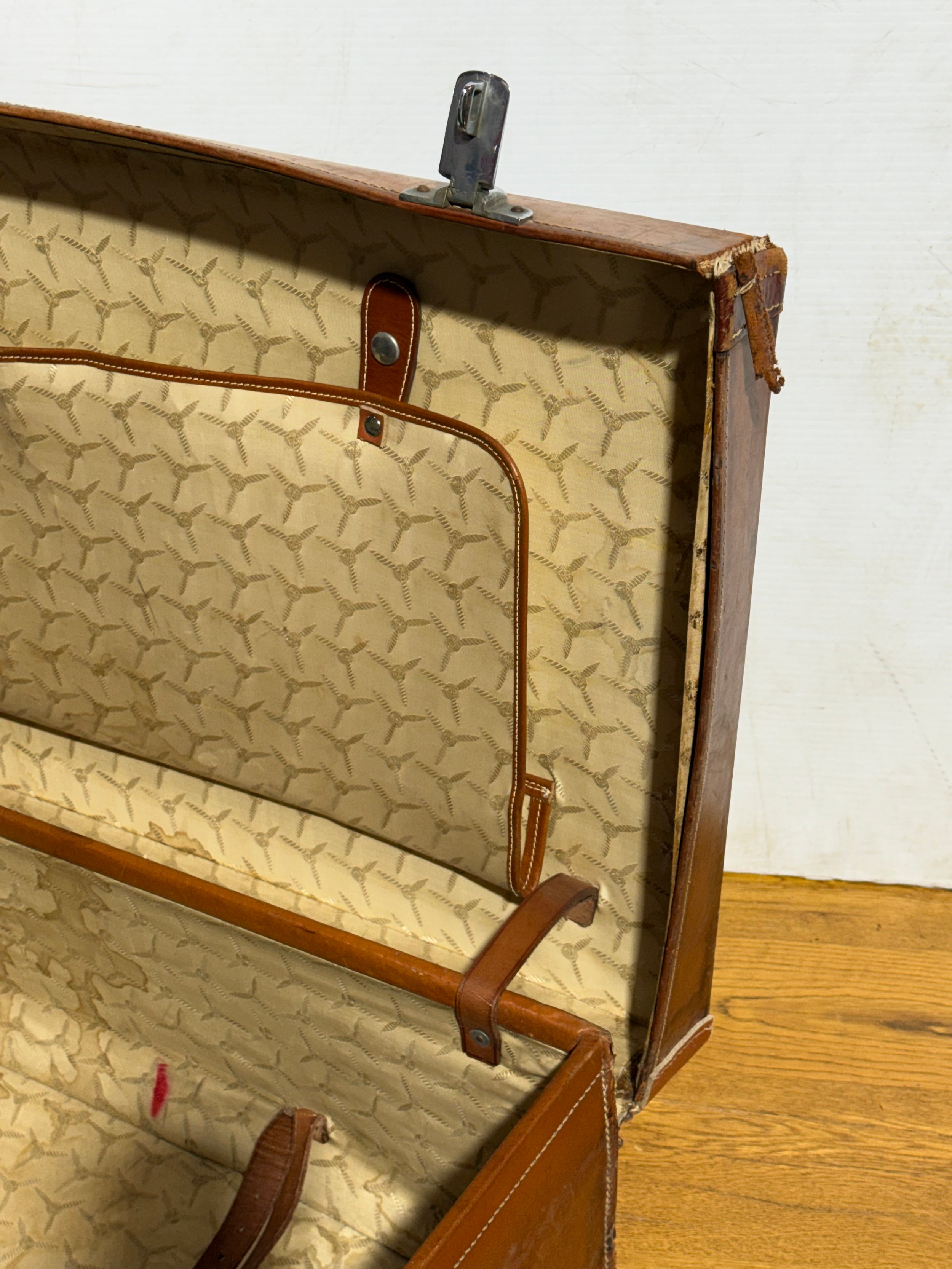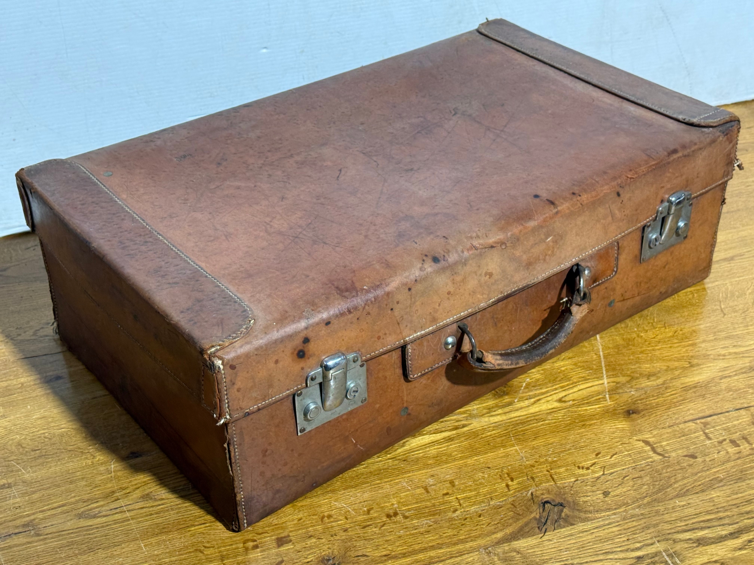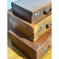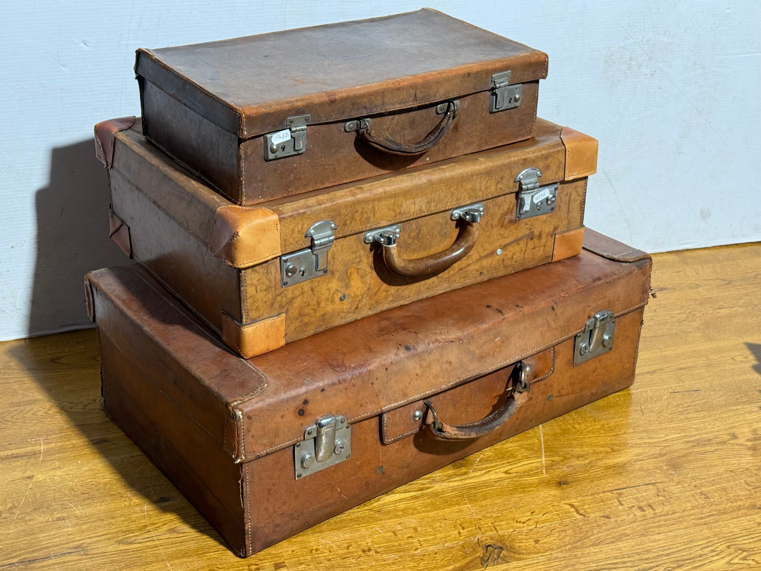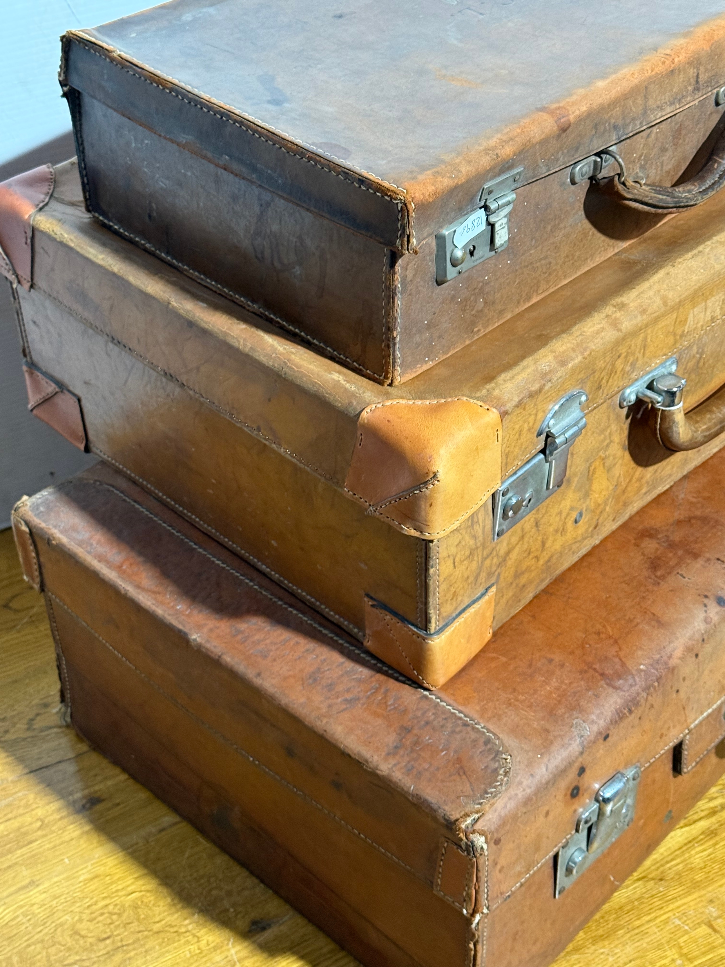 Three vintage leather travelling cases. Largest 67x40x21cm.