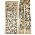 Two pairs of Chinese silk embroidered sleeve bands, early 20th century. 106 x 8.5cm and 52 x 11cm. (4)