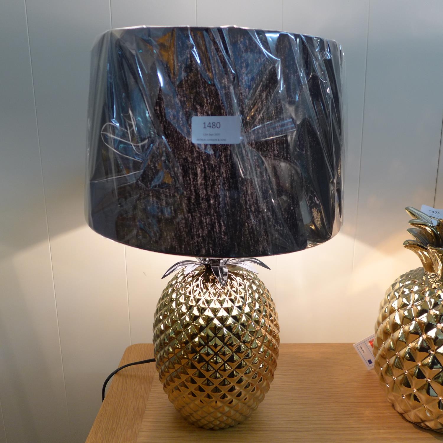 A gold ceramic pineapple table lamp with black shade (30393C19) #