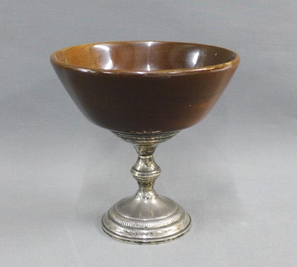 Silver and wood pedestal bowl, stamped silver 14cm high