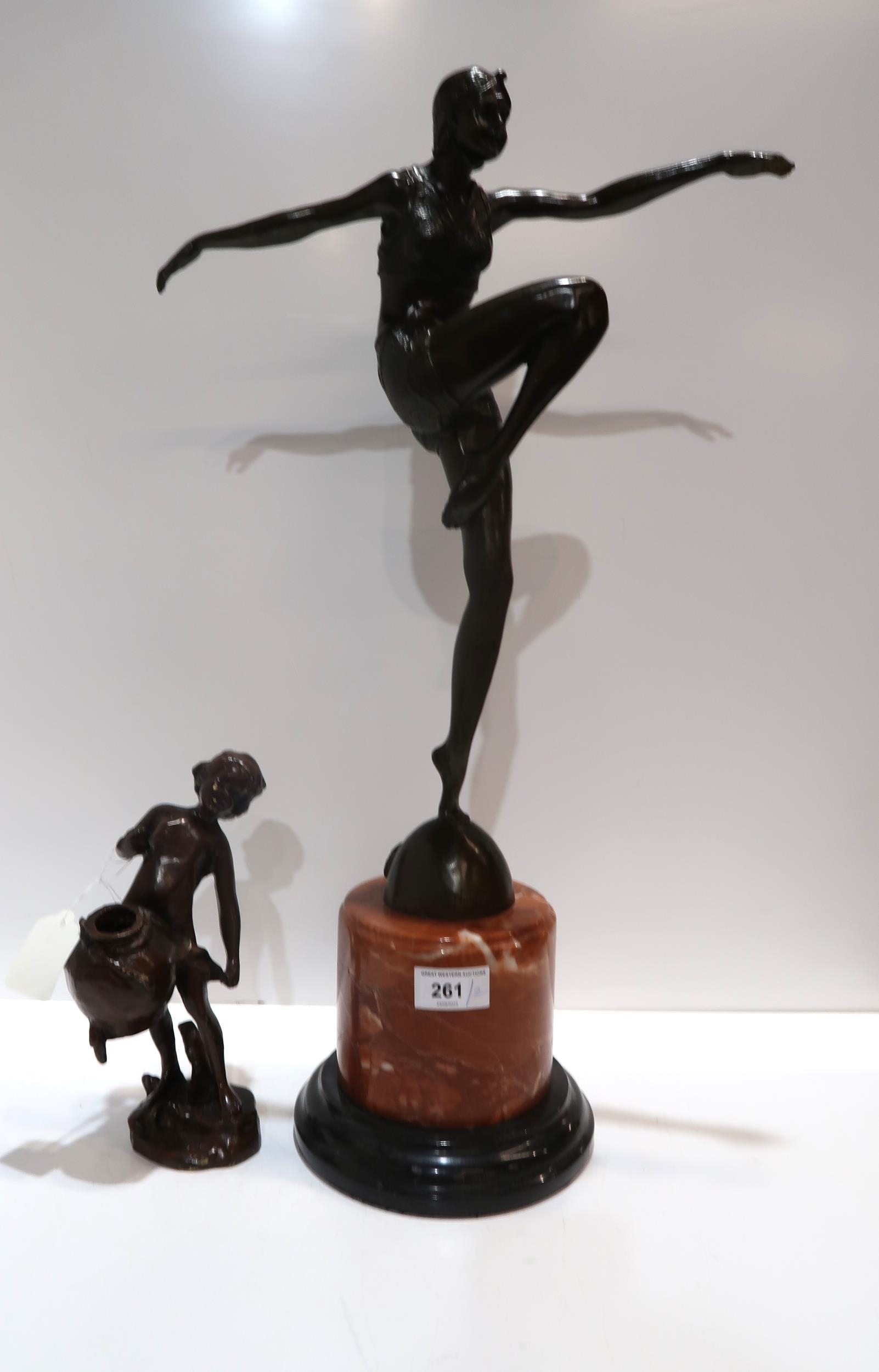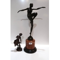 An Art Deco style figure after J Philipp of a flapper, together with a small bronze of a boy with urn