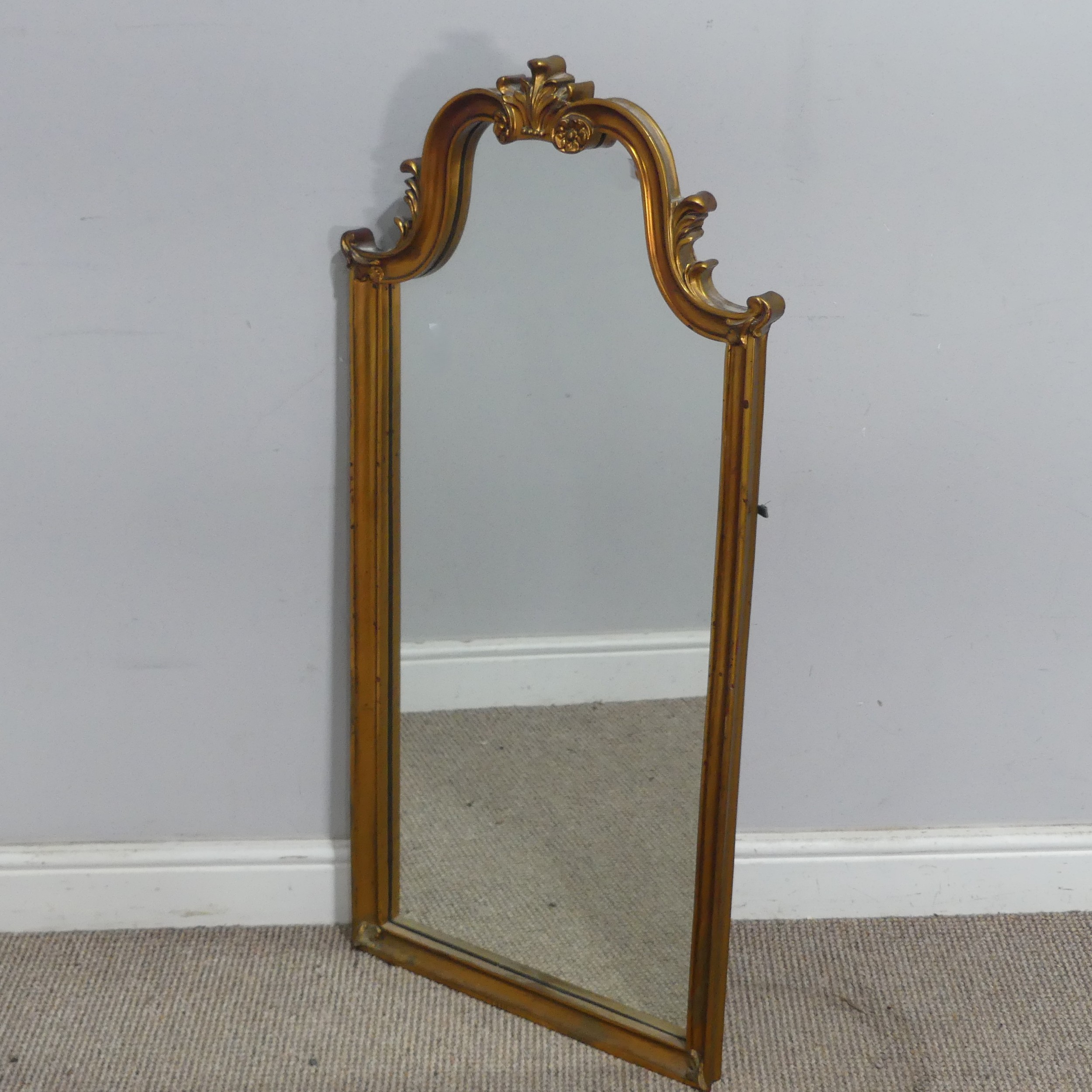 A 19th century style wall Mirror, decorated with acanthus leaves, marked 'M 300' to the top, W 52 cm x H 104 cm.