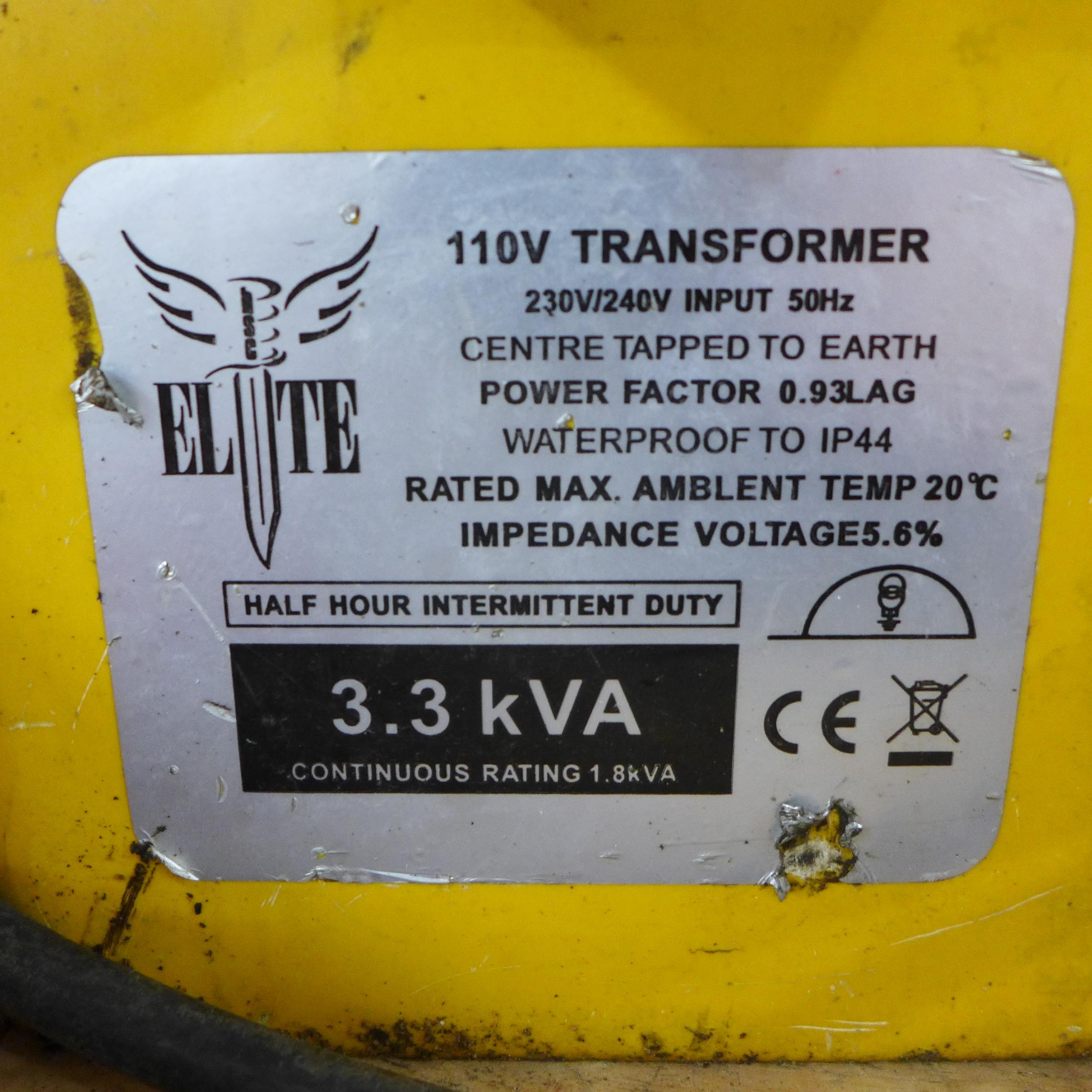 An Elite 3.3kva 110v transformer - failed electrical safety test due to insulation resistance - sold as scrap only