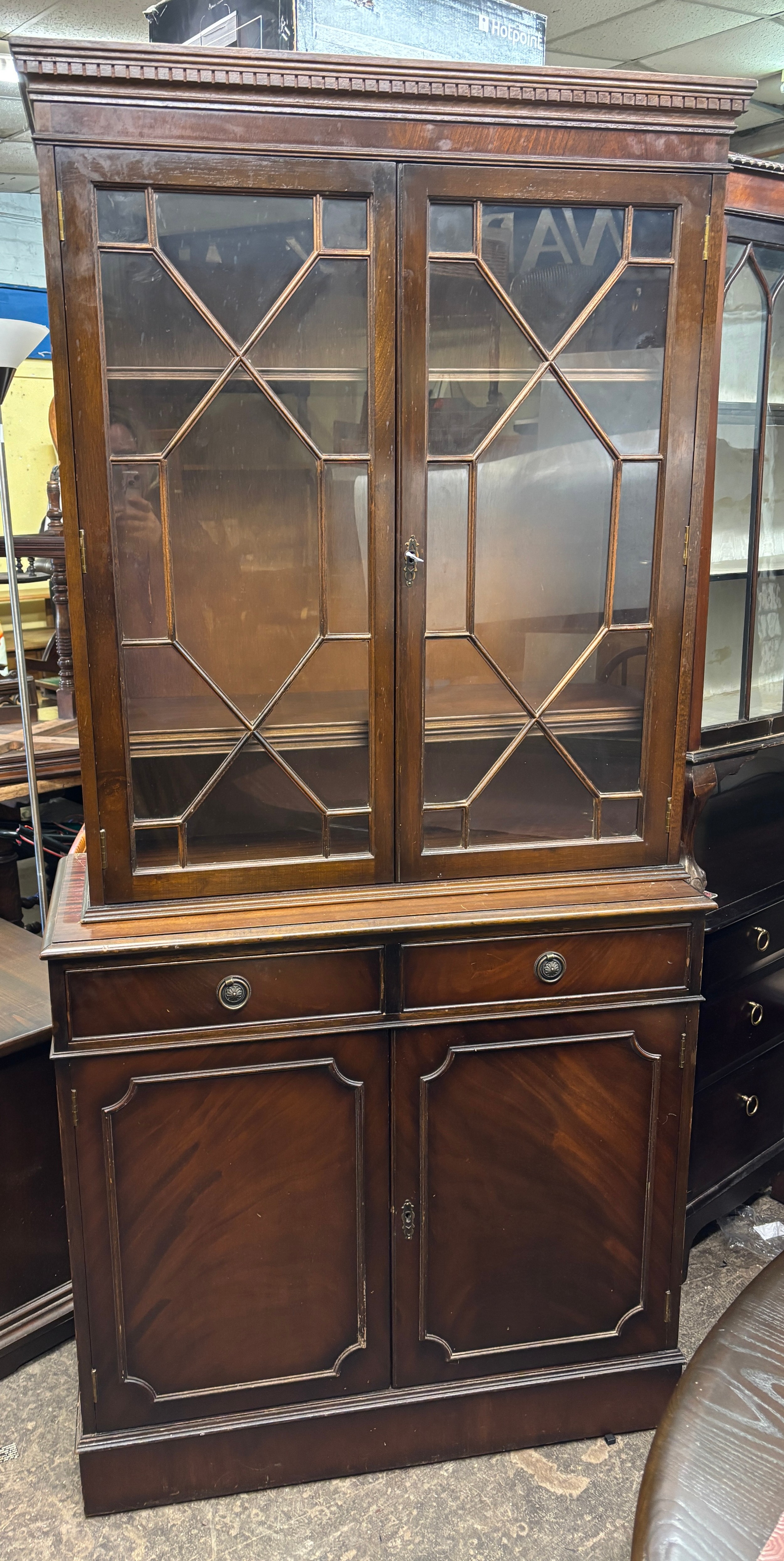 REPRODUCTION MAHOGANY ASTRAGAL GLAZED CUPBOARD CABINET
