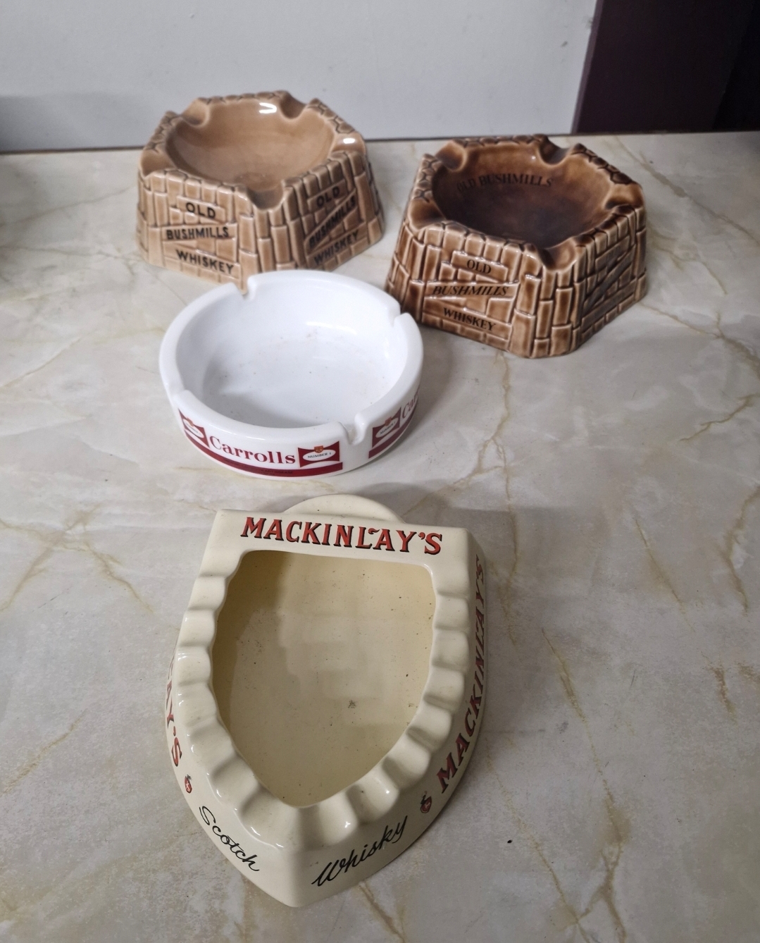 A selection of four Ash trays Carrolls MacKinlays Bushmills.