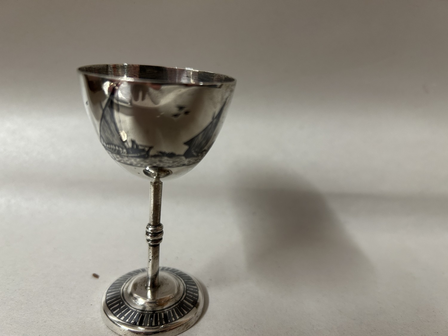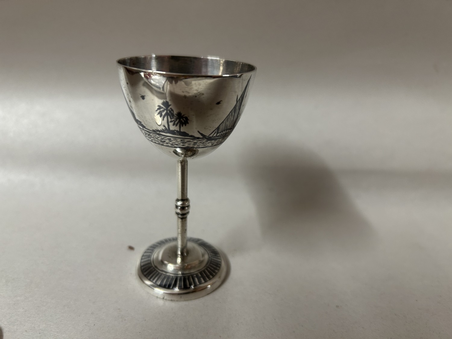 Iraqui Niello White Metal Cup or Salt, 4"