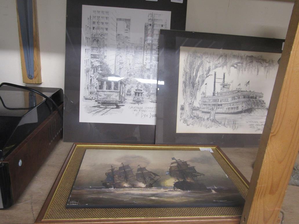 THREE VARIOUS PICTURES INC. OLEOGRAPH OF SEA BATTLE