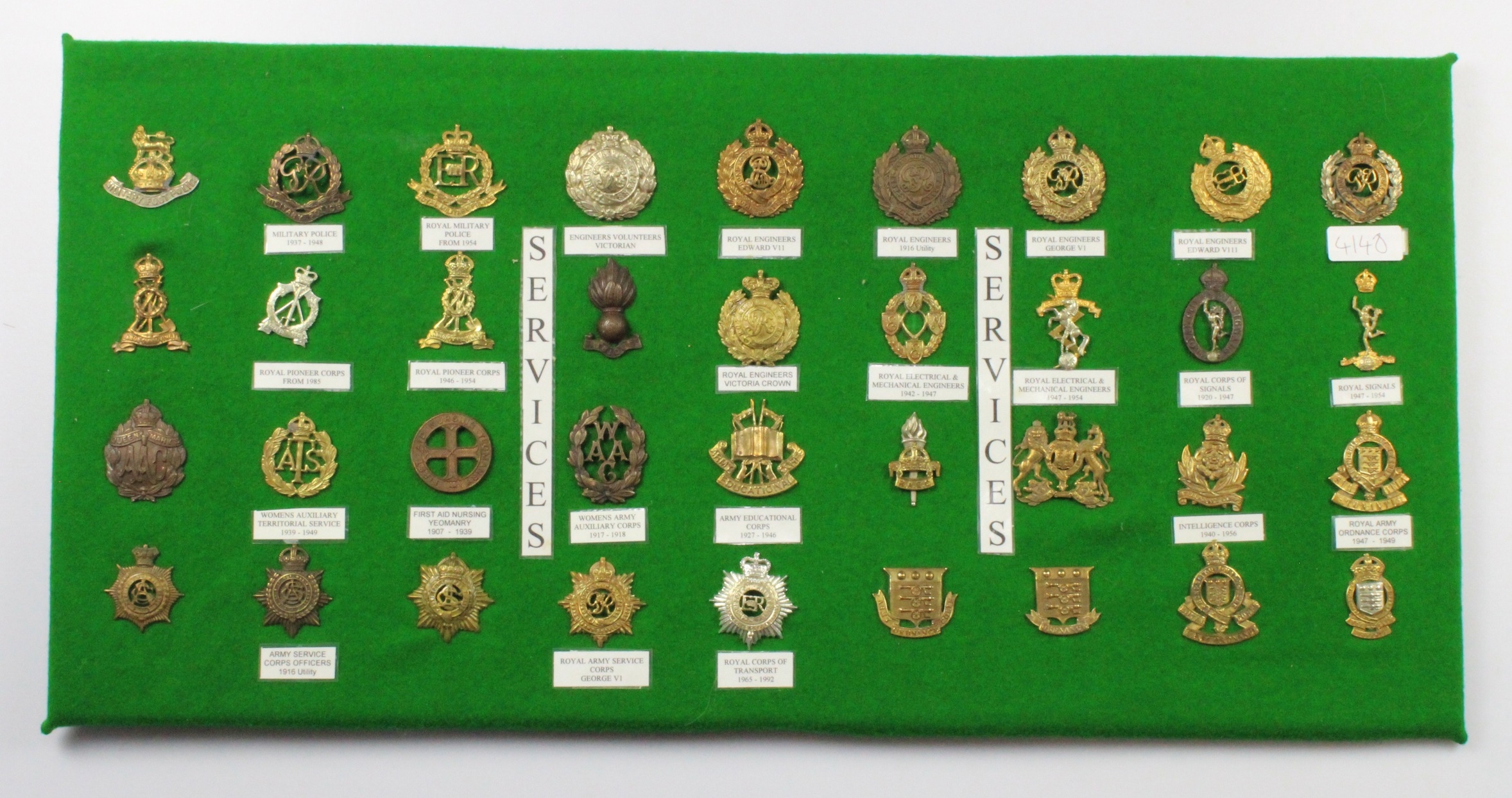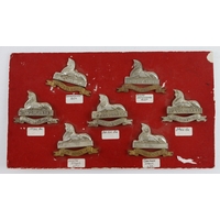 Badges collection of mainly cavalry regiments mounted on felt board.