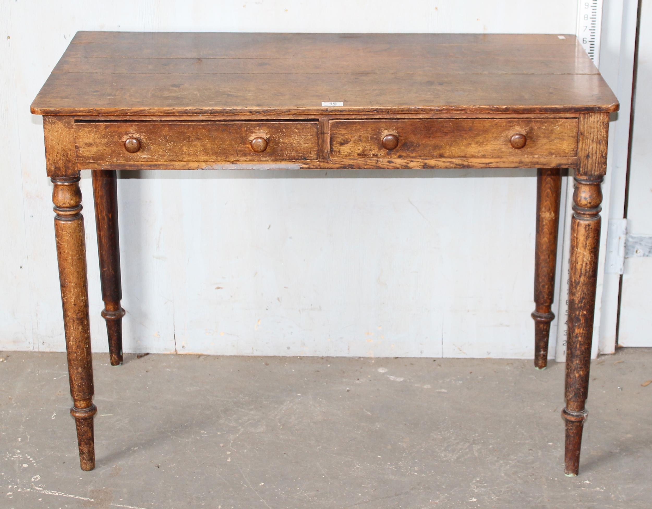 An antique oak 2 drawer hall or side table, approx 107cm wide