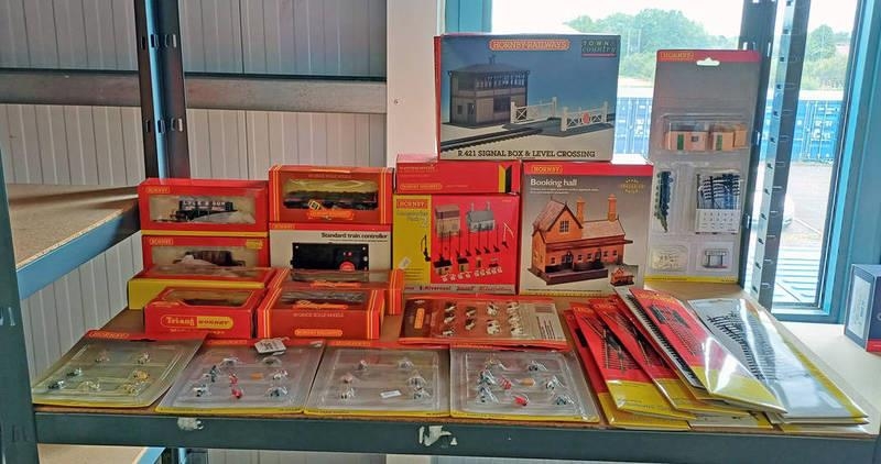 SELECTION OF HORNBY OO GAUGE ROLLING STOCK AND ACCESSORIES INCLUDING R6200 - 6 PLANK WAGON, SNEYD COLLIERY, R8007 - BOOKING HALL, R563 - WORKING PEOPLE FIGURES AND OTHERS.