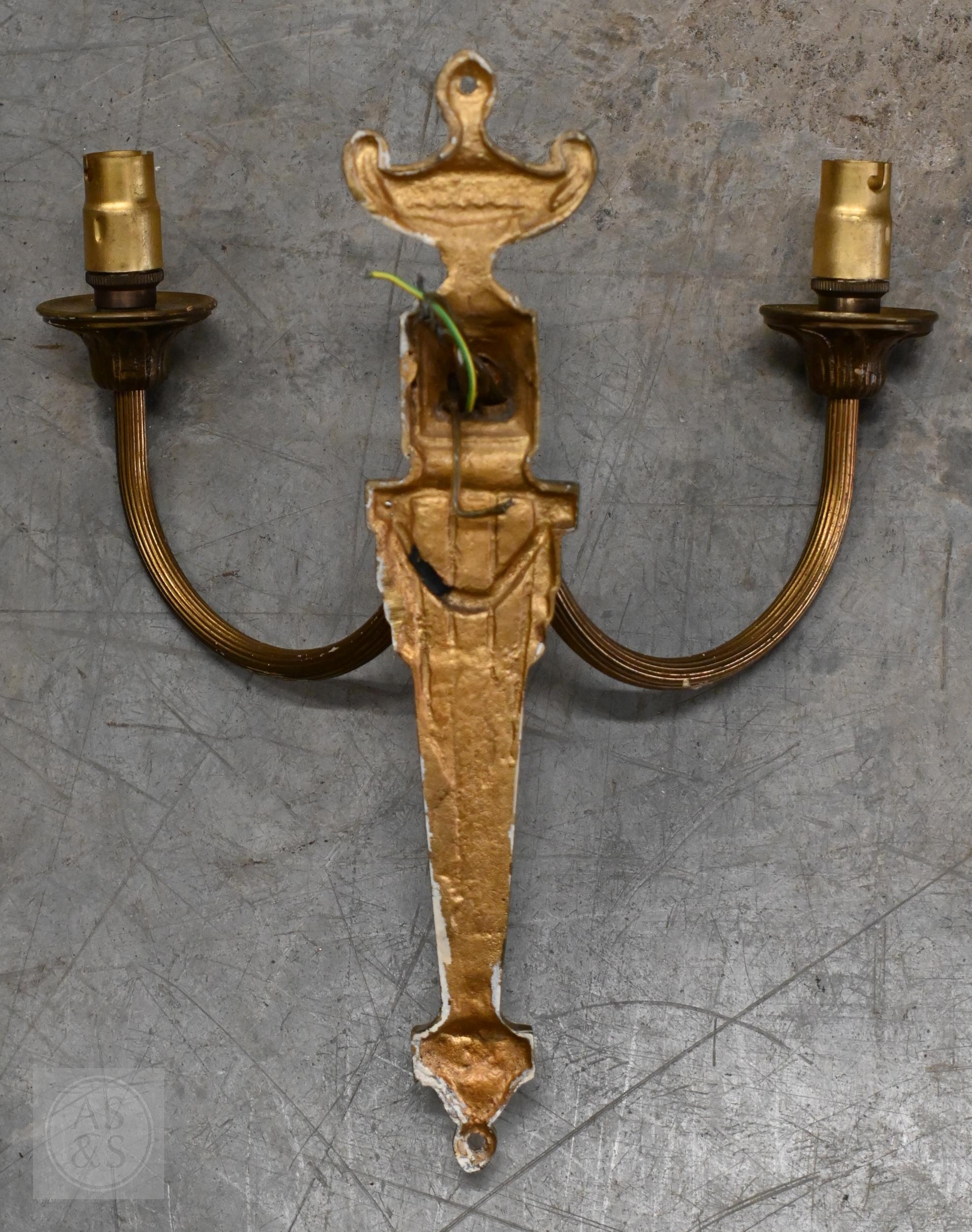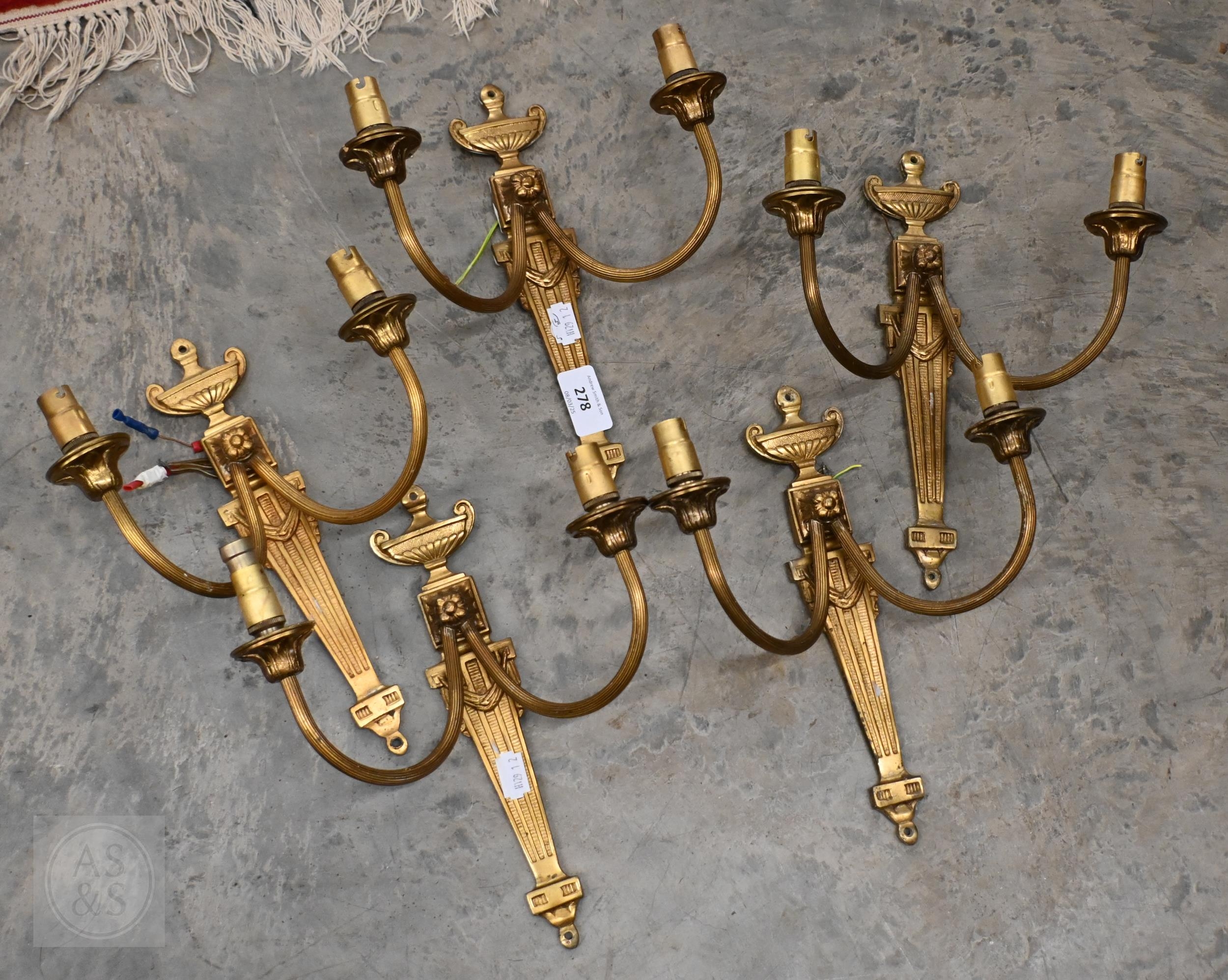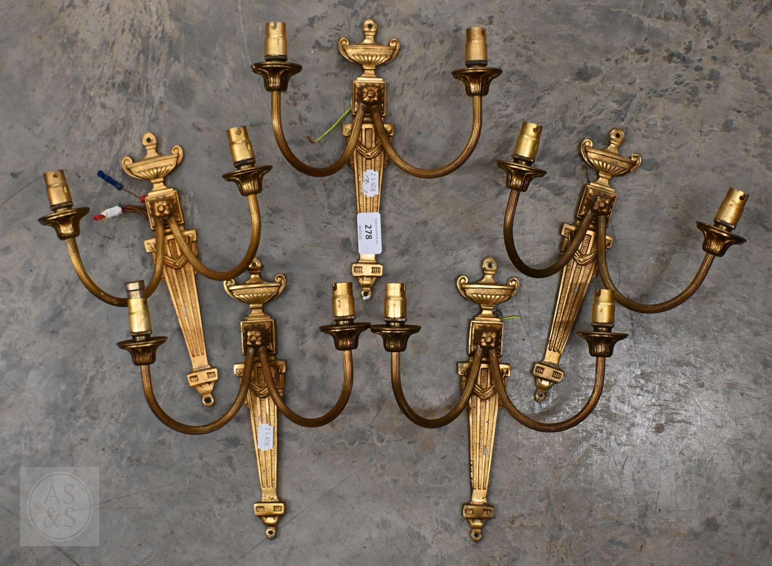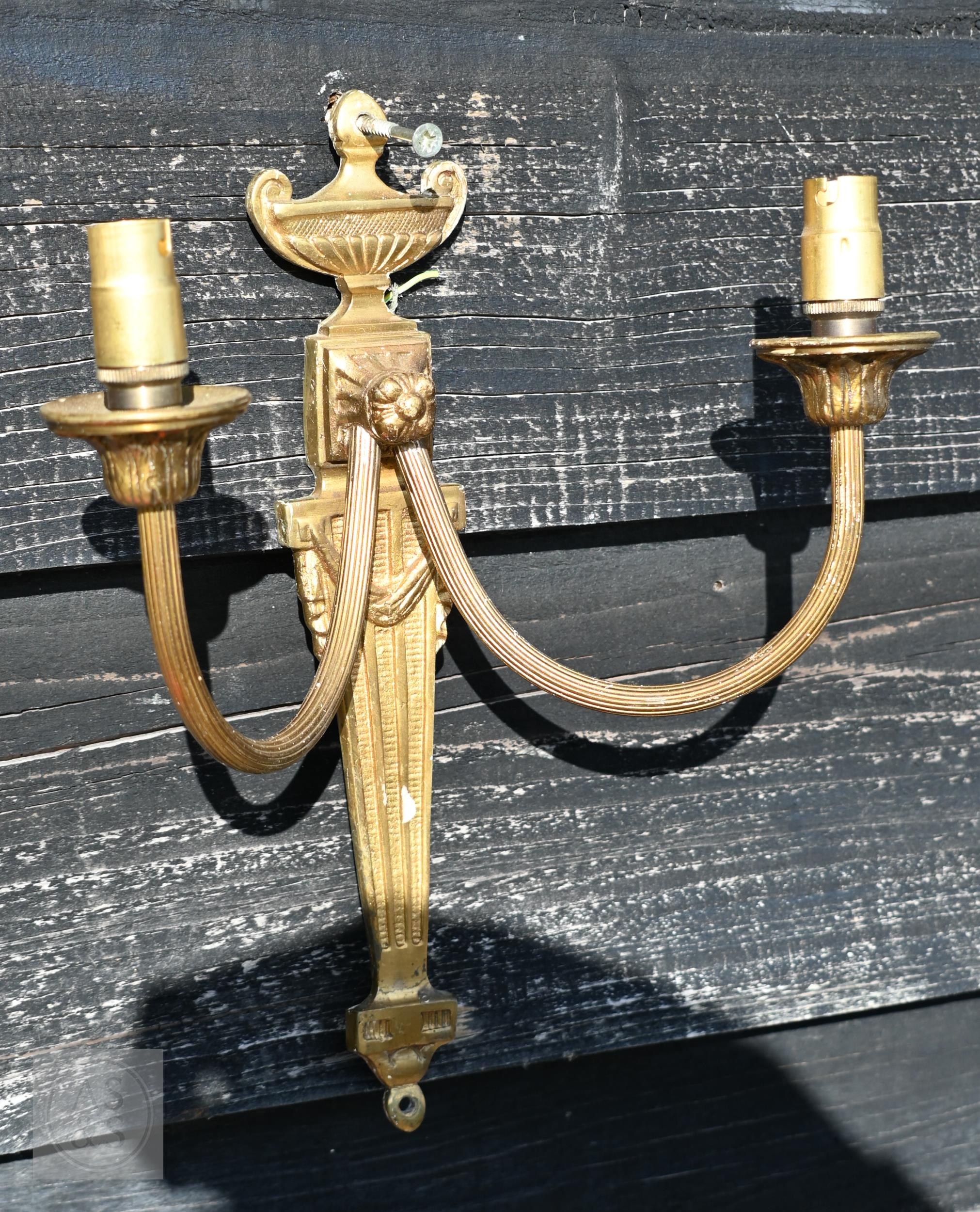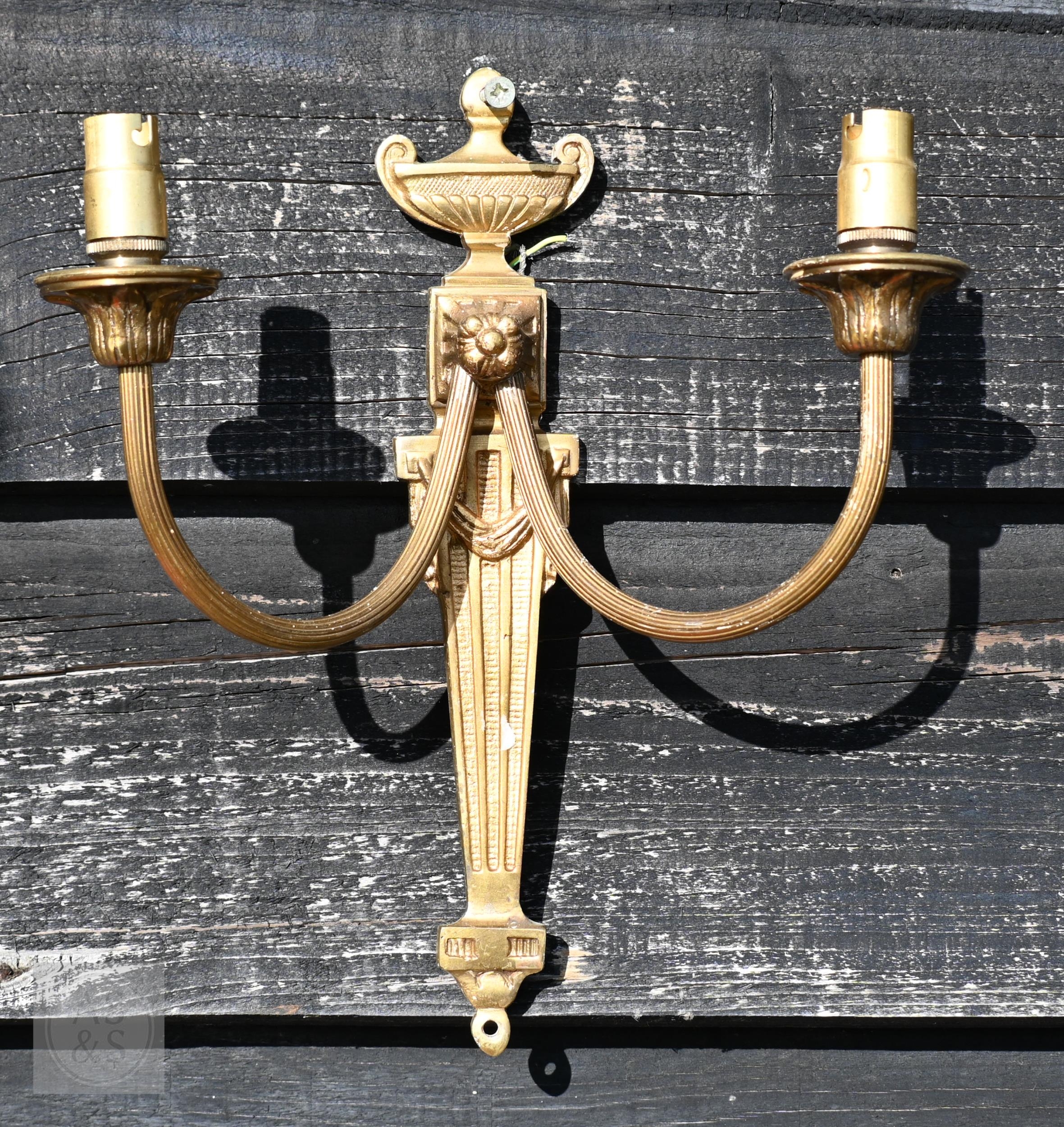 Five Neoclassical design twin branch wall lights, 26 cm h