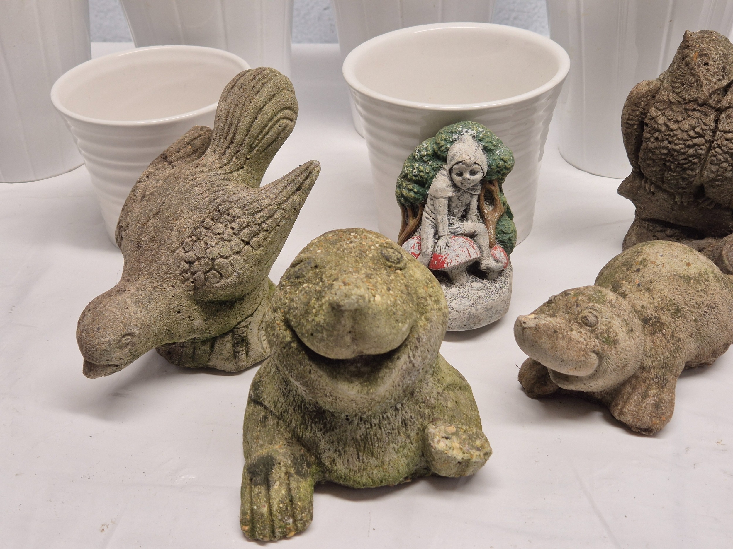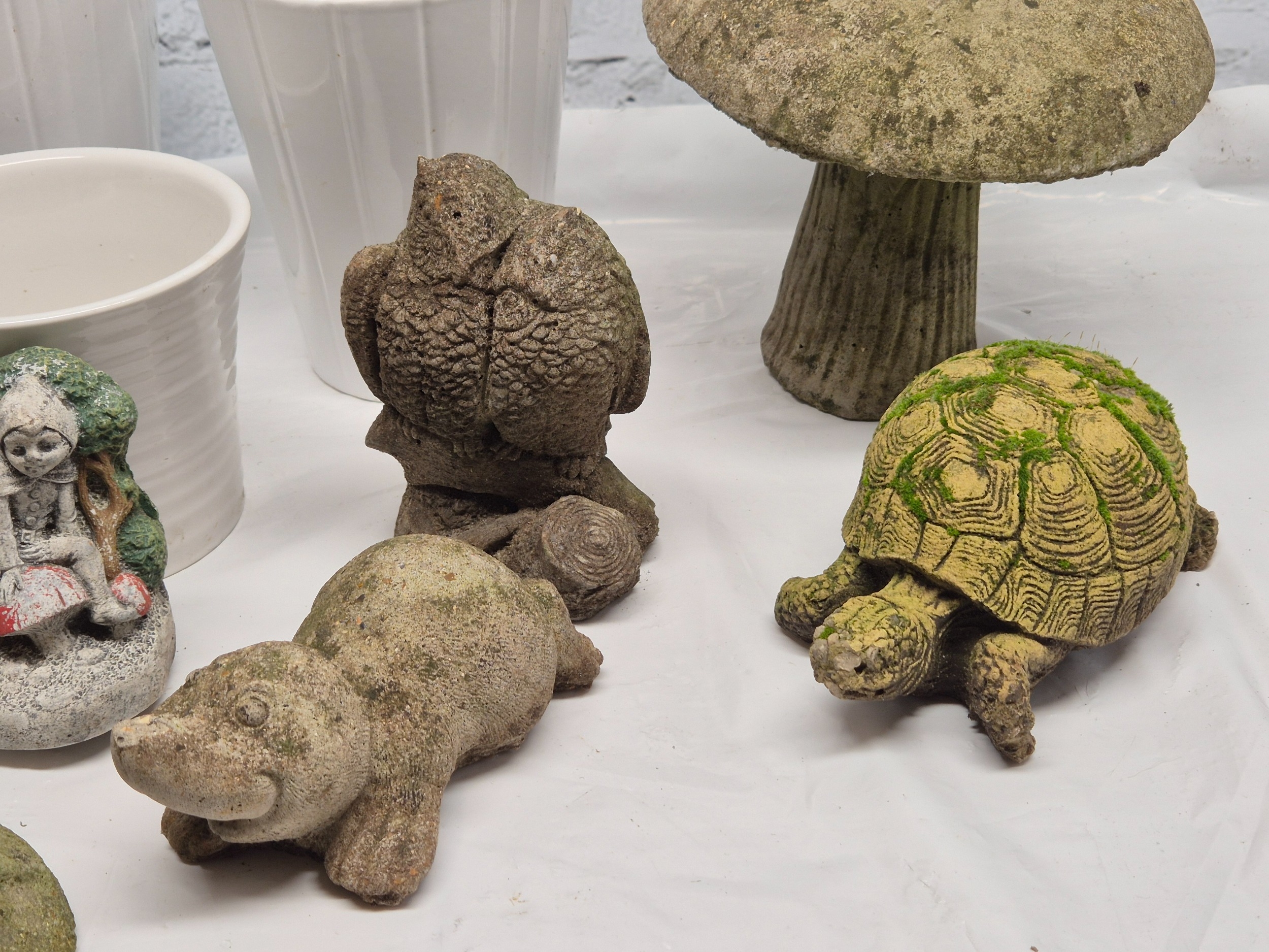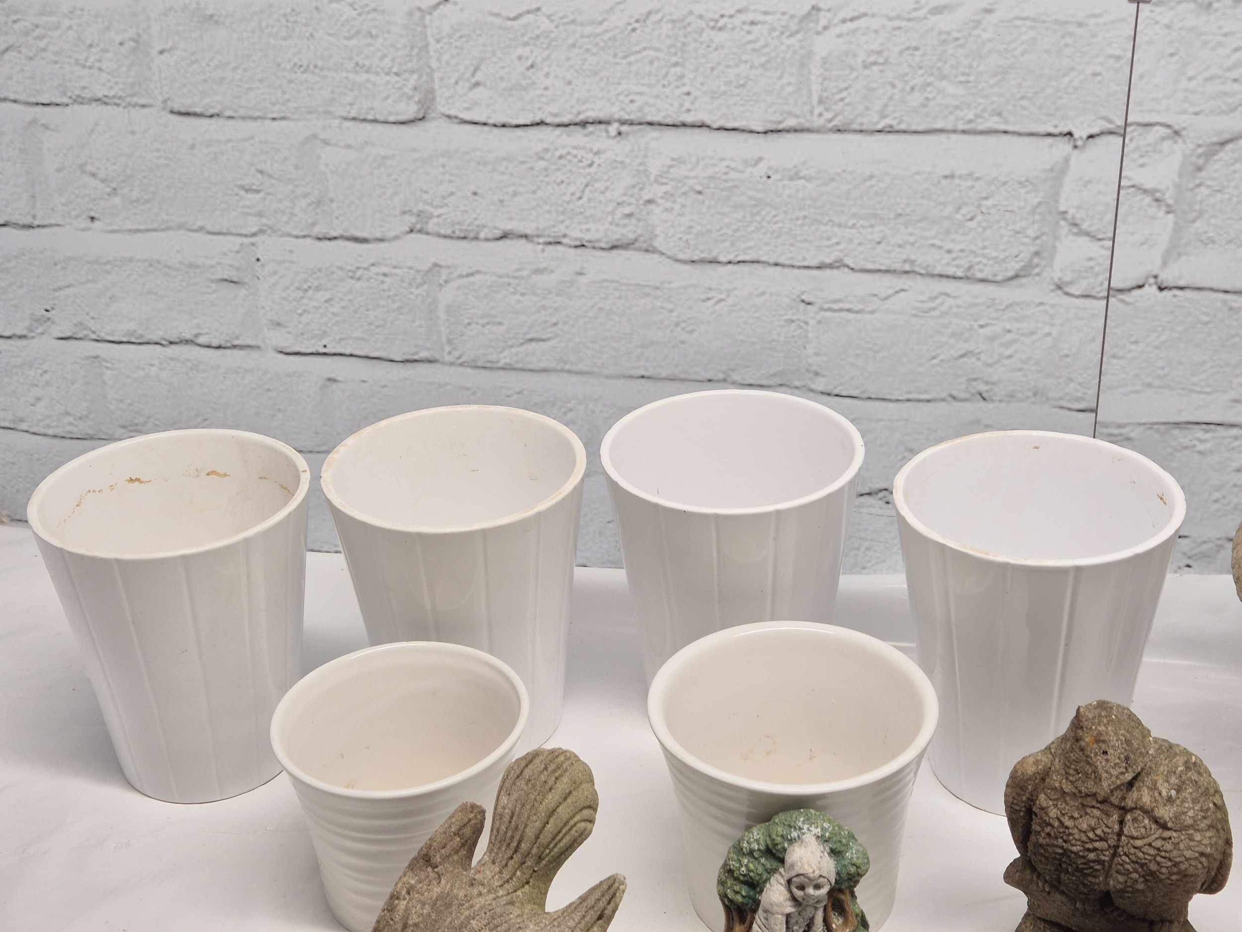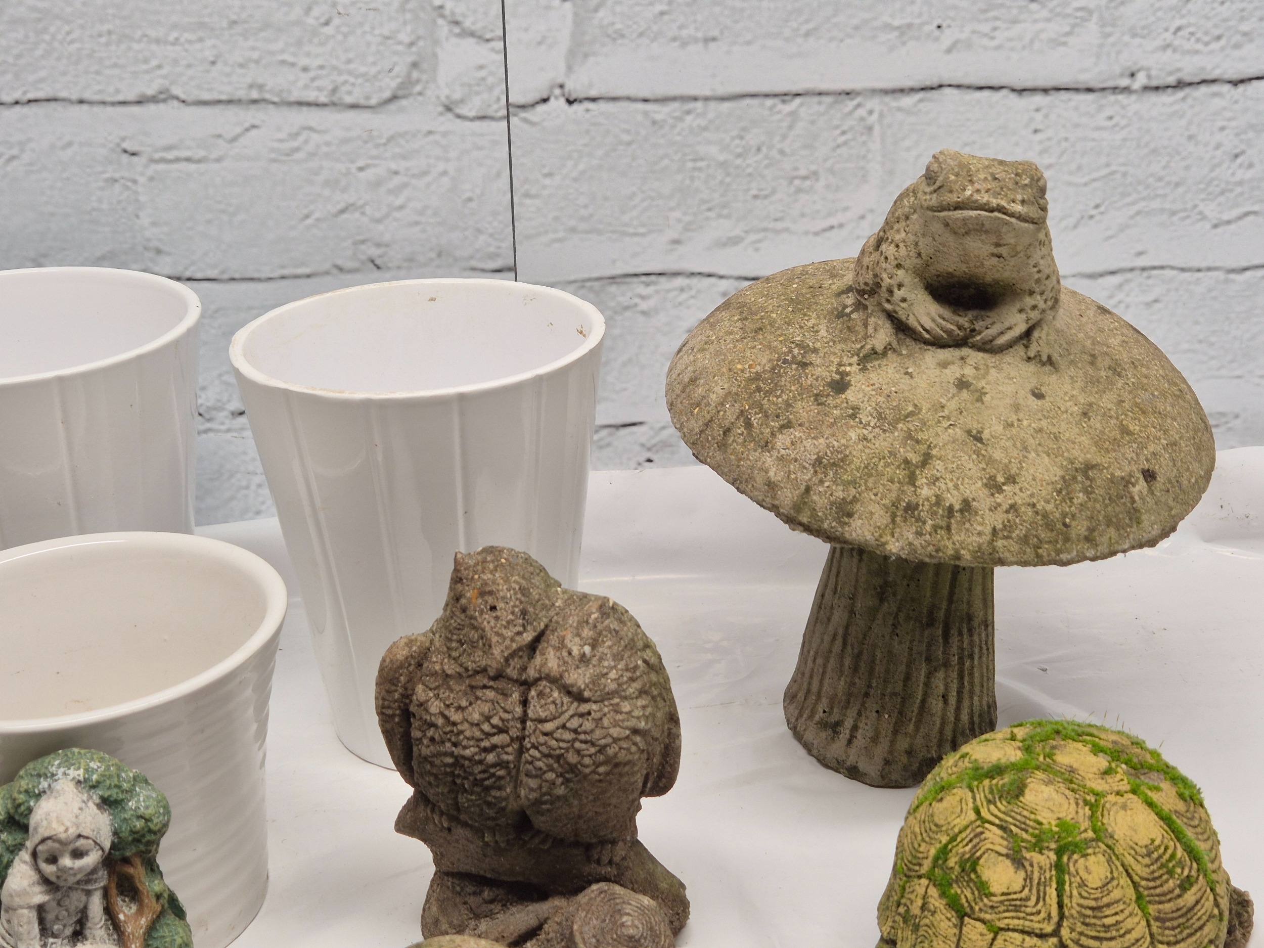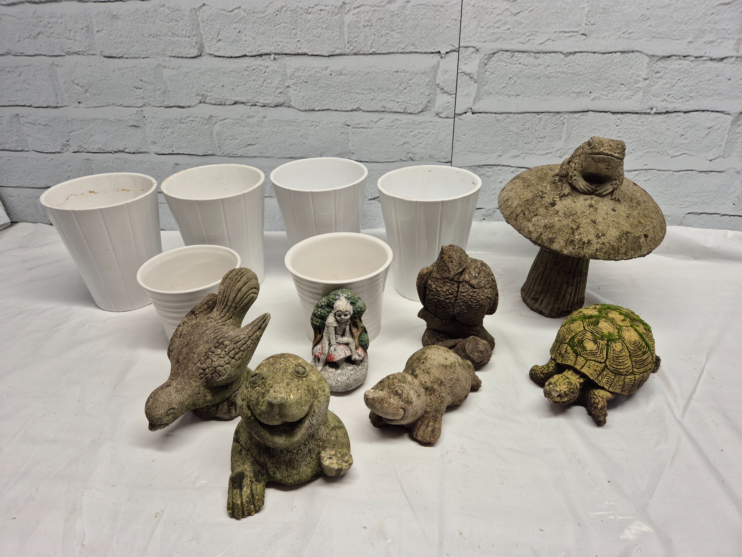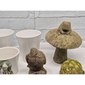A Collection of weathered Garden Ornaments together with six Flowerpots