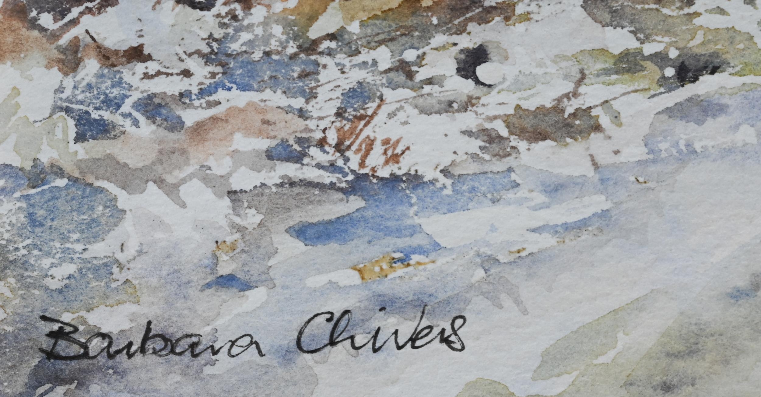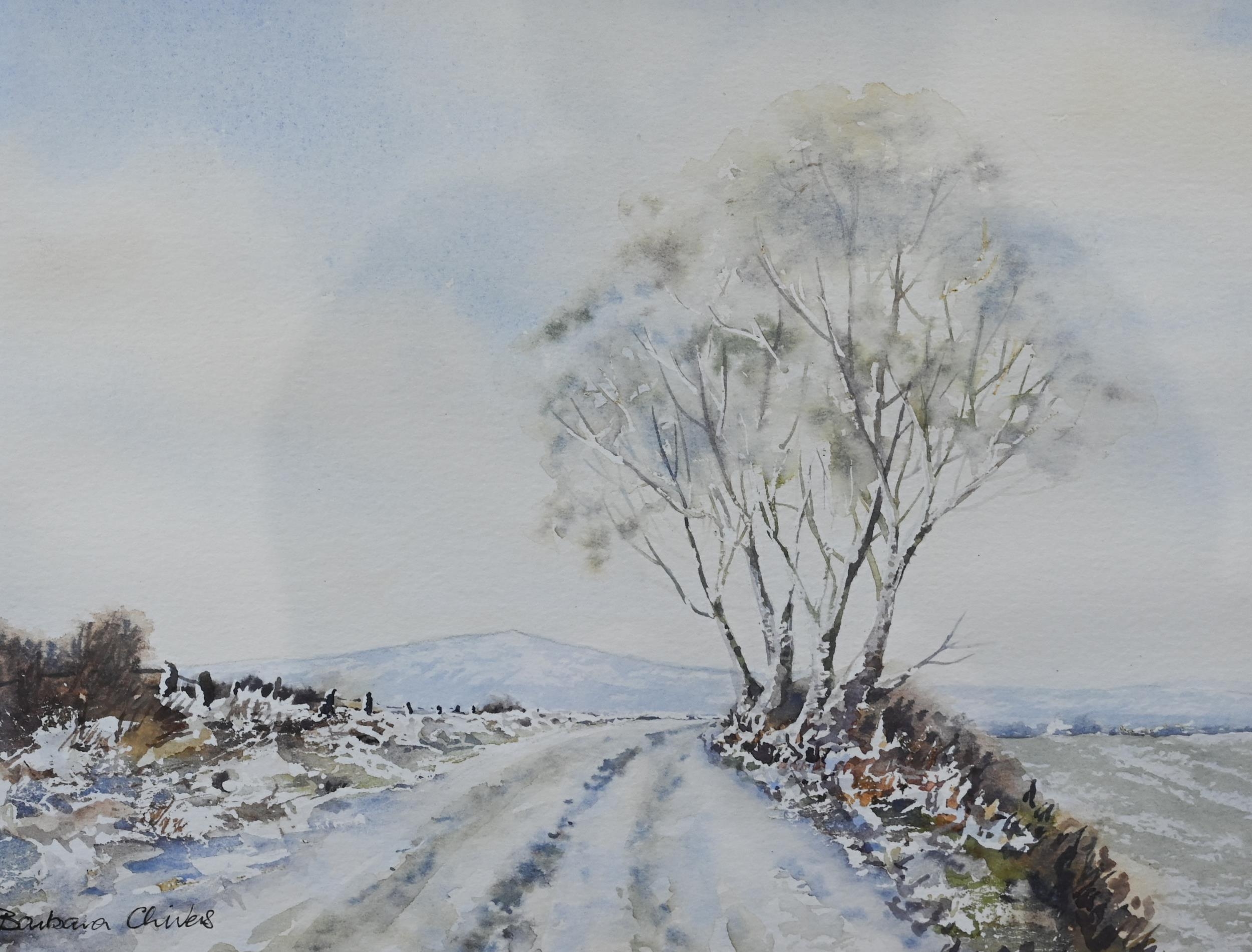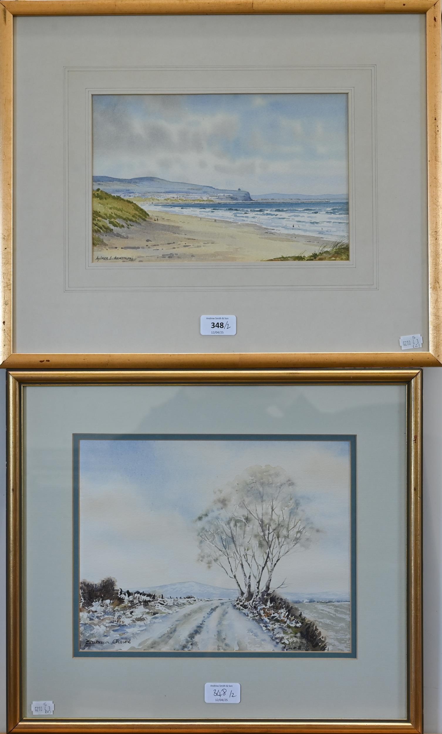 Aylmer E Armstrong - 'Portstewart Strand, Co Londonderry', watercolour, signed, 18 x 27.5 cm and Barbara Chivers - 'The First Snow', watercolour, signed, 22.5 x 29 cm (2)