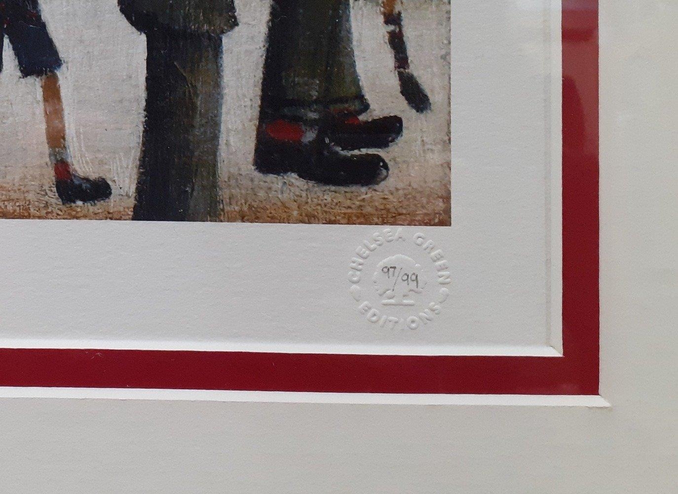 Lovely Quality! - Framed and mounted by artist LS LOWRY 'Good Friday Daisy Nook' - A GOUTTELETTE No 97 of only 99 worldwide with certificate of authenticity - This was a favourite holiday area in the vicinity of Manchester for the local population - dimensions (painting) 60cm x height 50cm approx