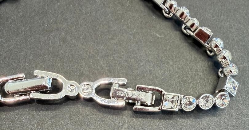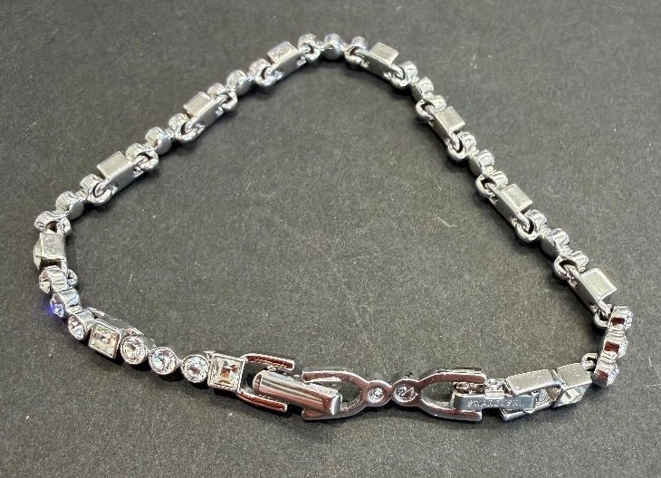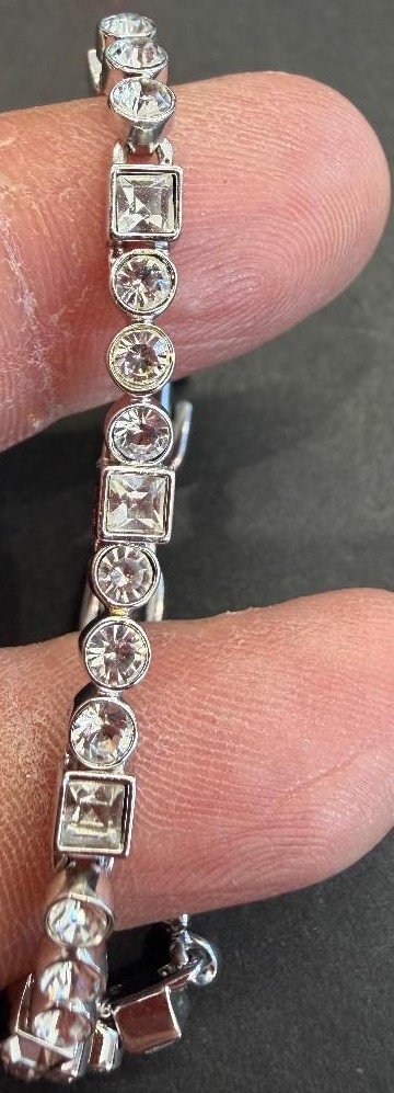 Jewellery : Genuine Swarovski white metal bracelet no reactive to magnet with round and square fine crystals 12.6g