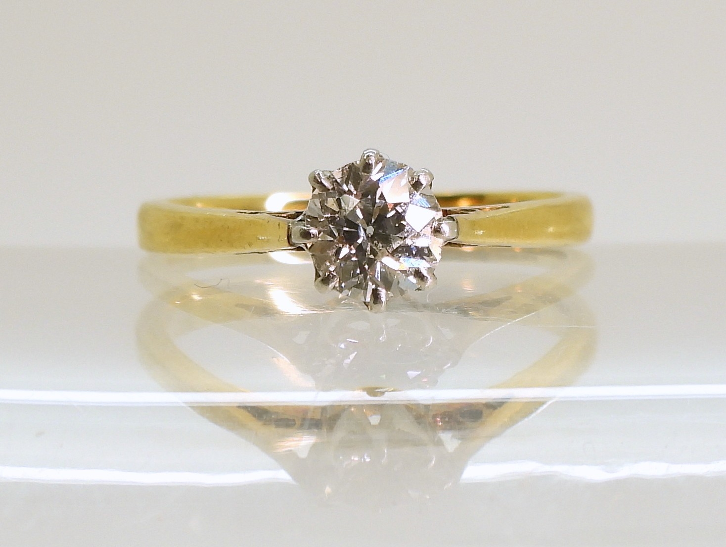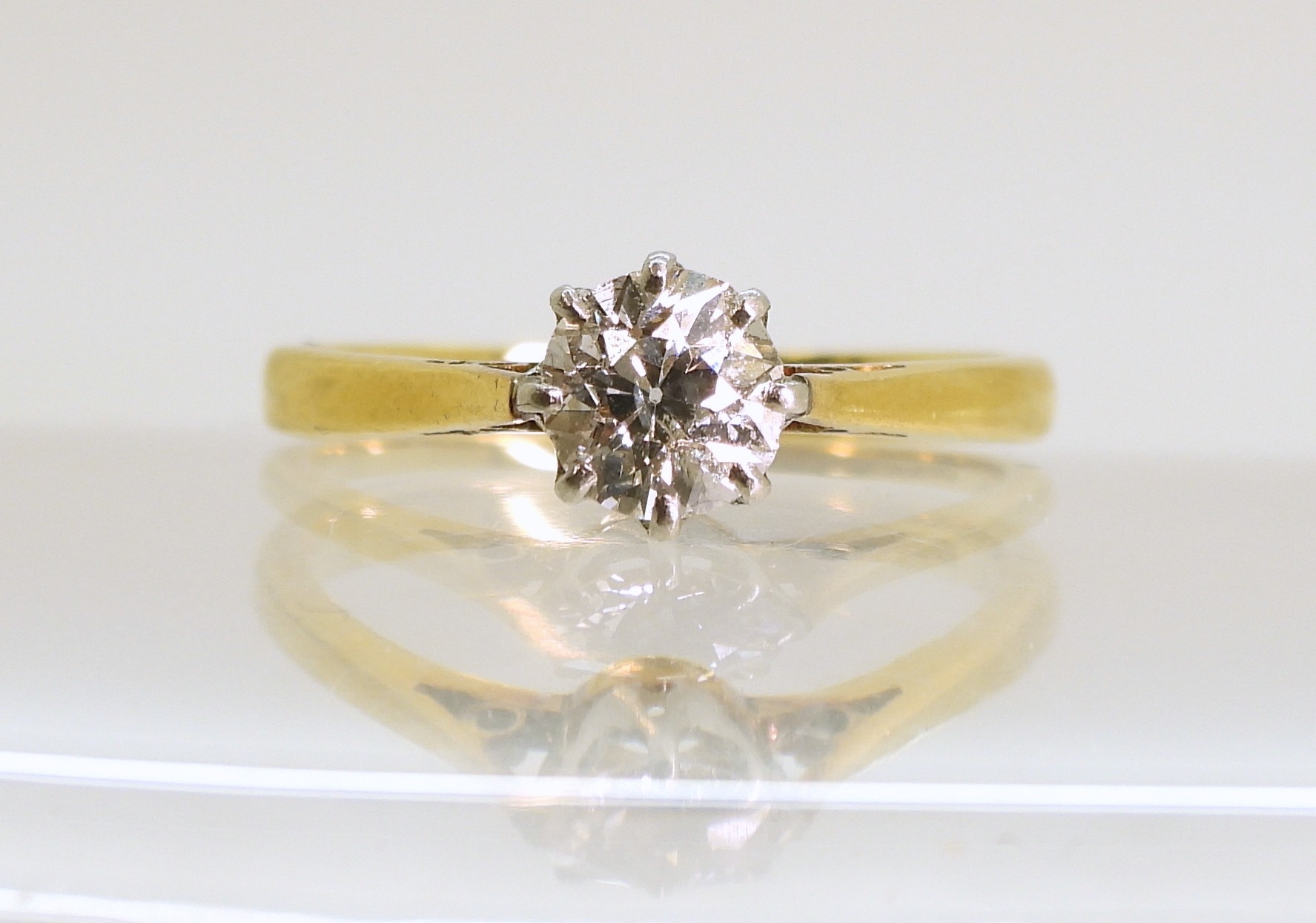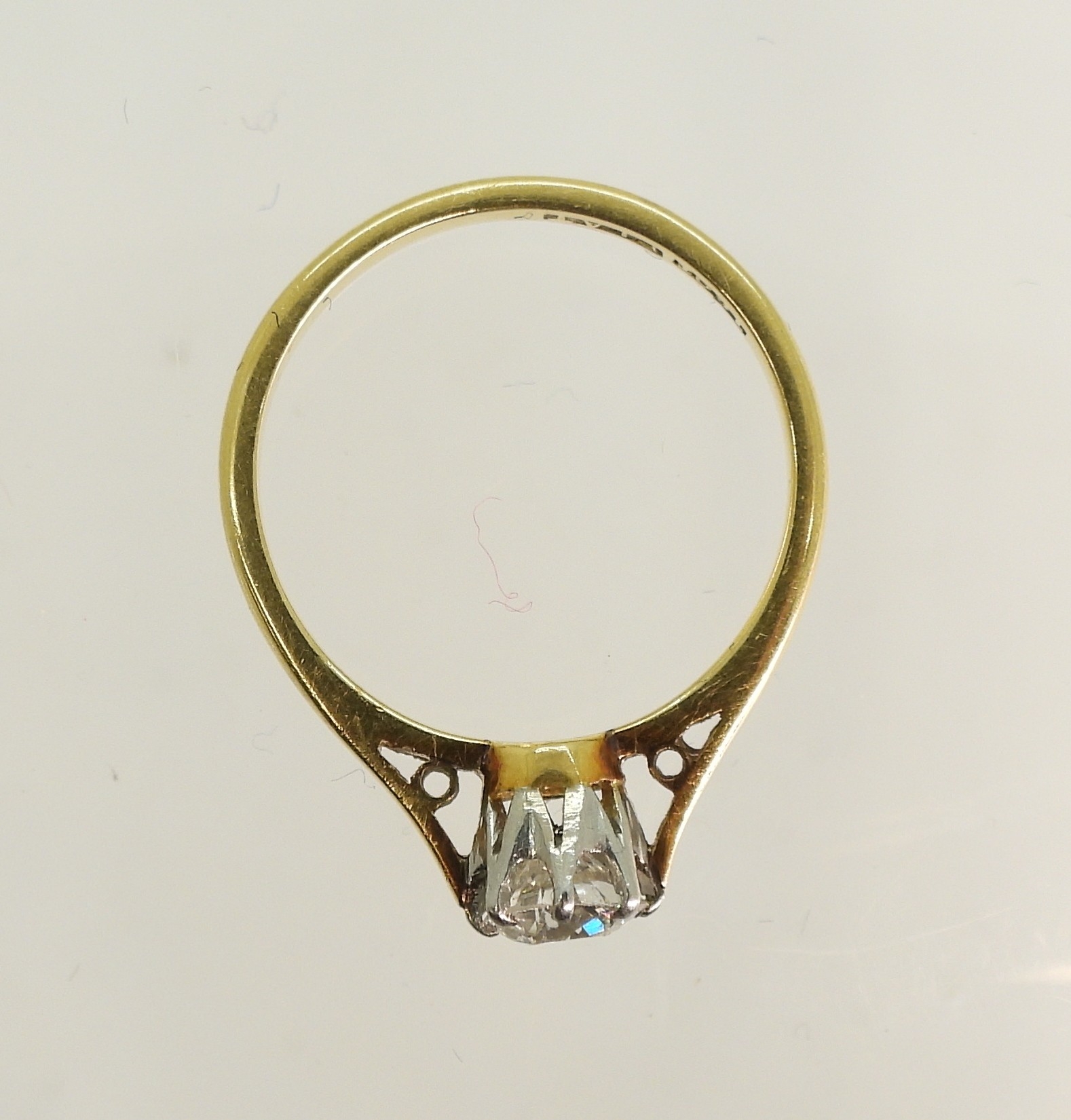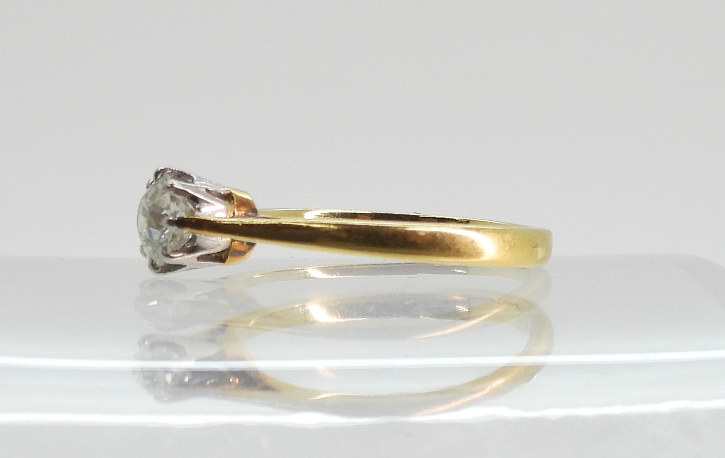 An 18ct gold and platinum old cut diamond solitaire of estimated approx 0.40cts, finger size I1/2, weight 2.2gms
