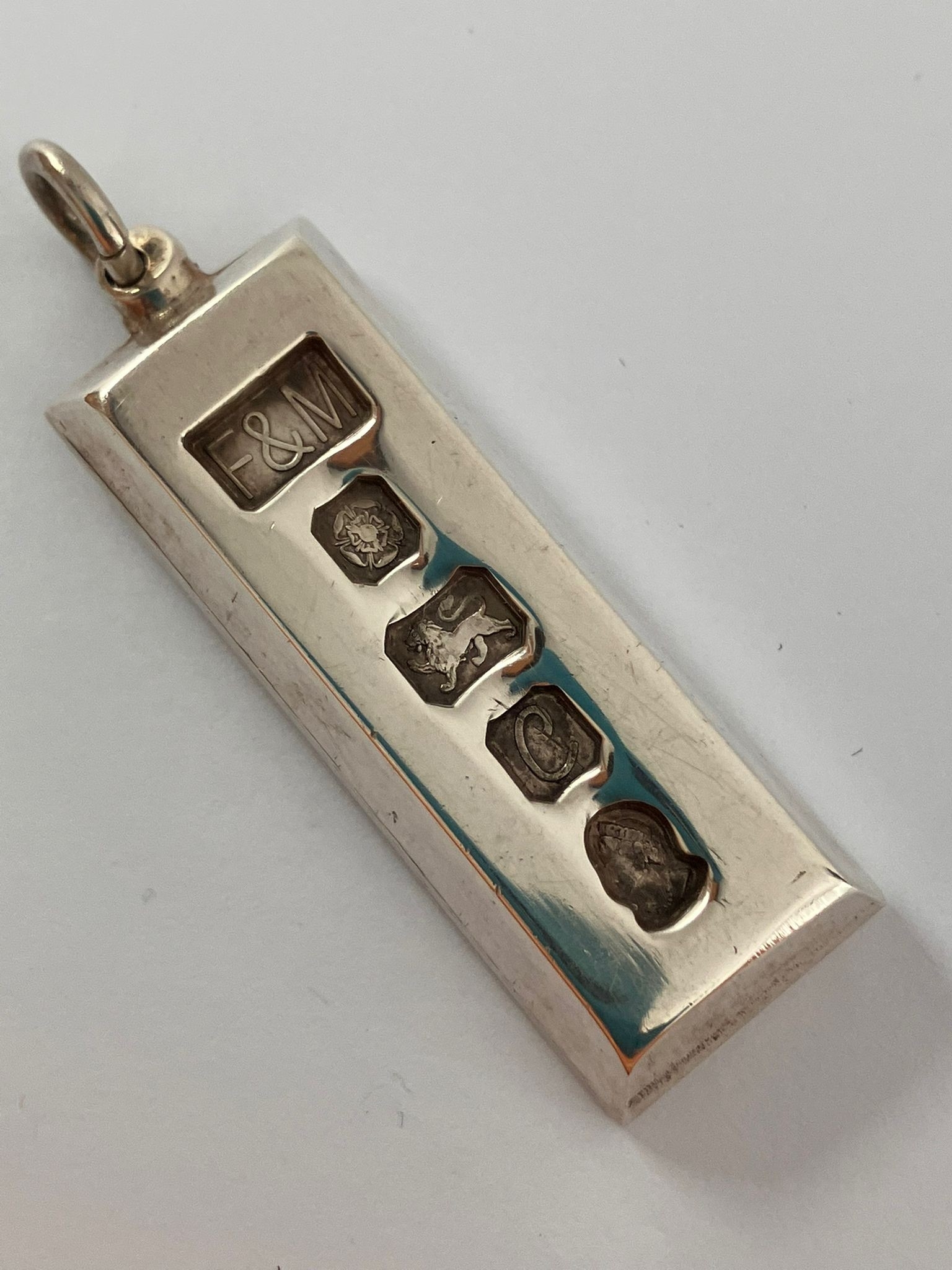 Vintage SILVER INGOT PENDANT. Full UK hallmark for Sheffield 1977. Chunky and Heavy. 31 + grams. Excellent condition, Please see pictures.