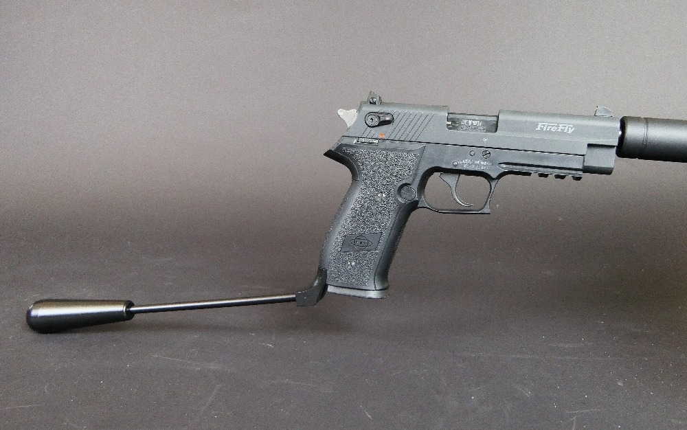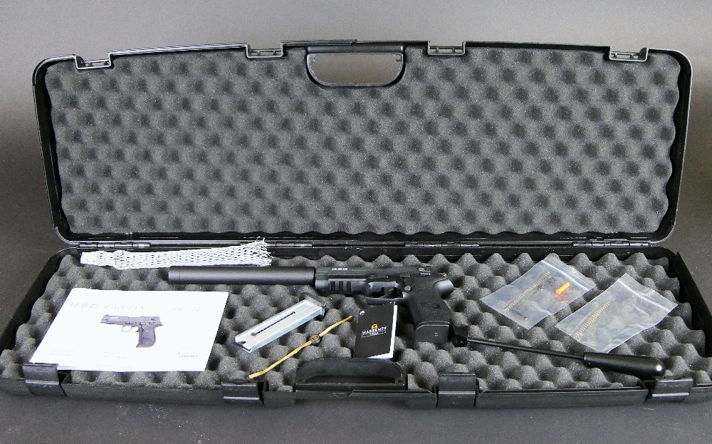 GSG Firefly cal 22 LR long barrelled pistol, with two magazines, plastic carry case etc. Serial No. F407753. FIREARMS CERTIFICATE REQUIRED.