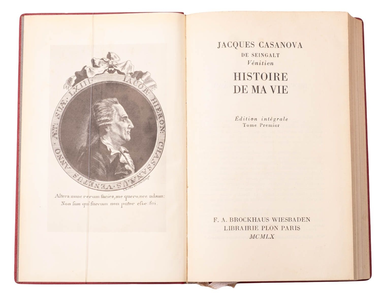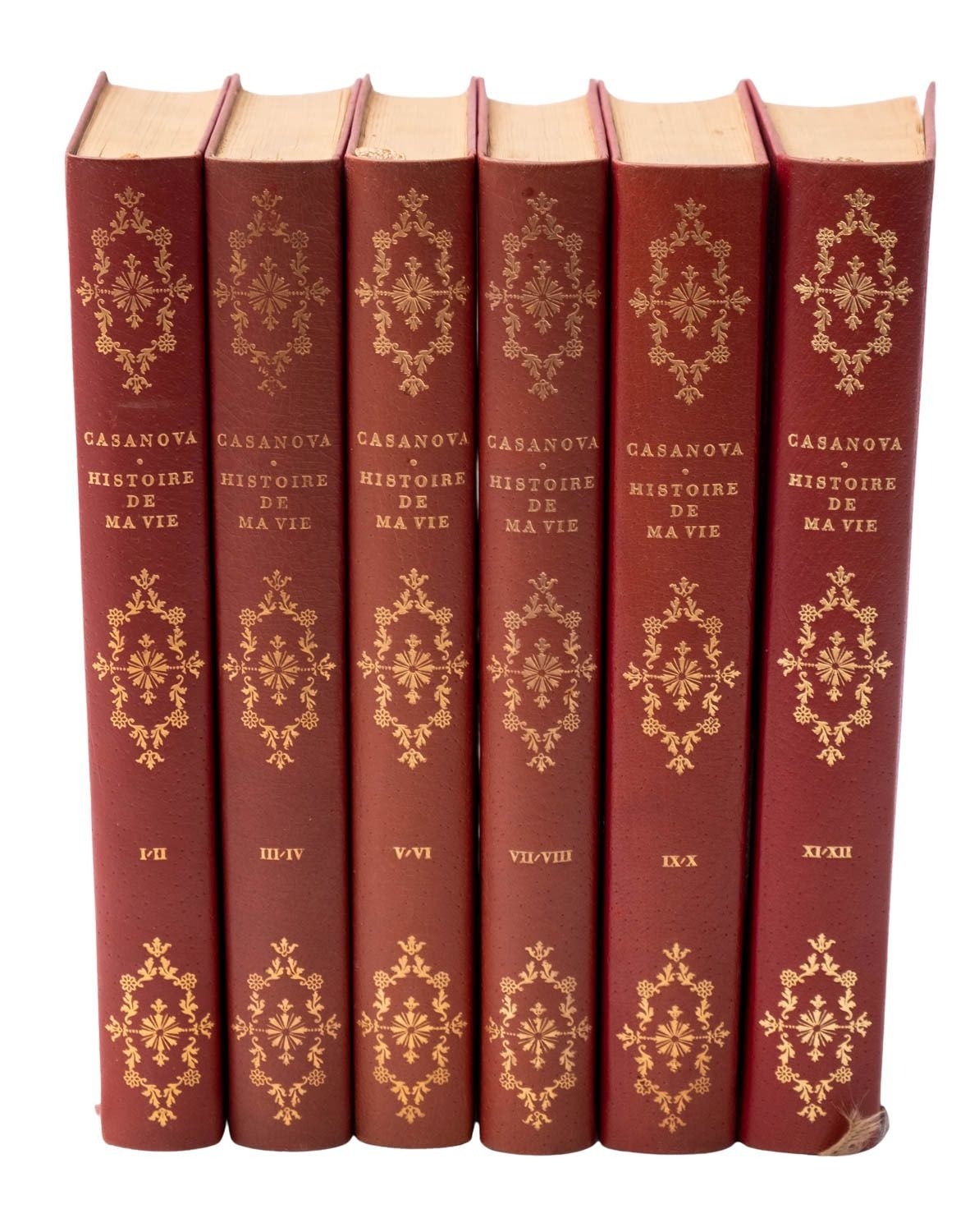 CASANOVA, [Giacomo]. Histoire de ma vie, 12 parts in 6 vols., Wiesbaden & Paris: F.A. Brockhaus & Librairie Plon, 1960-62, india paper, orig. red roan gilt to spine, t.e.g., 8vo. (6)
