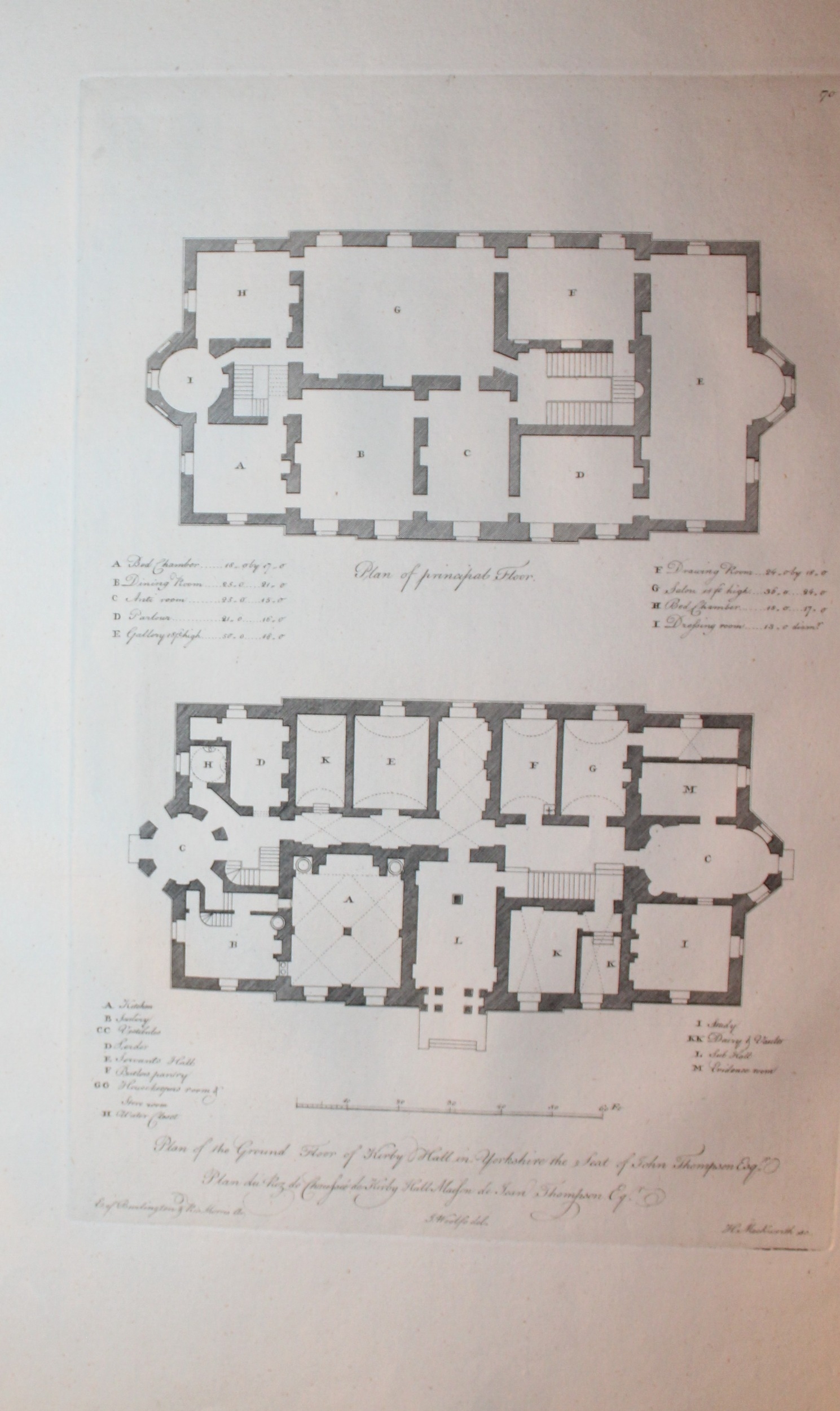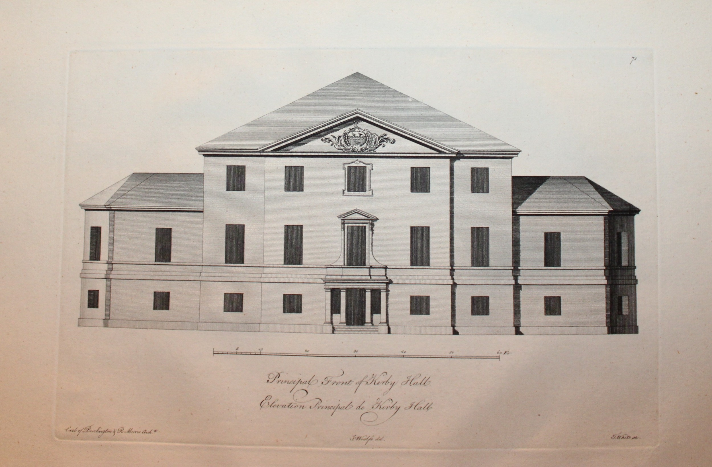 Vitruvius Britannicus 1771 - Pl 71 Kirby Hall, Northamptonshire + floor plan. This original copperplate engraving of Kirby Hall, Northamptonshire is from Vitruvius Britannicus Vol 5 published in 1771.