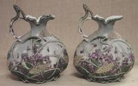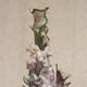 Continental porcelain candleholder of naturalistic form, lady in floral dress to the stem 14in. high.