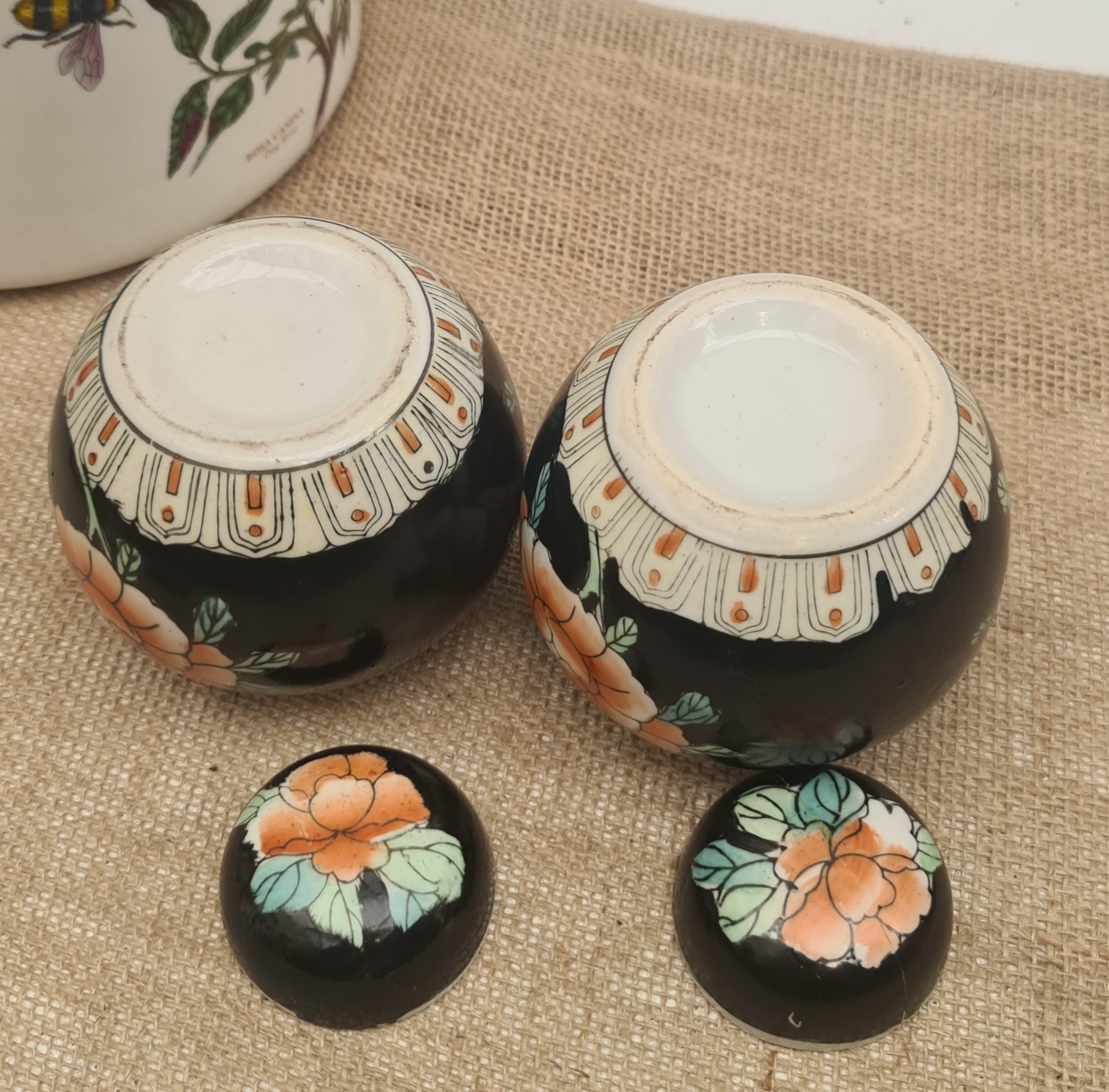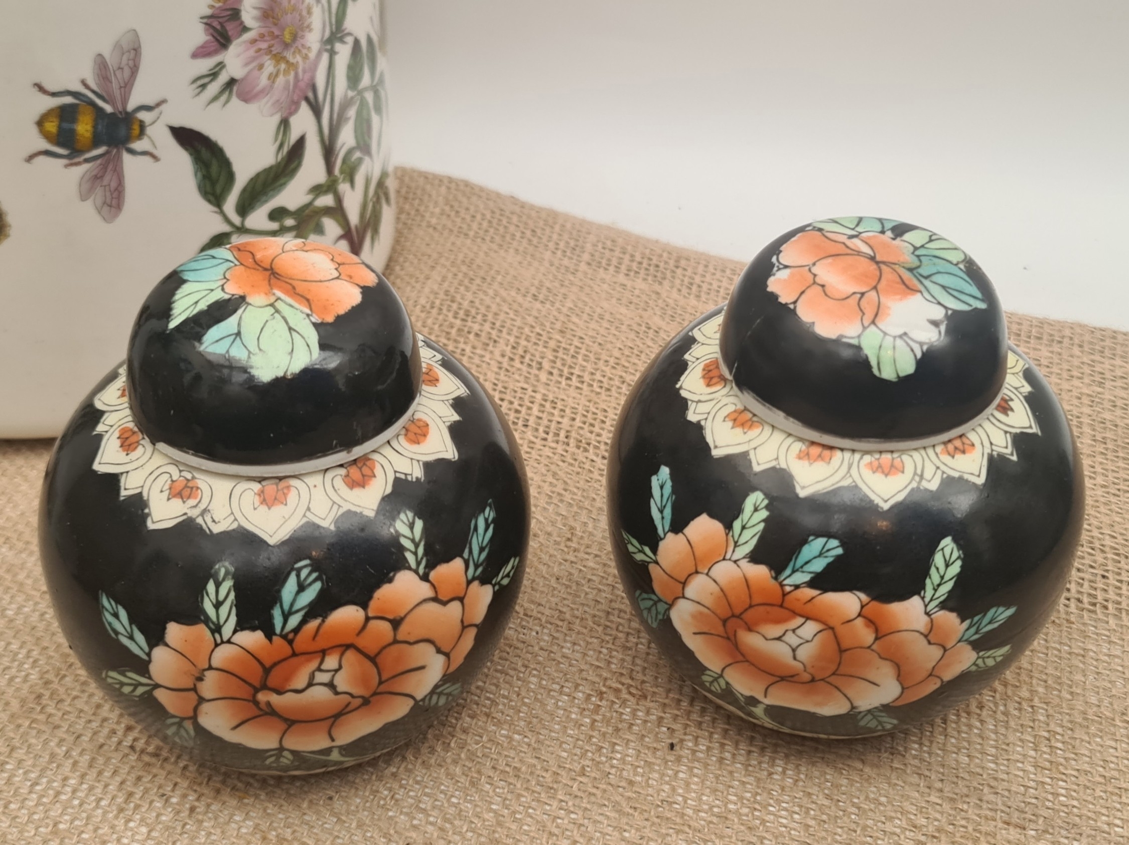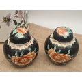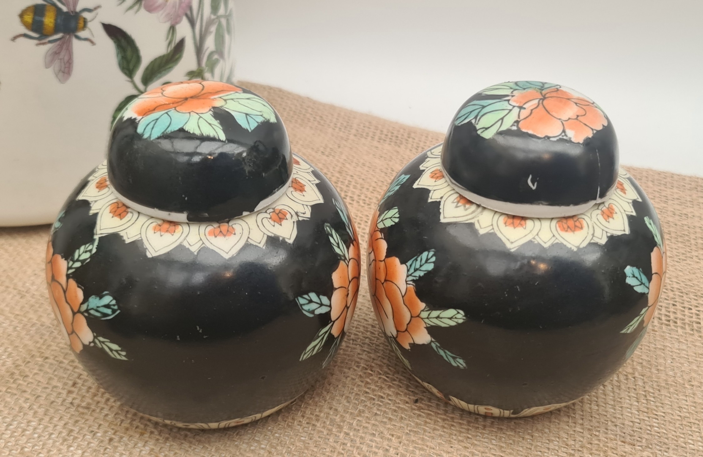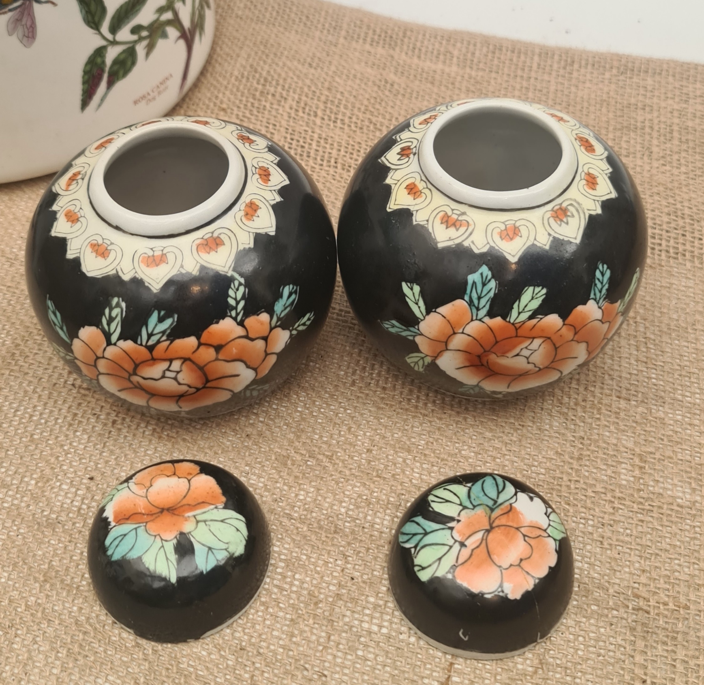 Antique Pair of Hand Painted Small Ginger Jars With Lids. Each measures 12cm tall. One has damage to the lid. Shipping is available. Please ask for a quote before bidding. Where possible we combine shipping costs. Remember, if you are the highest bidder above reserve on this Lot you have bought the item and are legally responsible for the item. Viewing is recommended in either person or via video link. Contact us to arrange.