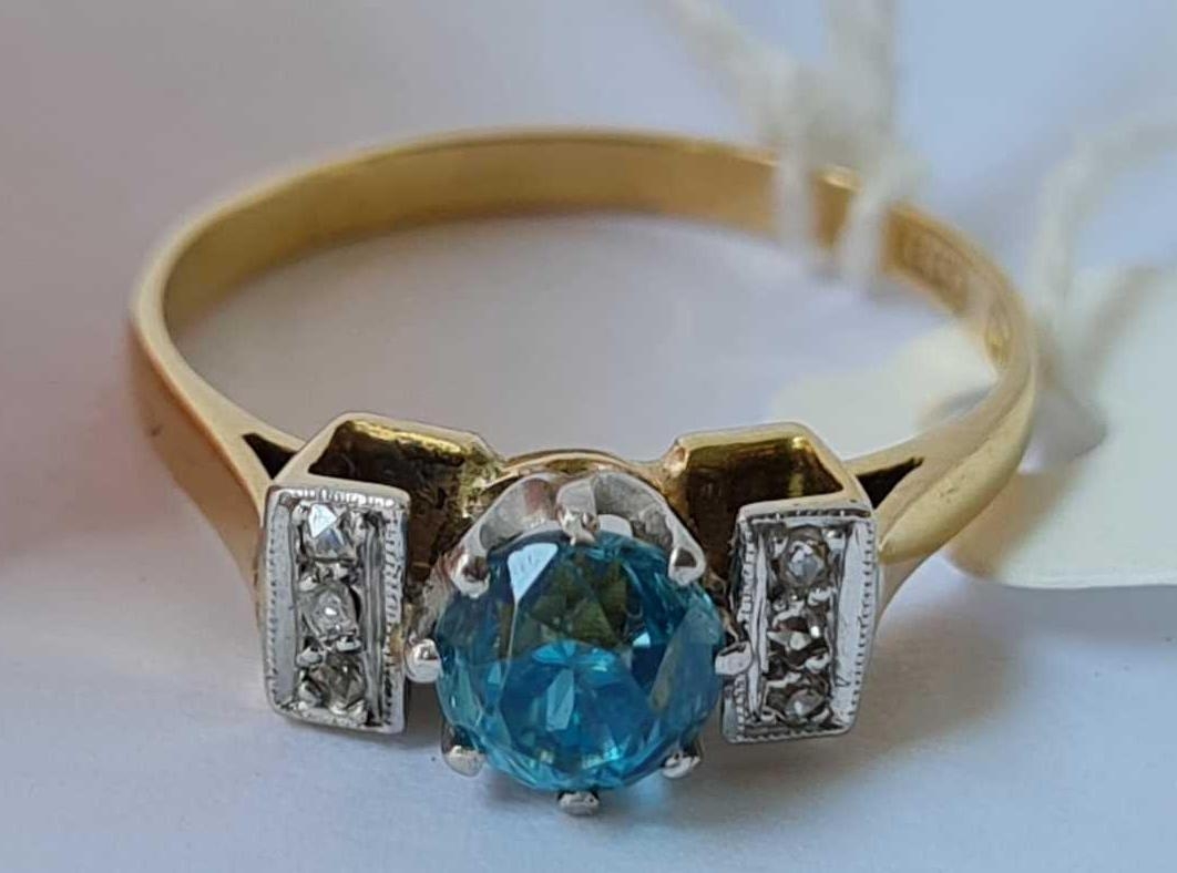 A art deco style Zircon and diamond ring 18 ct gold size N - 3 gms